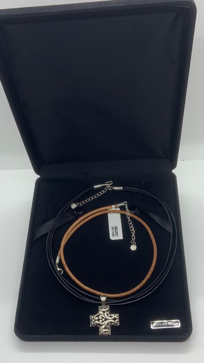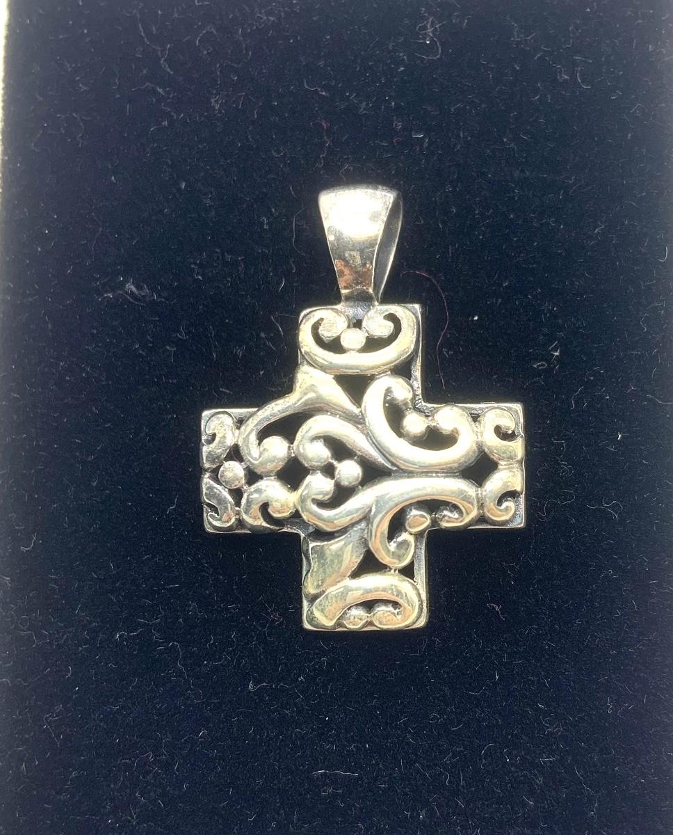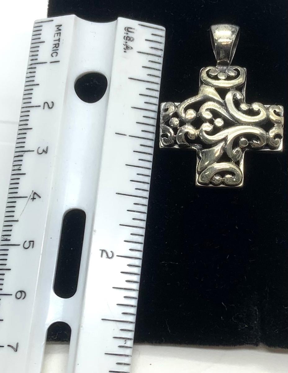 LOTJ144: New in box Sterling Silver Filigree Cross Pendent with set of 2 cords