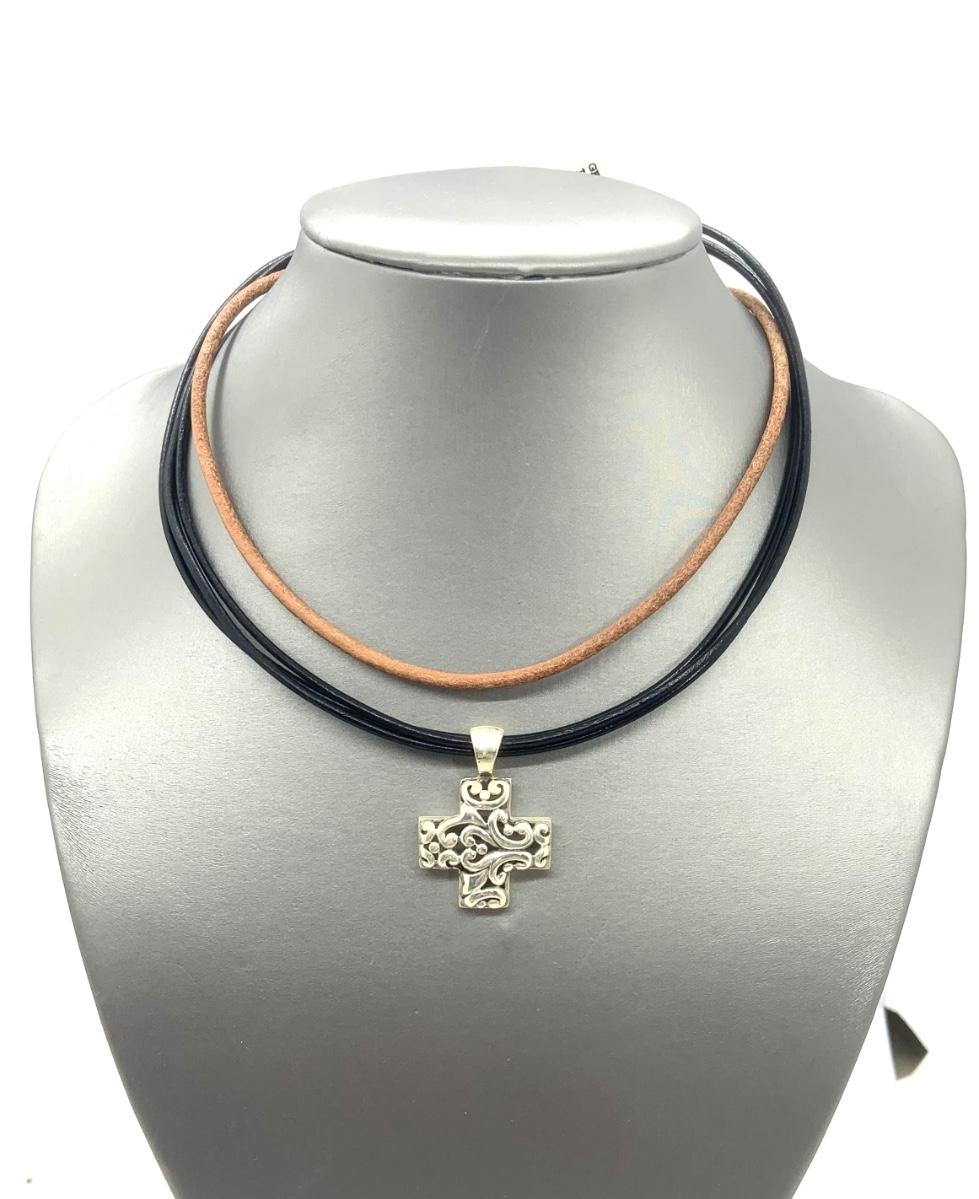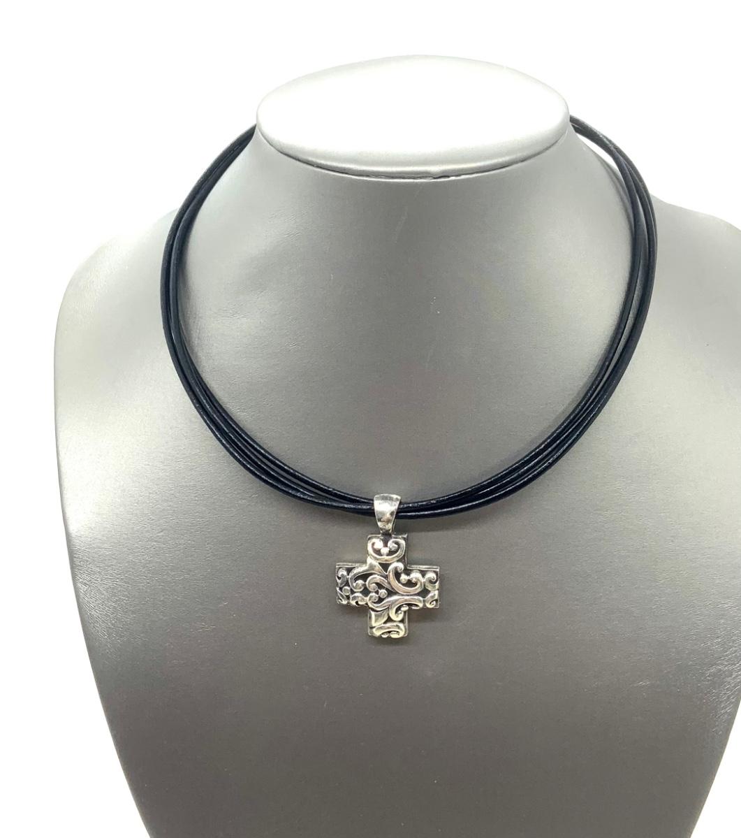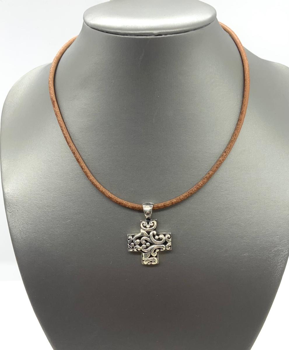 LOTJ144: New in box Sterling Silver Filigree Cross Pendent with set of 2 cords