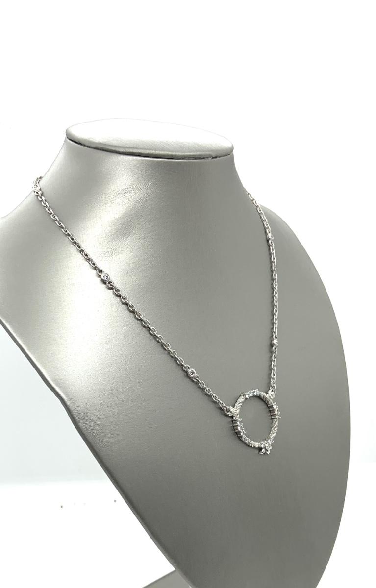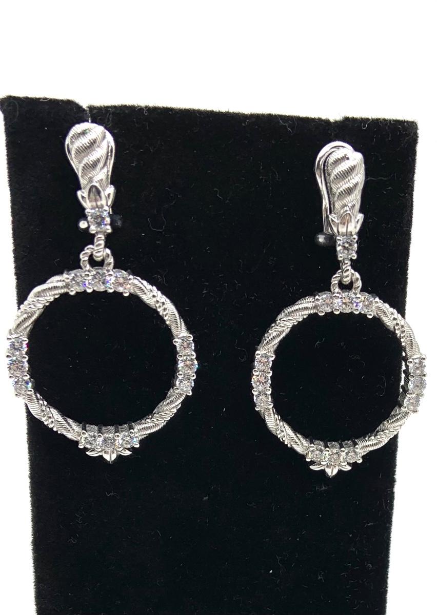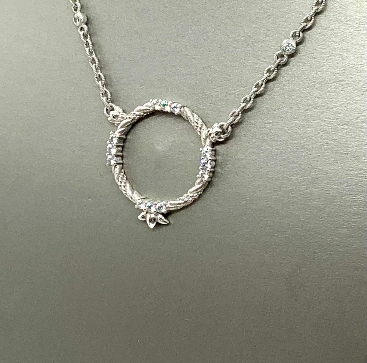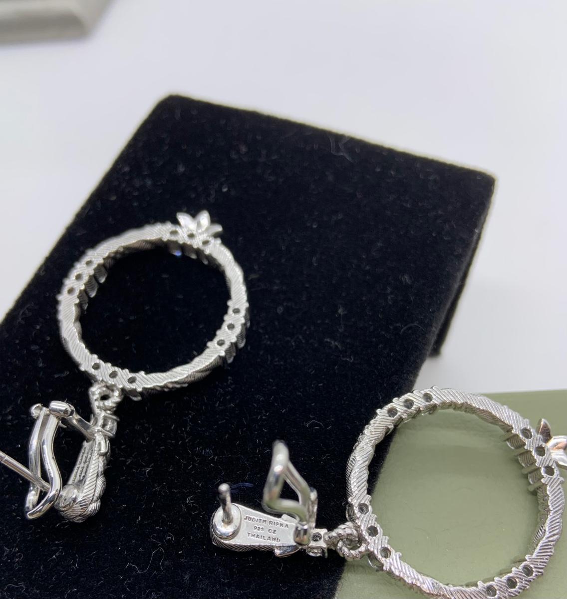 LOTJ149: New in box Judith Ripka Diamonique Sterling Silver Circle Pendant Necklace 18"L and Matching Pierced Earrings