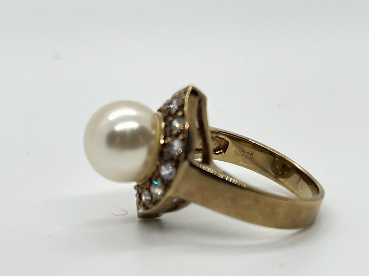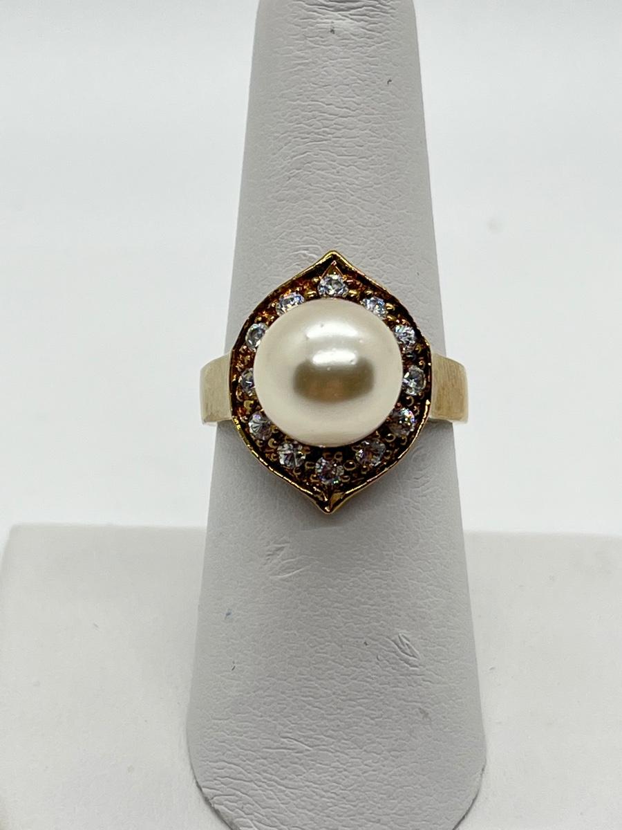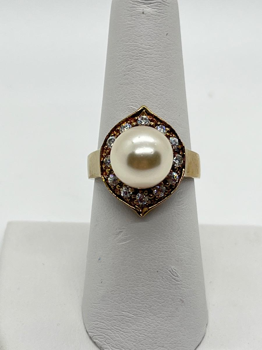 LOT 7: Cultured Pearl (925 HZ) & CZ Ring sz 7.5