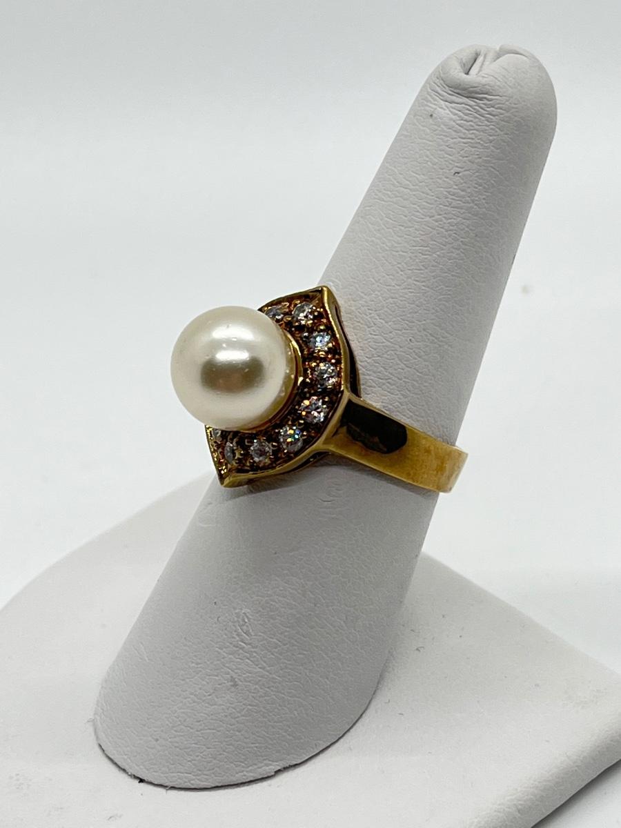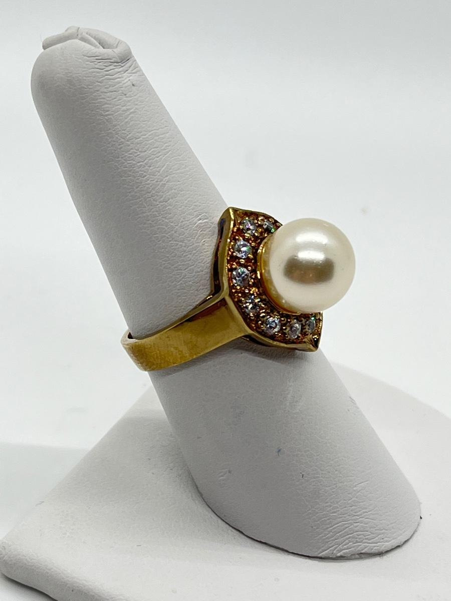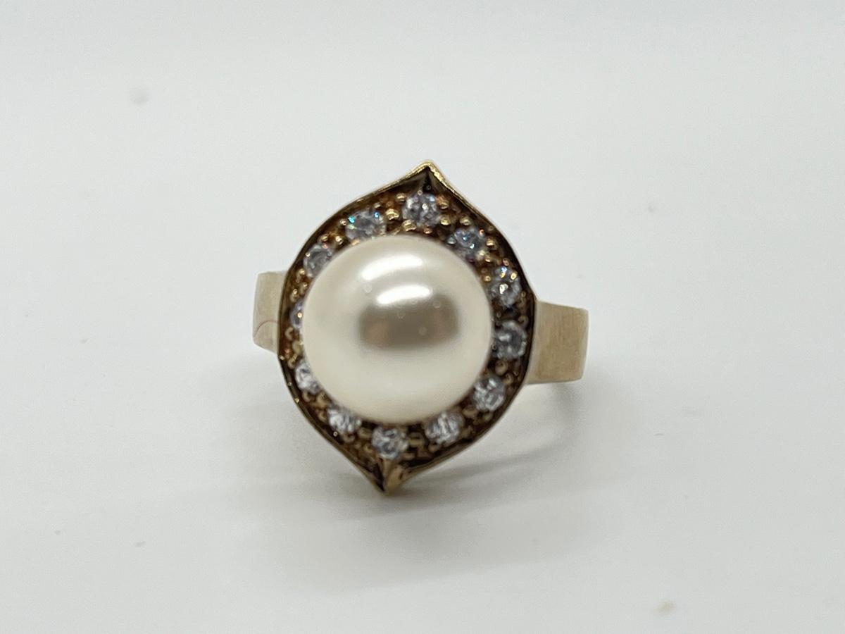 LOT 7: Cultured Pearl (925 HZ) & CZ Ring sz 7.5