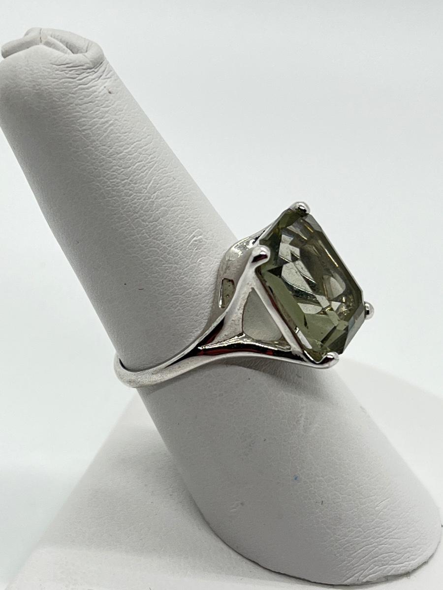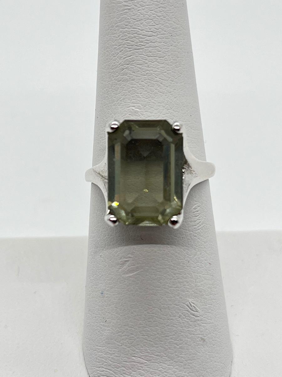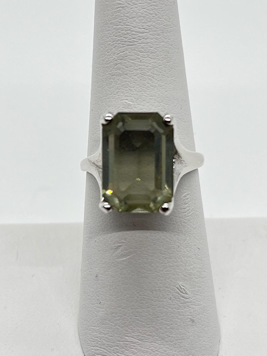 LOT 10: Rings Sz.7 925 Sterling Silver Green Amethyst & CZ Sterling Silver Band