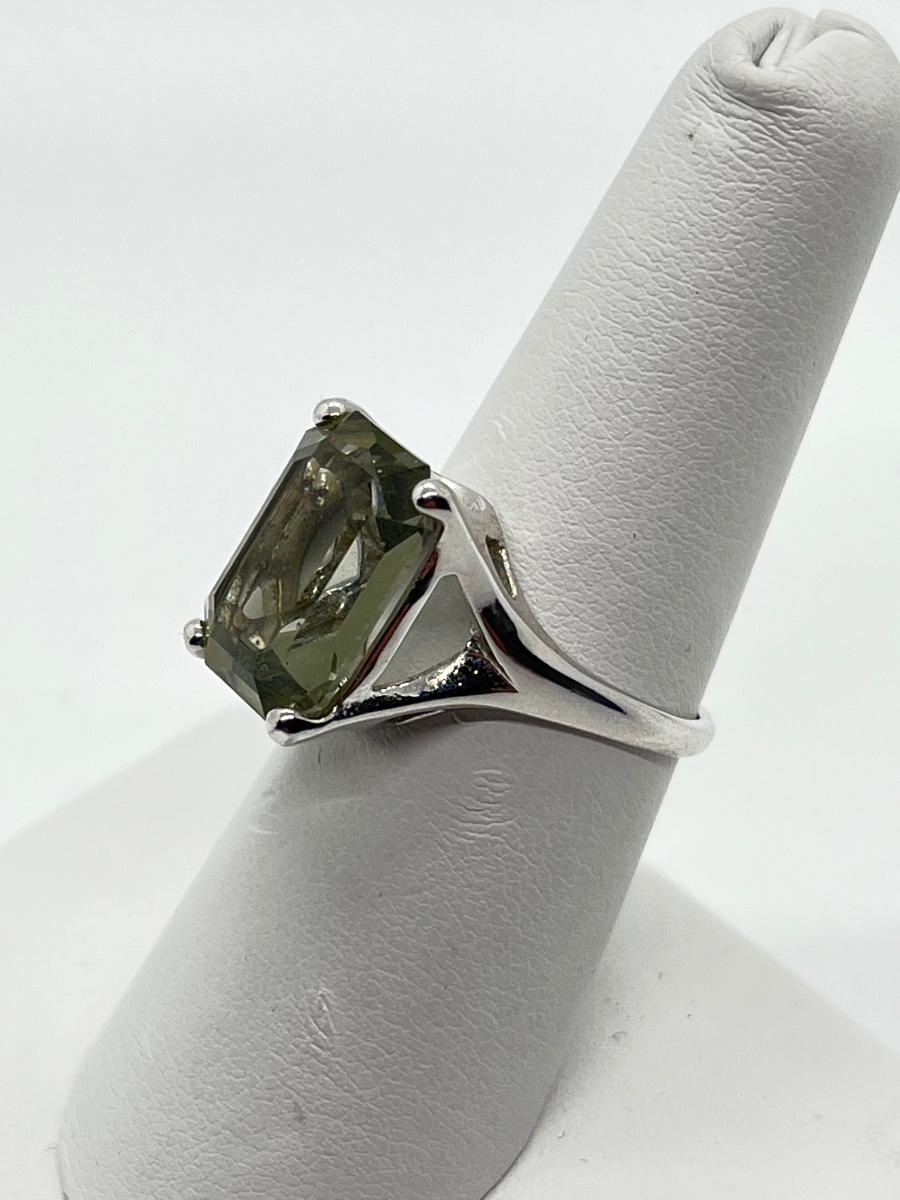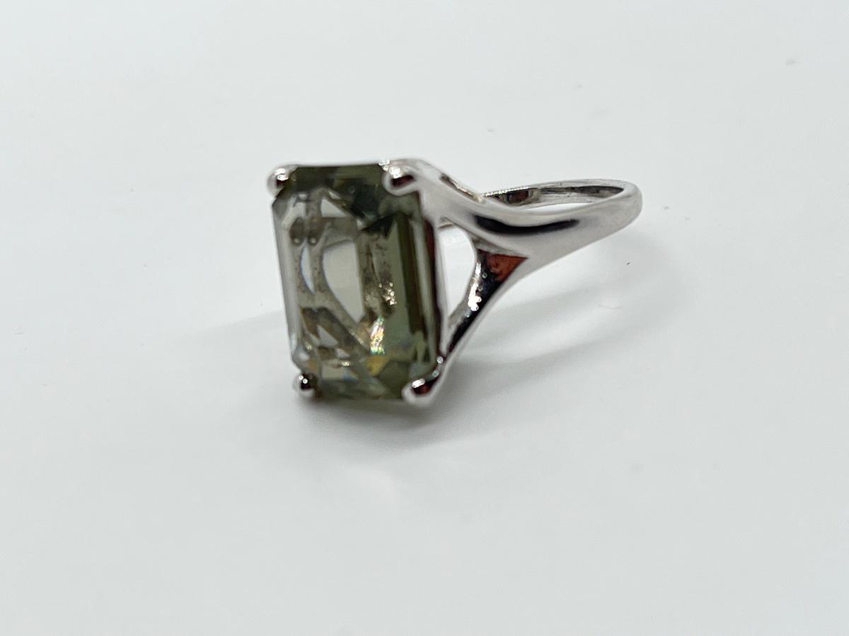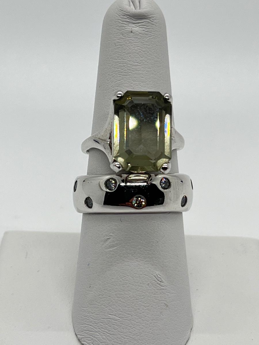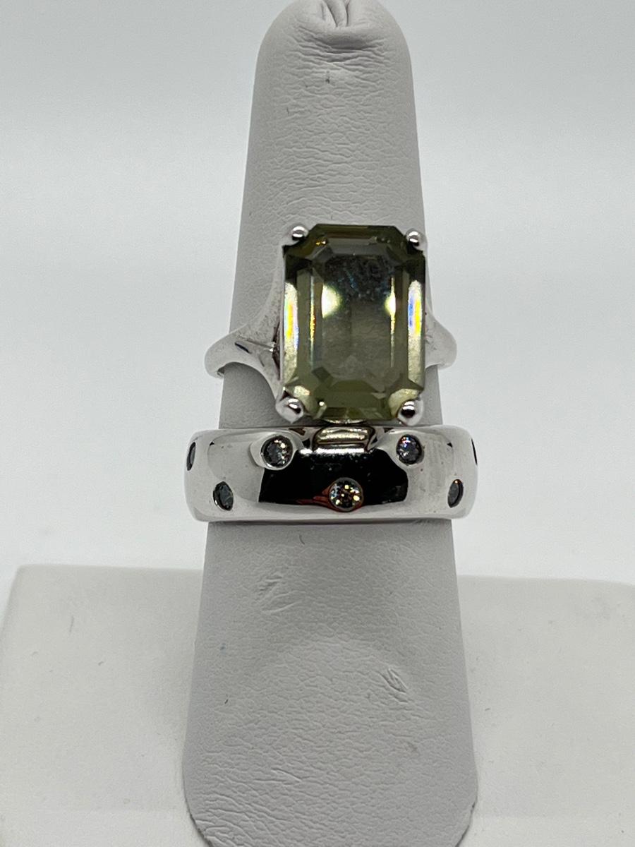 LOT 10: Rings Sz.7 925 Sterling Silver Green Amethyst & CZ Sterling Silver Band