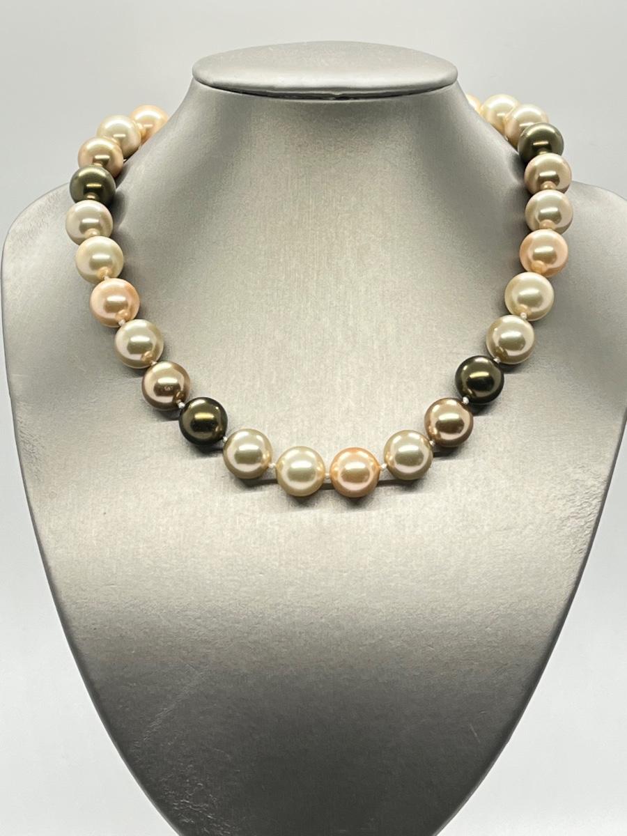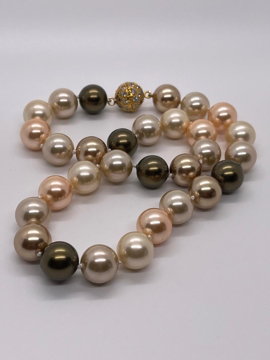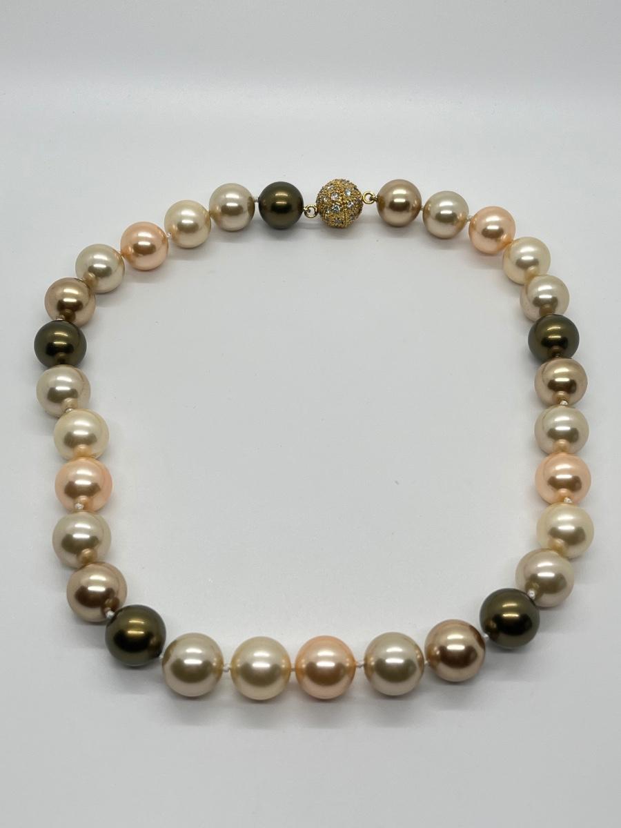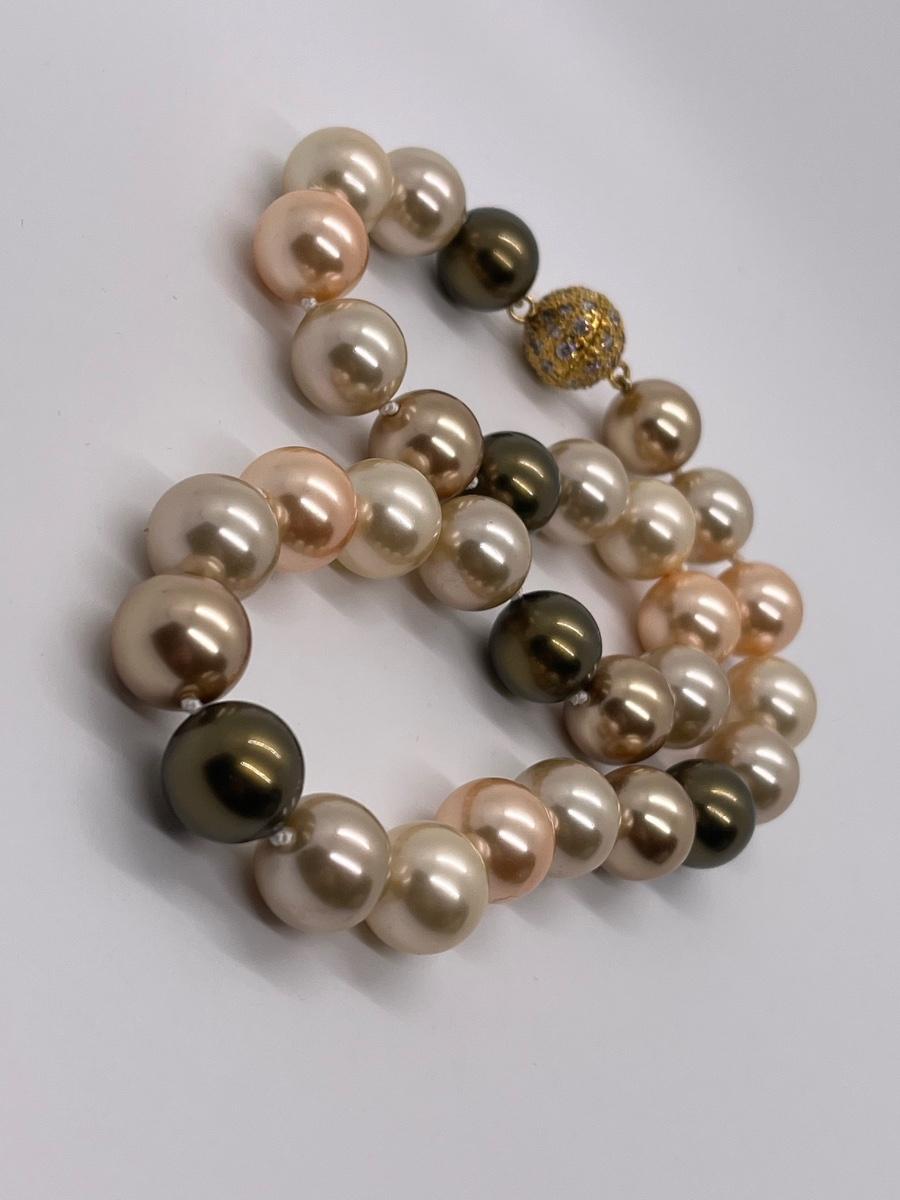 LOT 13: Multi Color Cultured Pearl Necklace w/Crystal Ball Clasp (19")