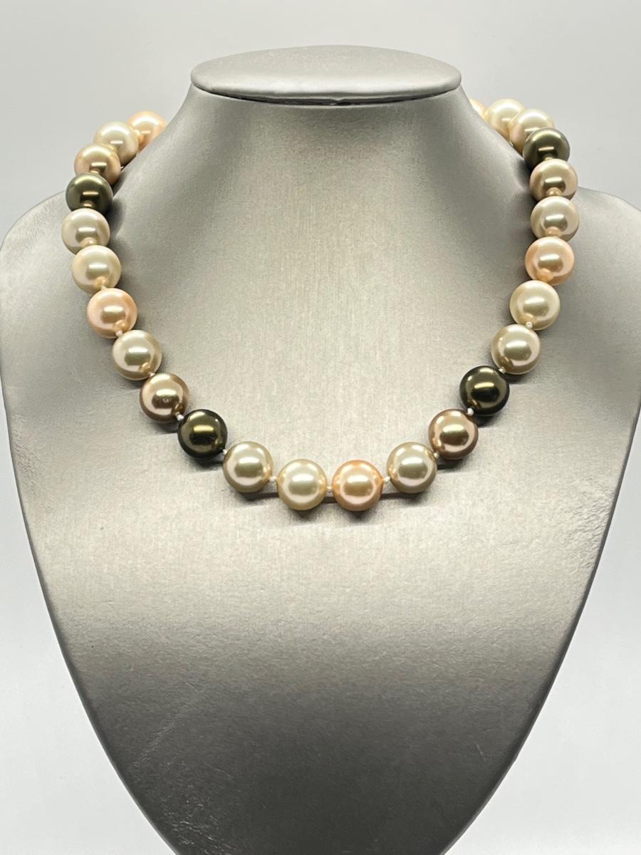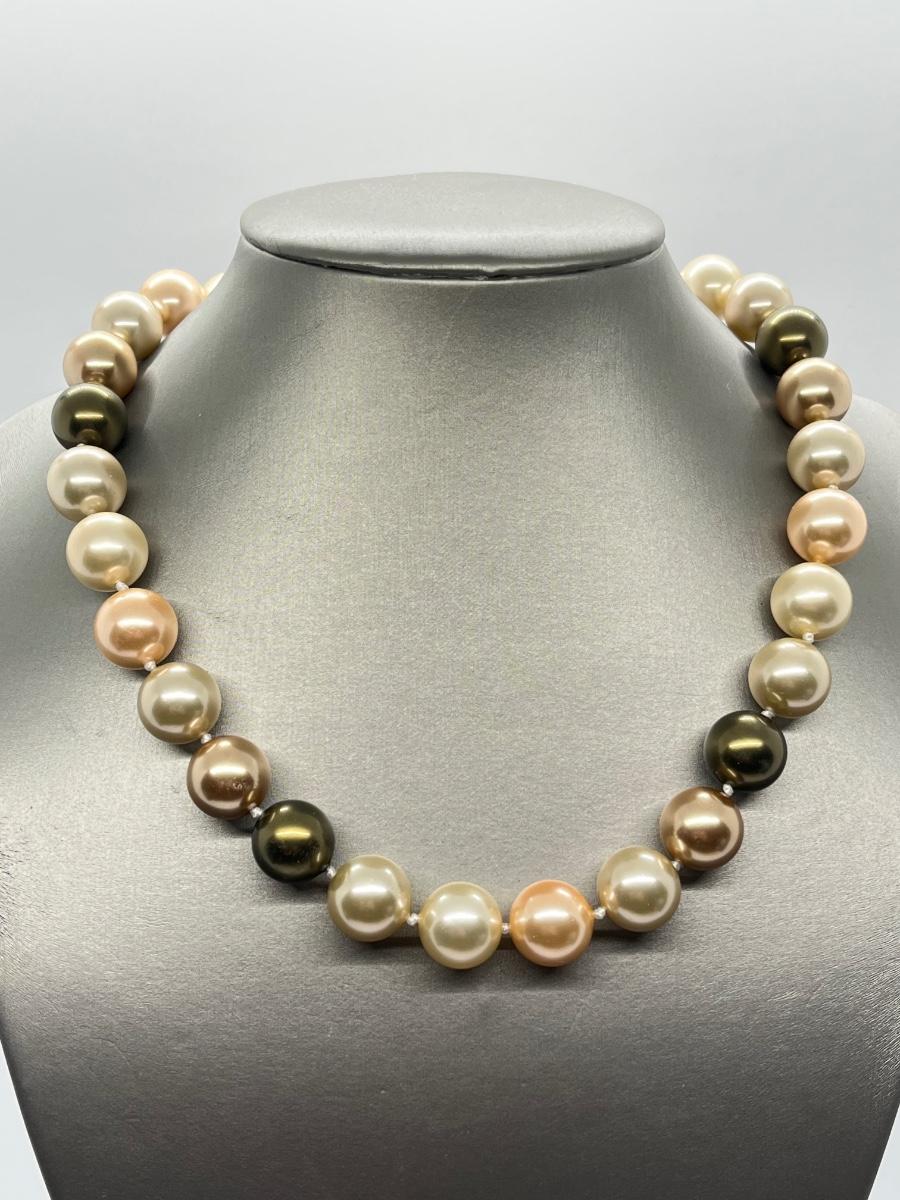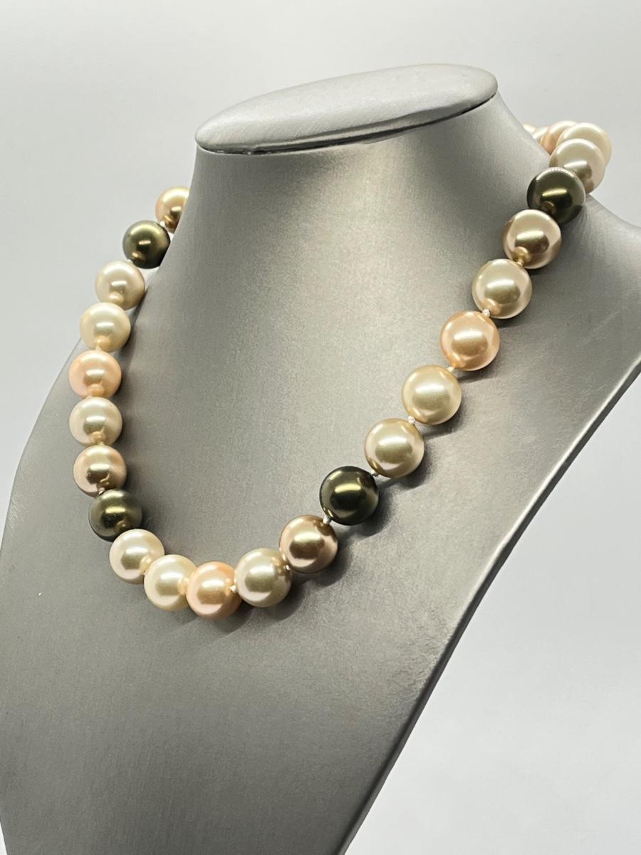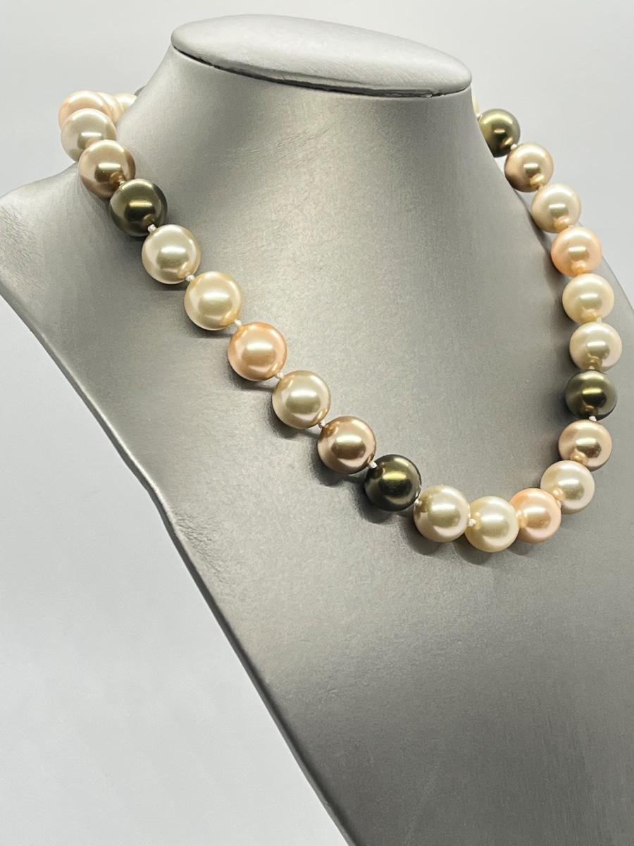 LOT 13: Multi Color Cultured Pearl Necklace w/Crystal Ball Clasp (19")