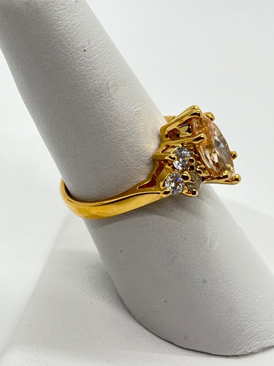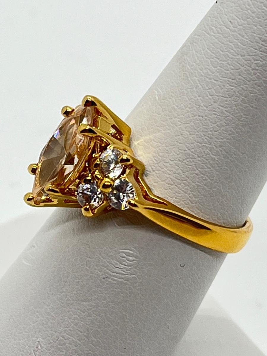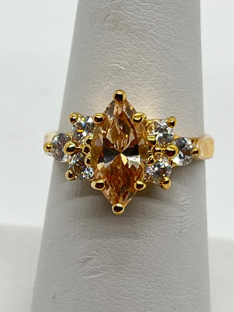 LOT 16: Gold Vermeil Sterling Silver 925 Rings: Marquis Cut Morganite/CZ & More