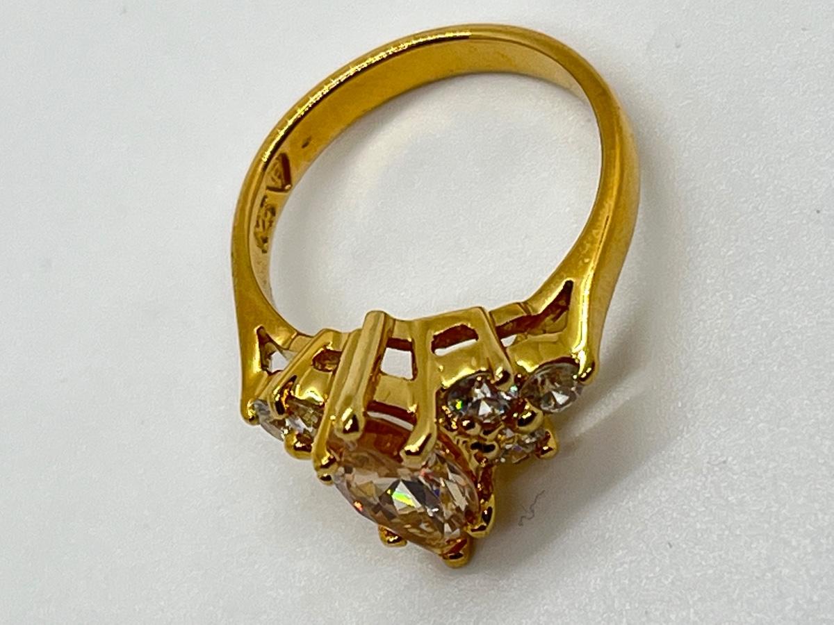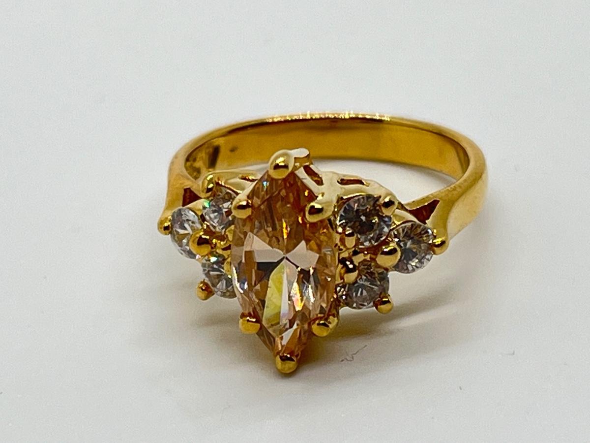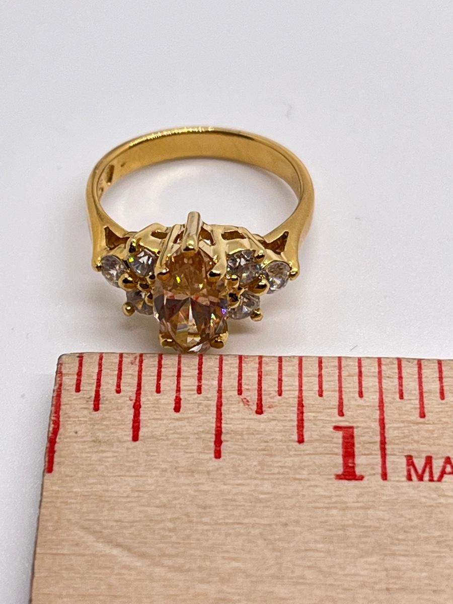 LOT 16: Gold Vermeil Sterling Silver 925 Rings: Marquis Cut Morganite/CZ & More