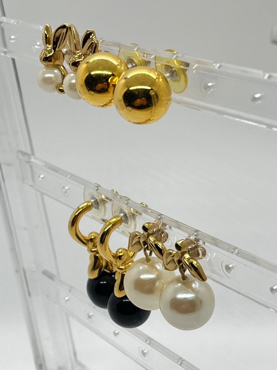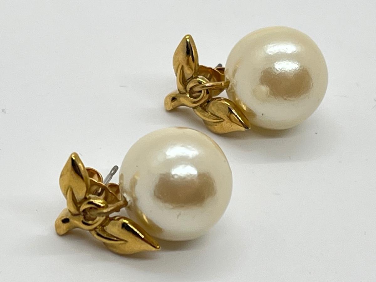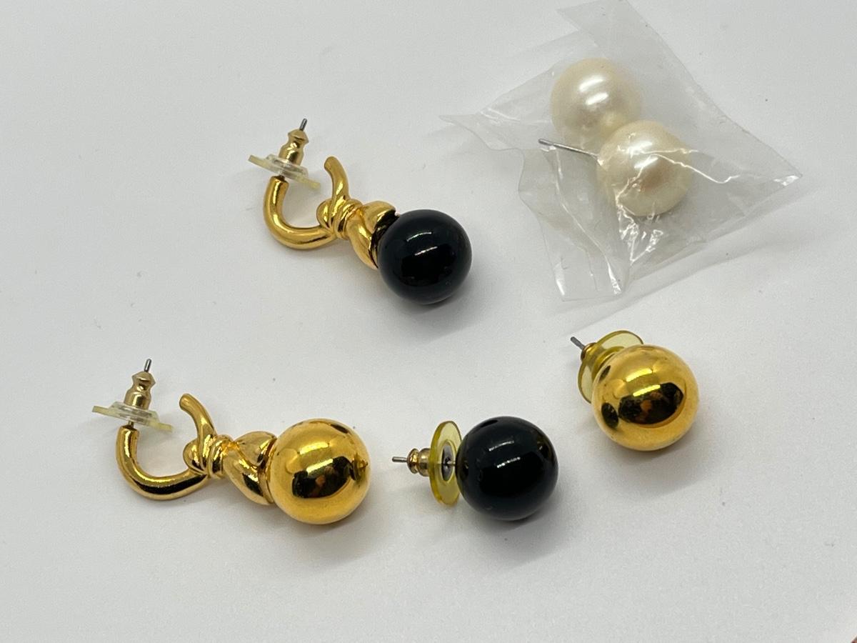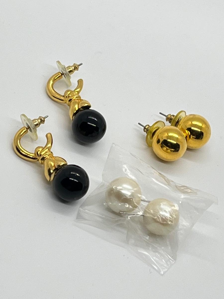 LOT 19: Goldtone Faux Pearl  Earrings, Missing Backs on 1 Pair
