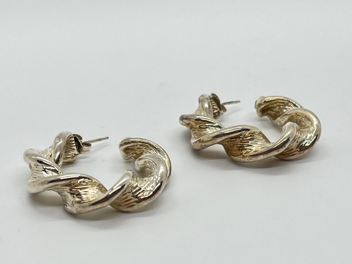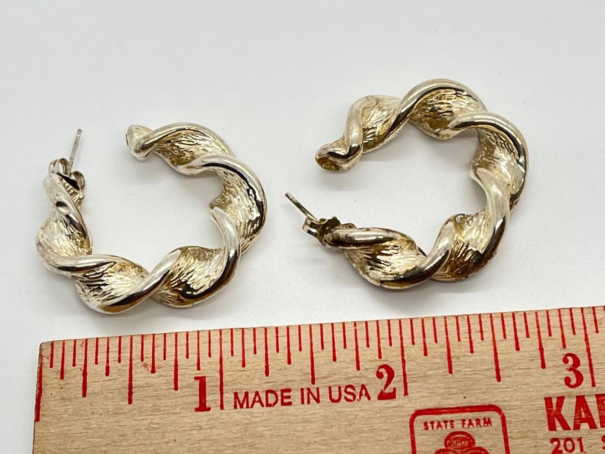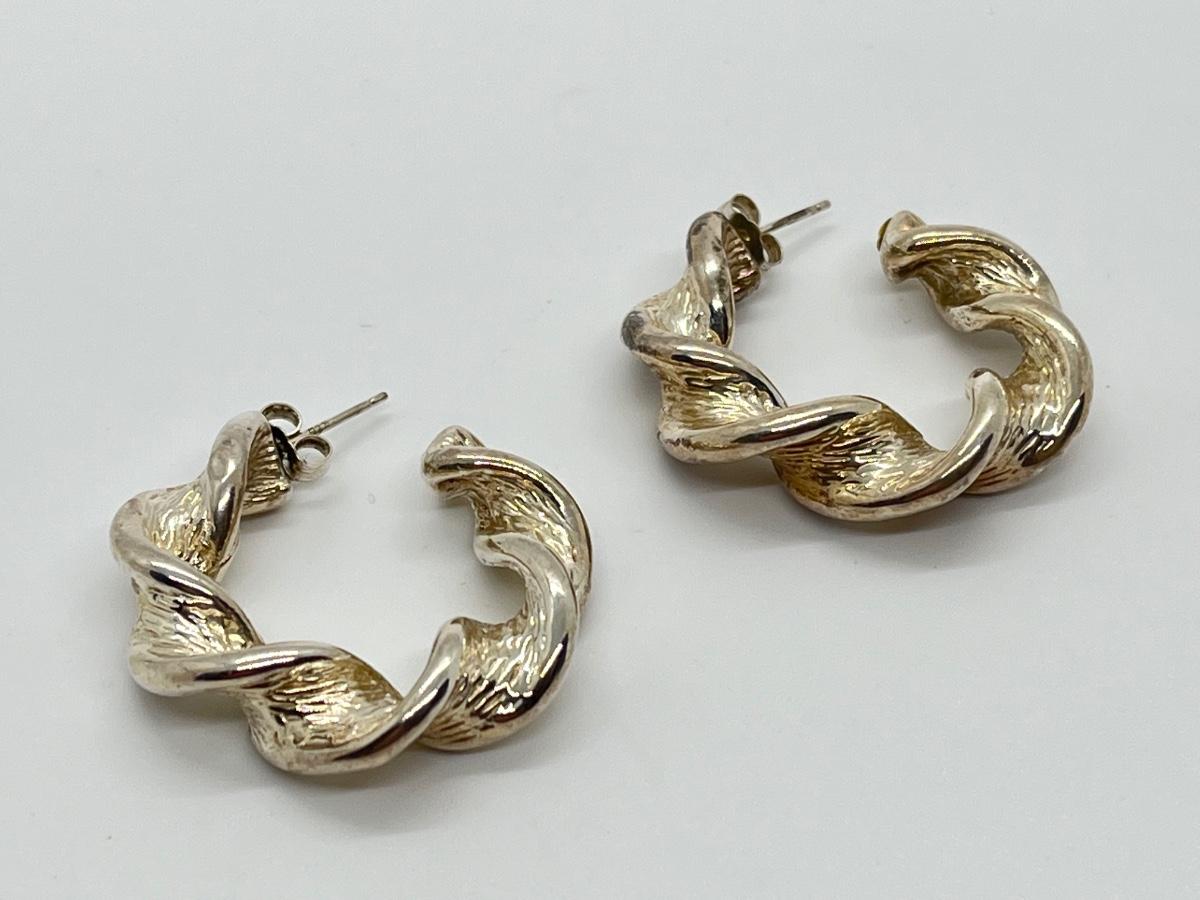 LOT 22: Sterling Silver Twisted Hoop Pierced Earrings 925