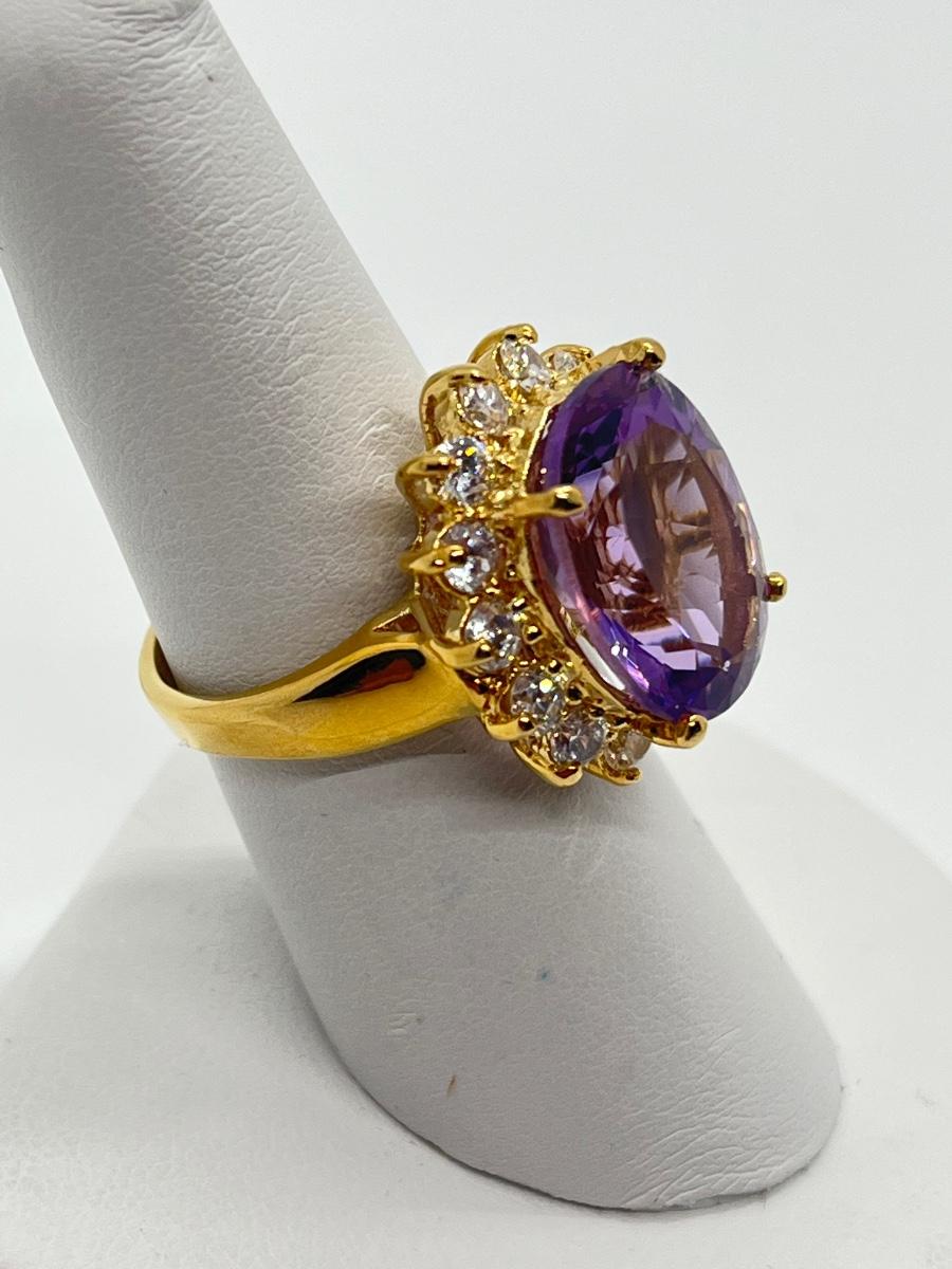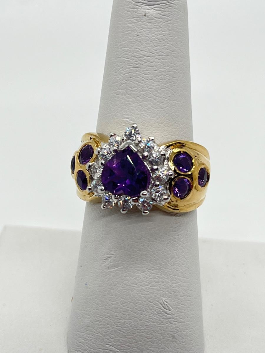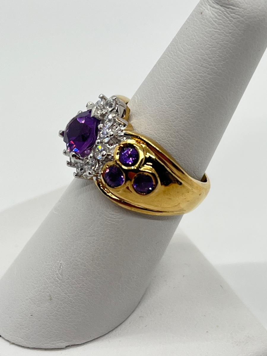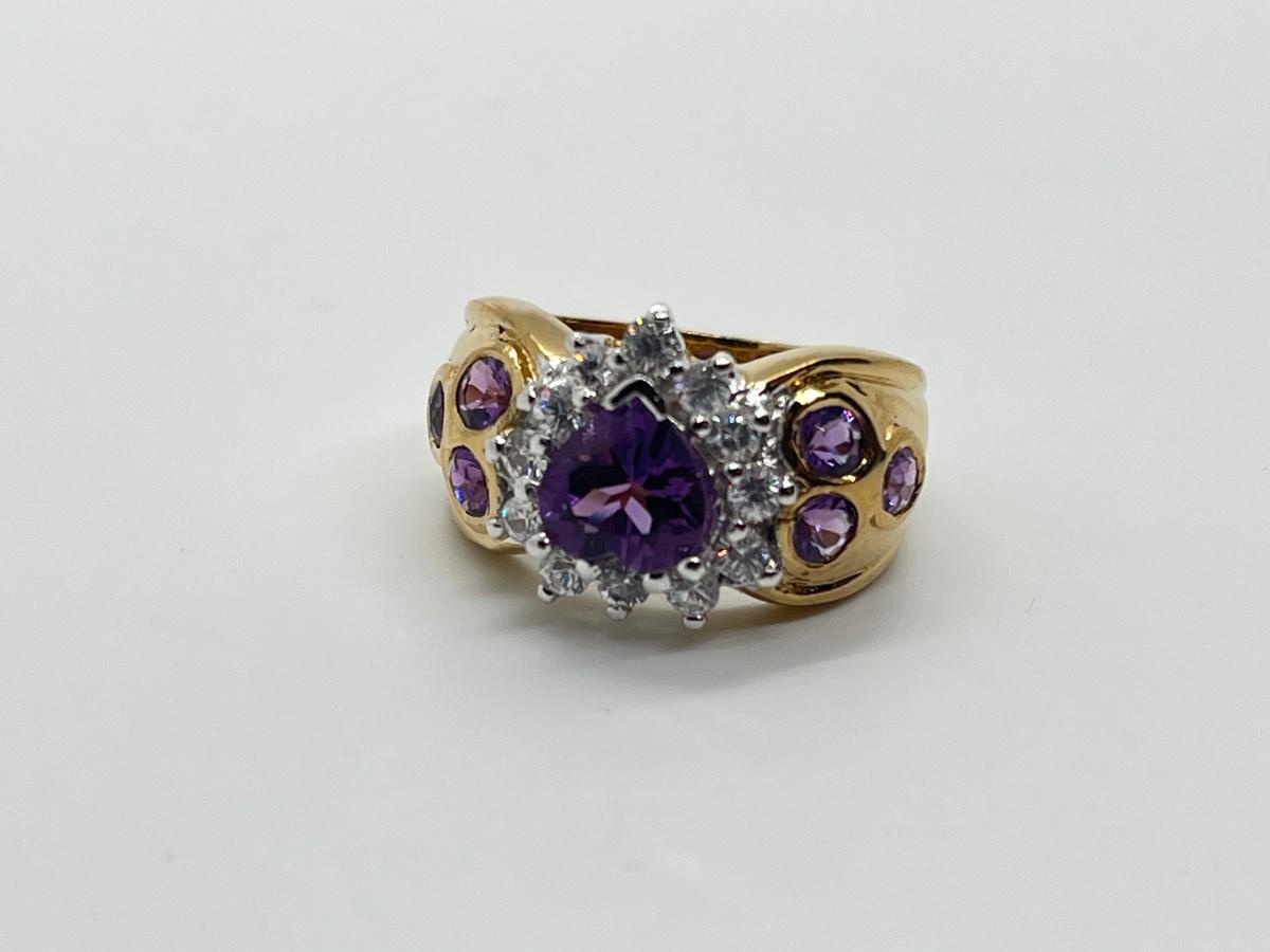 LOT 24: Gold Vermeil Sterling 925 Amethyst & CZ Rings 925  sz 7