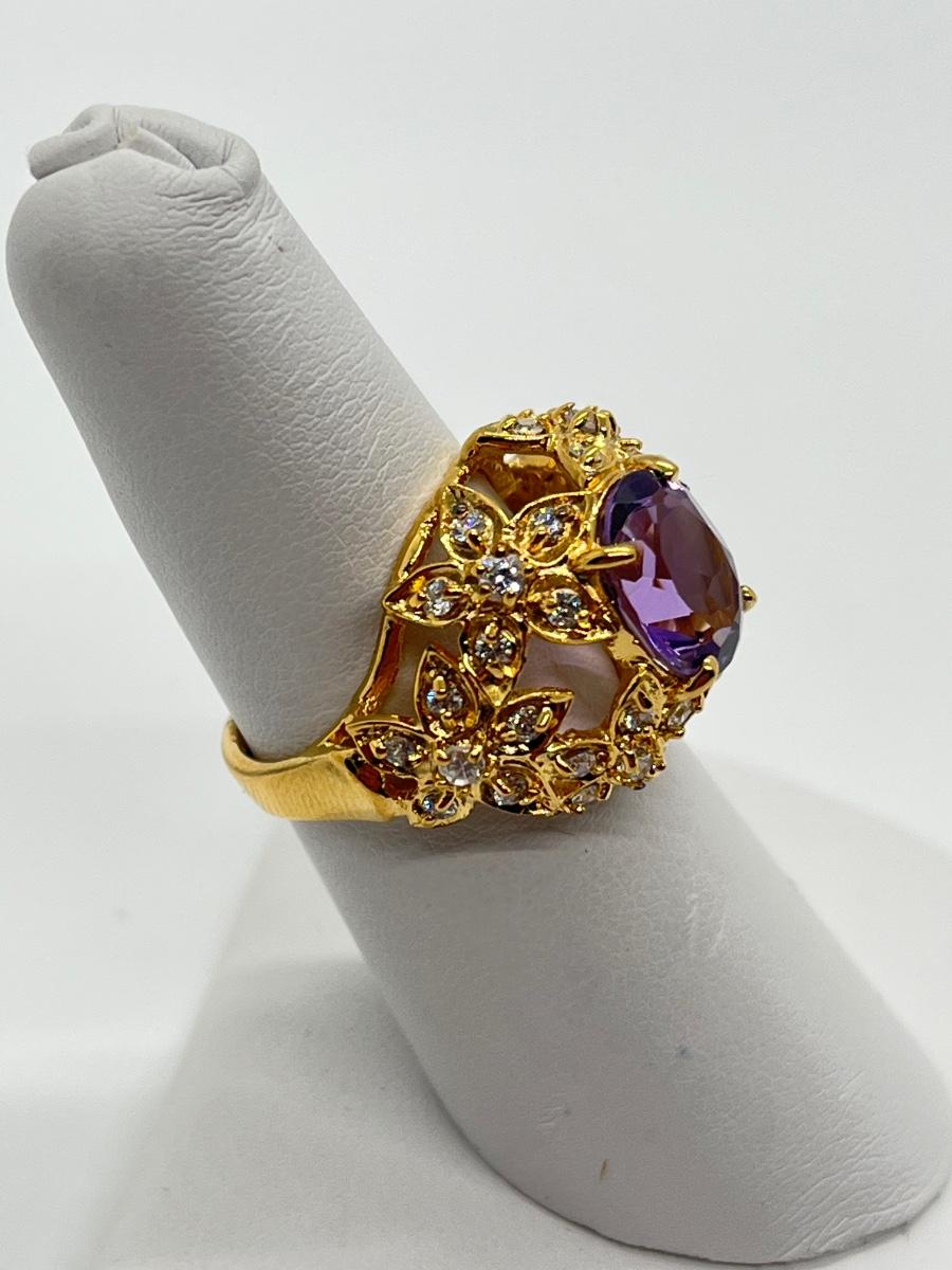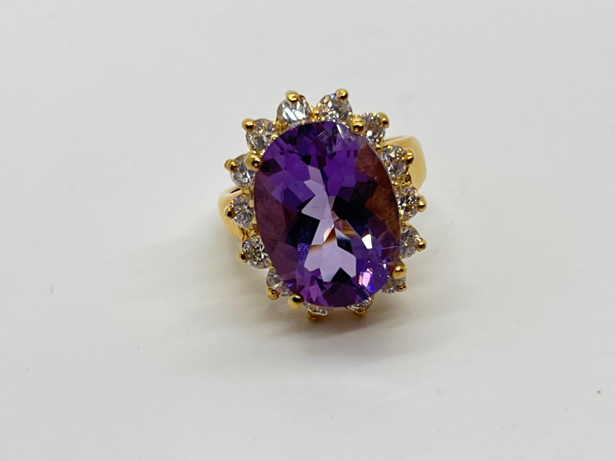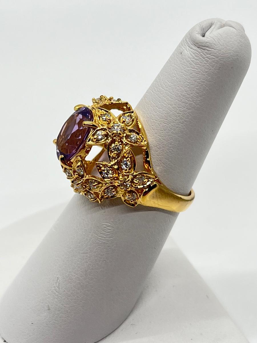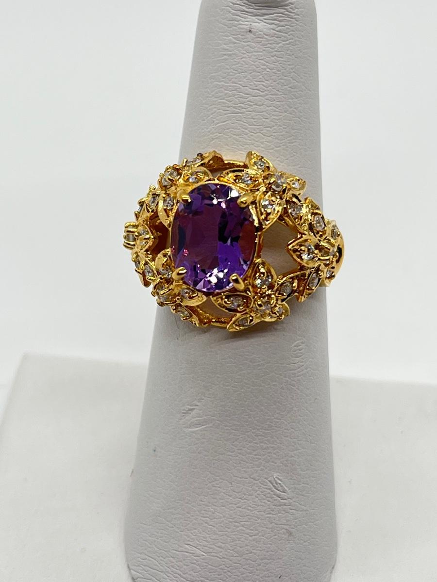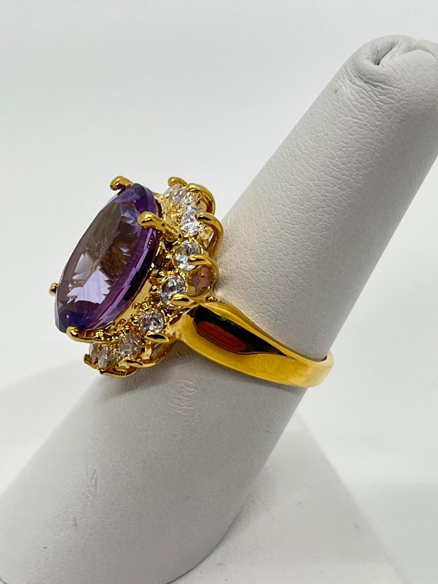 LOT 24: Gold Vermeil Sterling 925 Amethyst & CZ Rings 925  sz 7