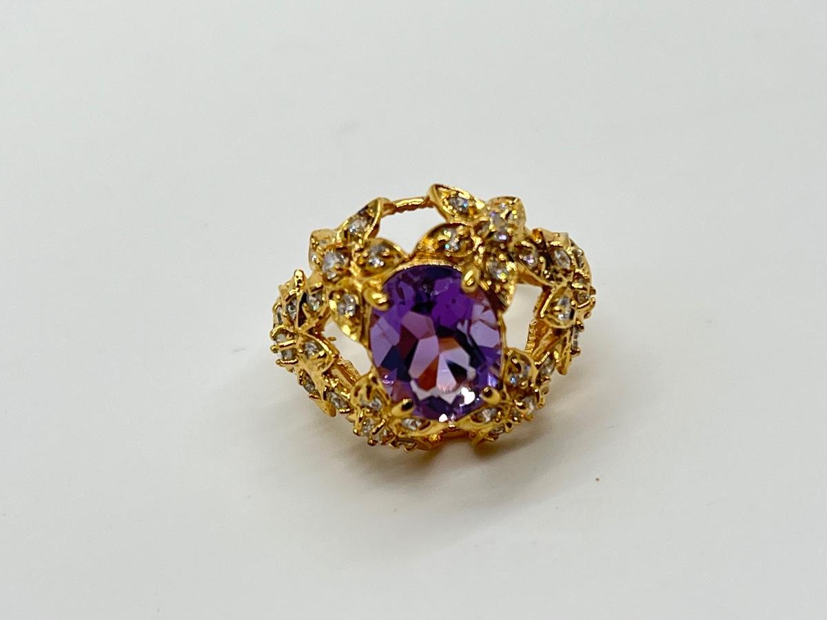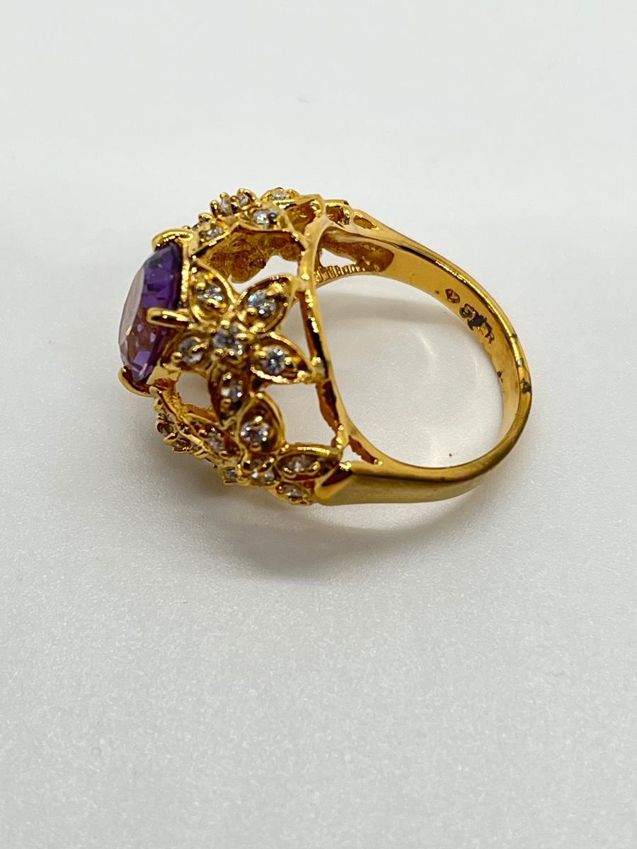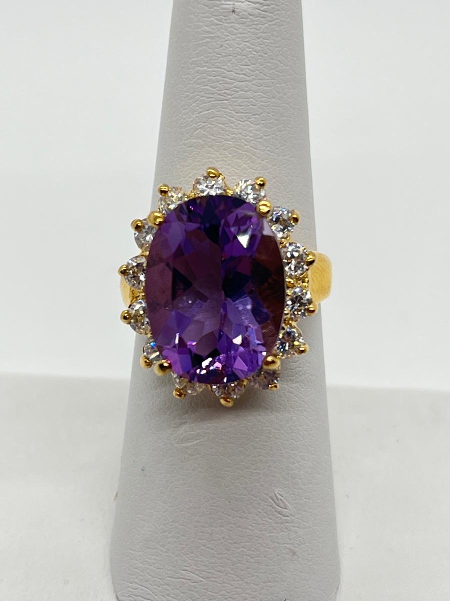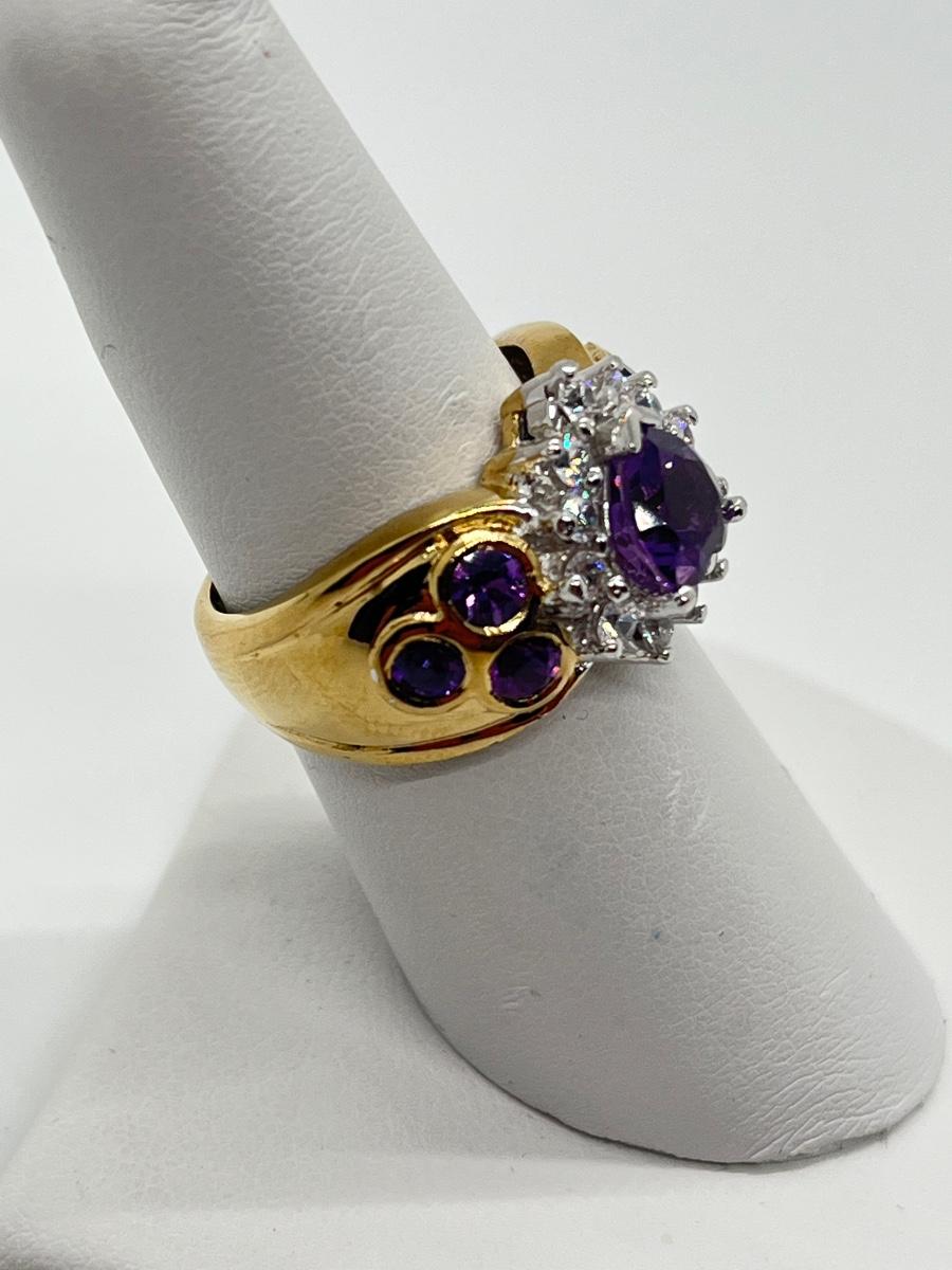 LOT 24: Gold Vermeil Sterling 925 Amethyst & CZ Rings 925  sz 7