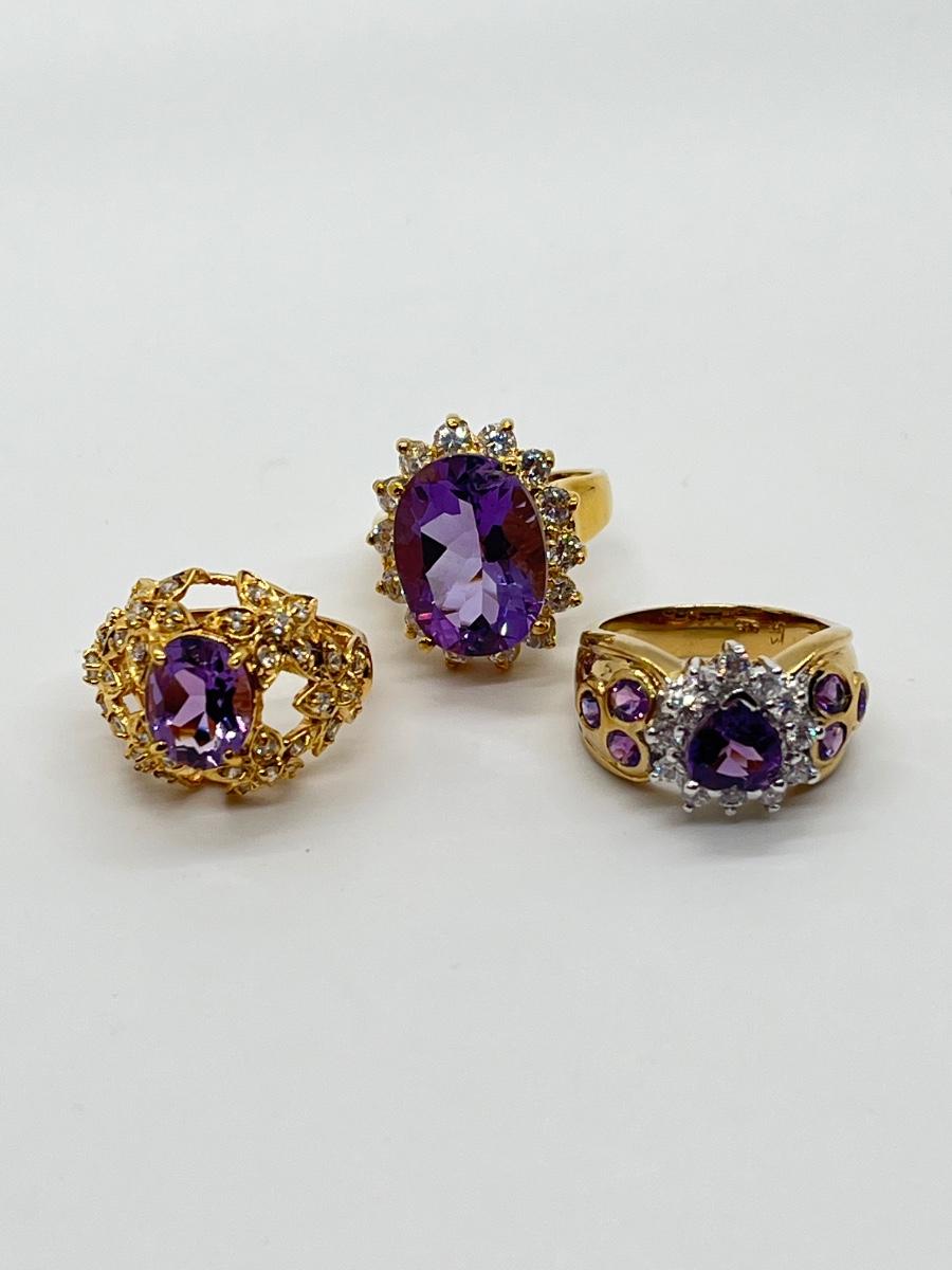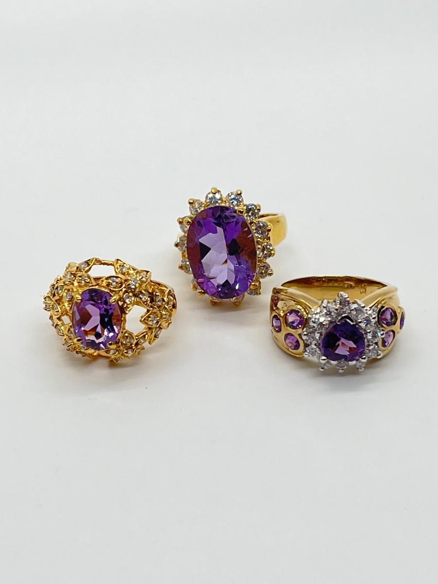 LOT 24: Gold Vermeil Sterling 925 Amethyst & CZ Rings 925 sz 7