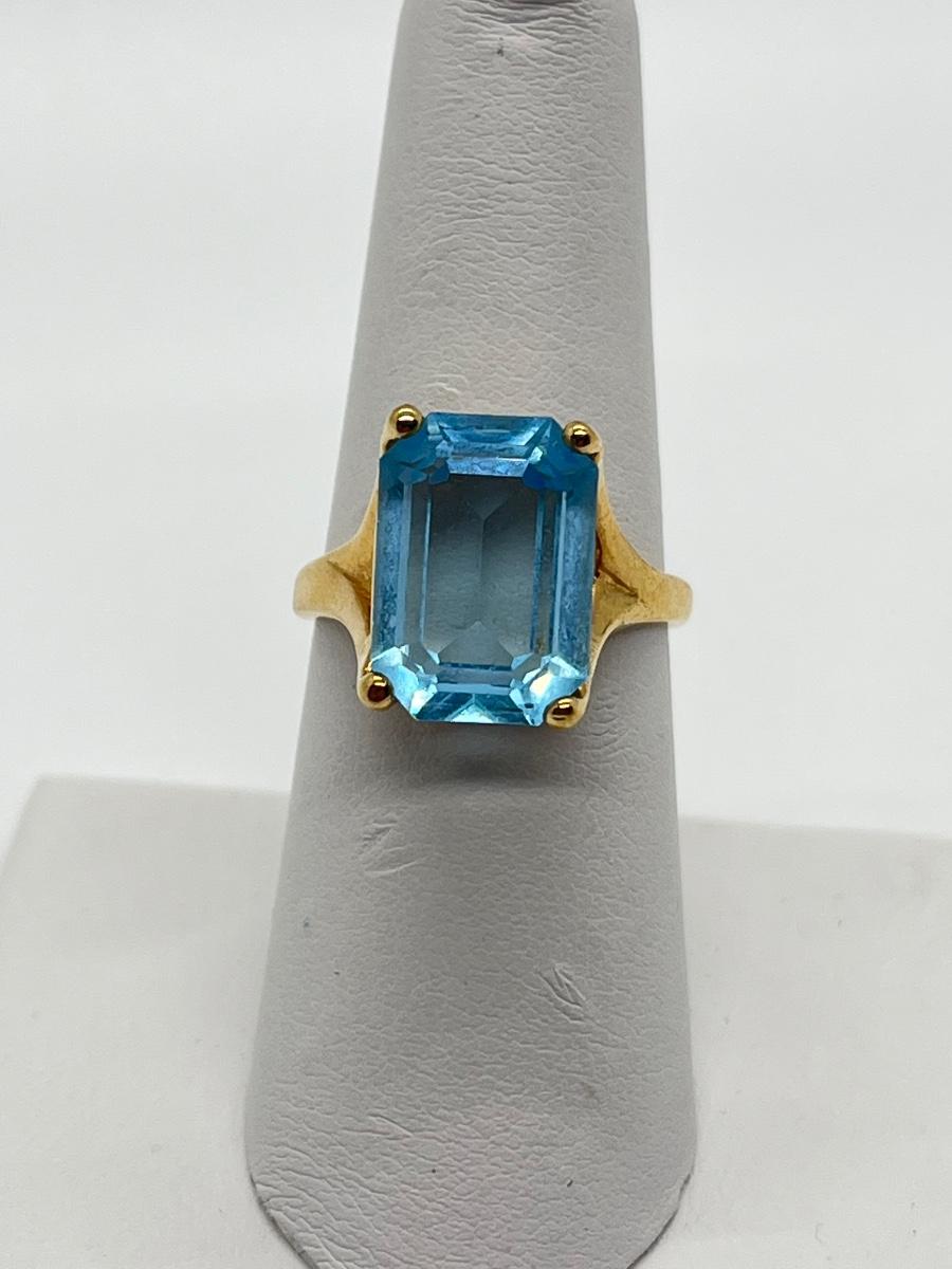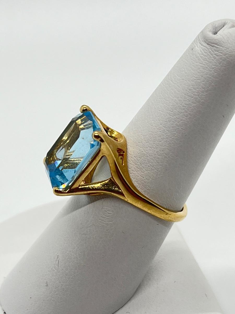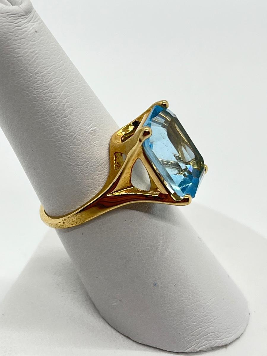 LOT 25: Large Emerald Cut Blue Topaz Ring-Gold Vermeil Sterling Silver 925 sz 7