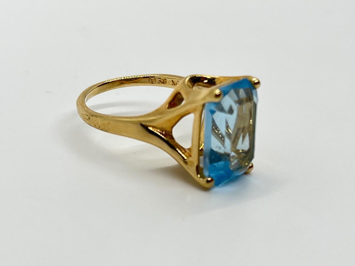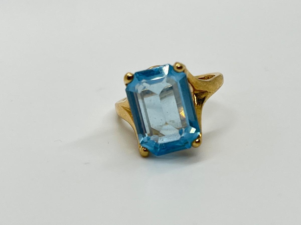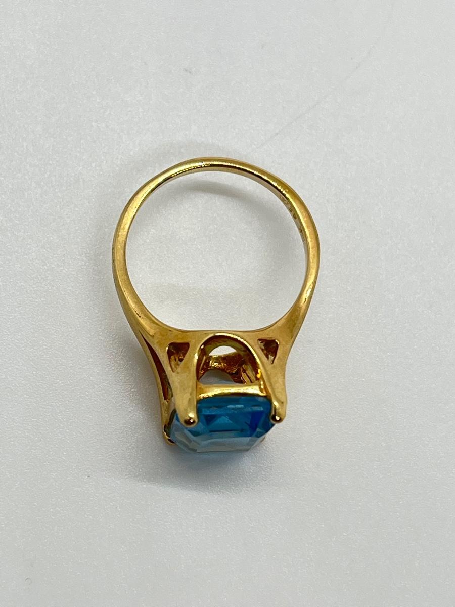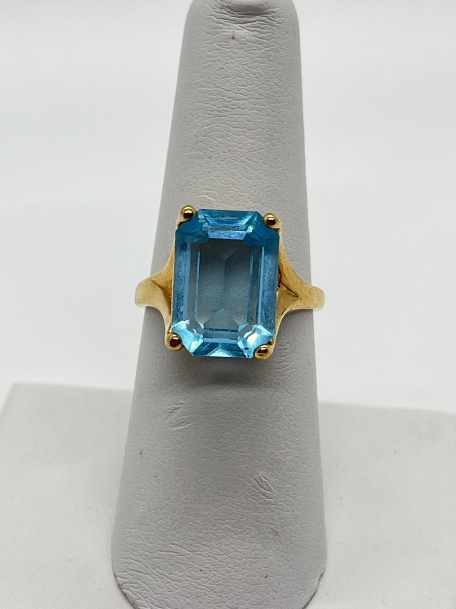 LOT 25: Large Emerald Cut Blue Topaz Ring-Gold Vermeil Sterling Silver 925 sz 7