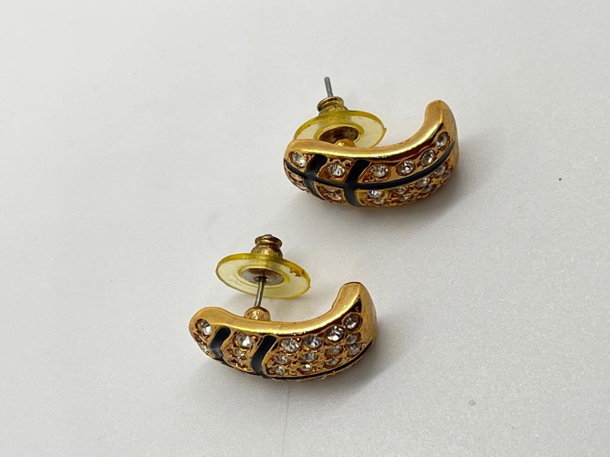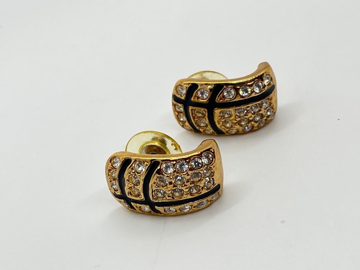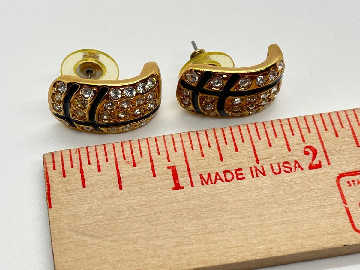 LOT 36: Black Enamel & CZ Goldtone Pierced Earrings