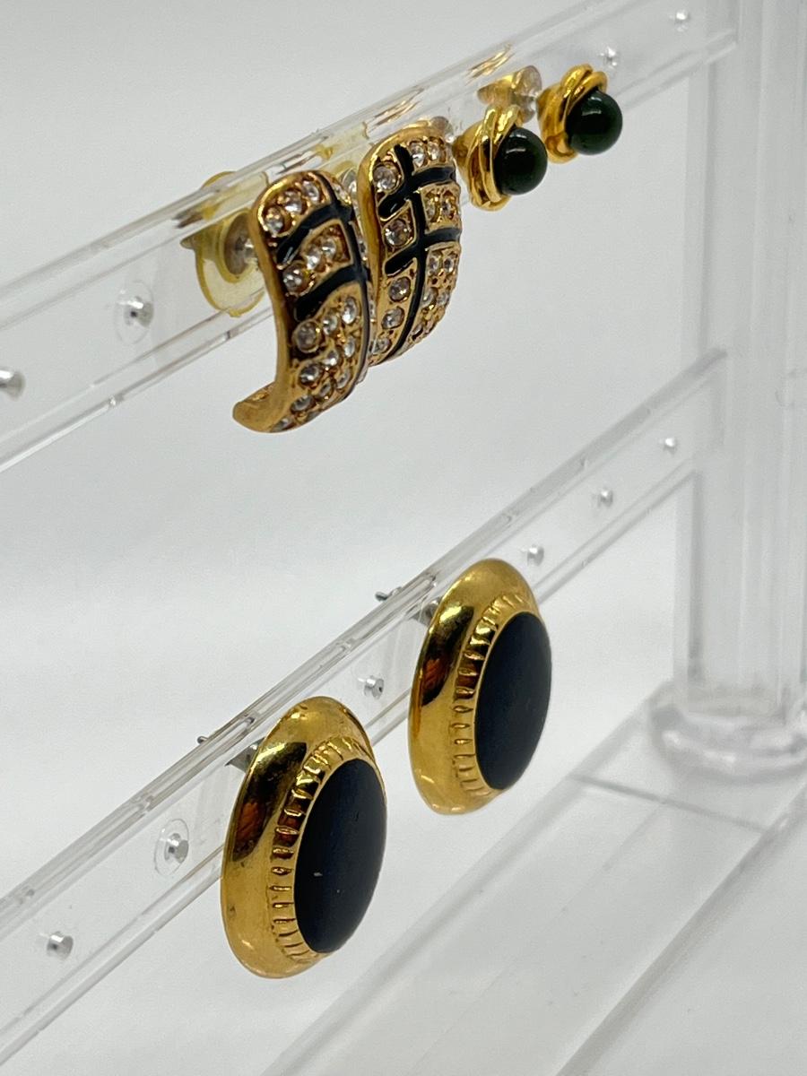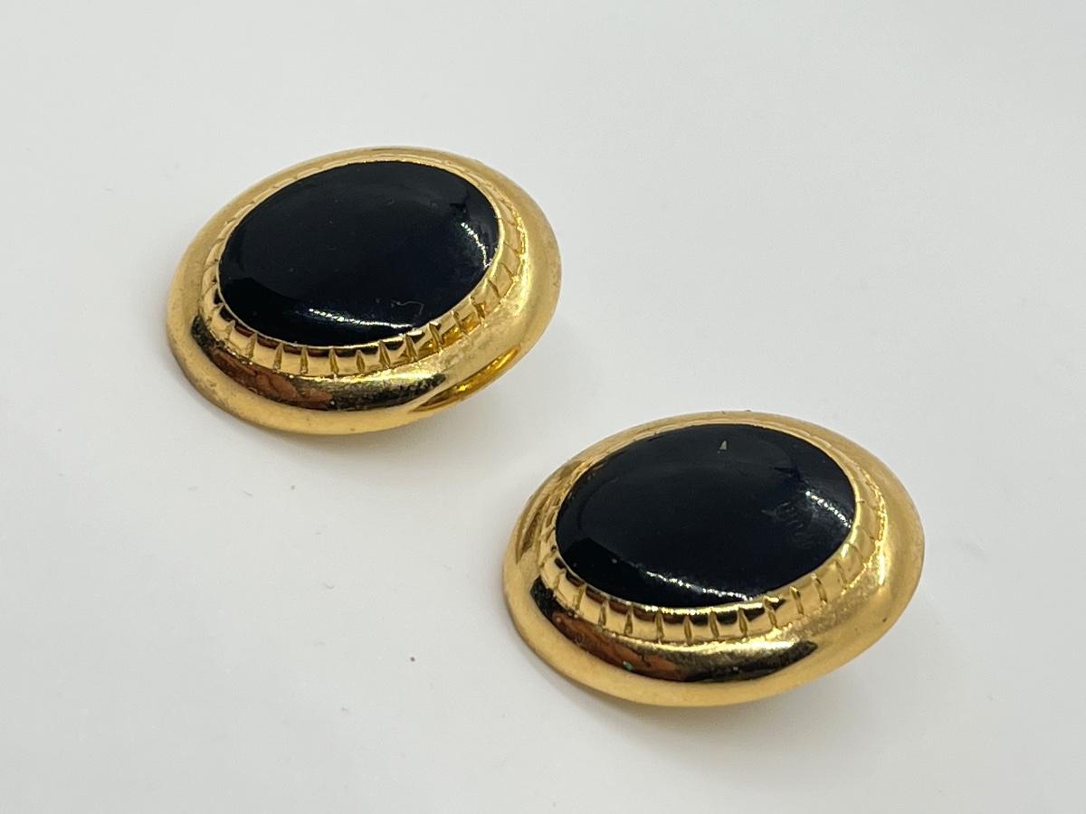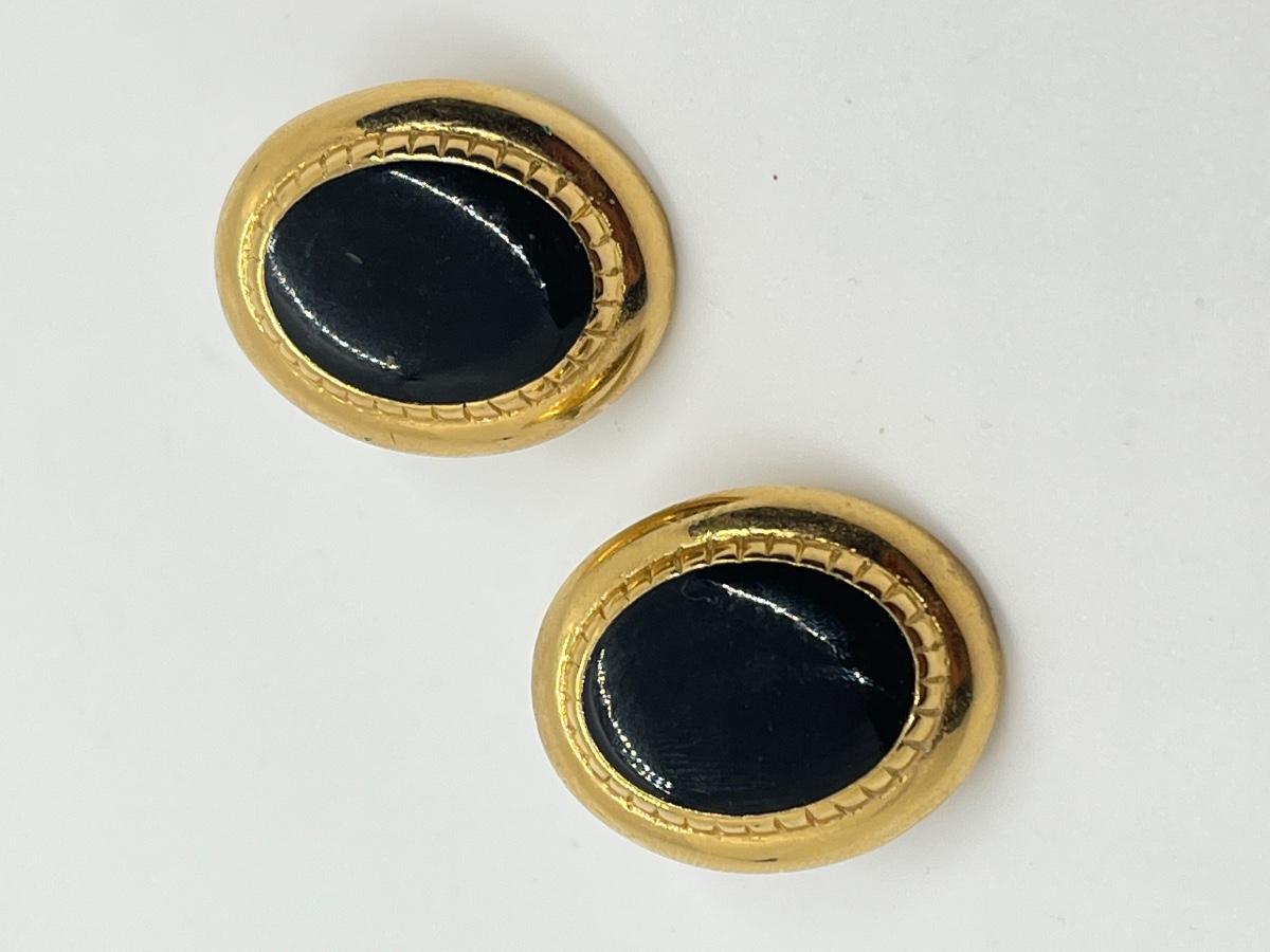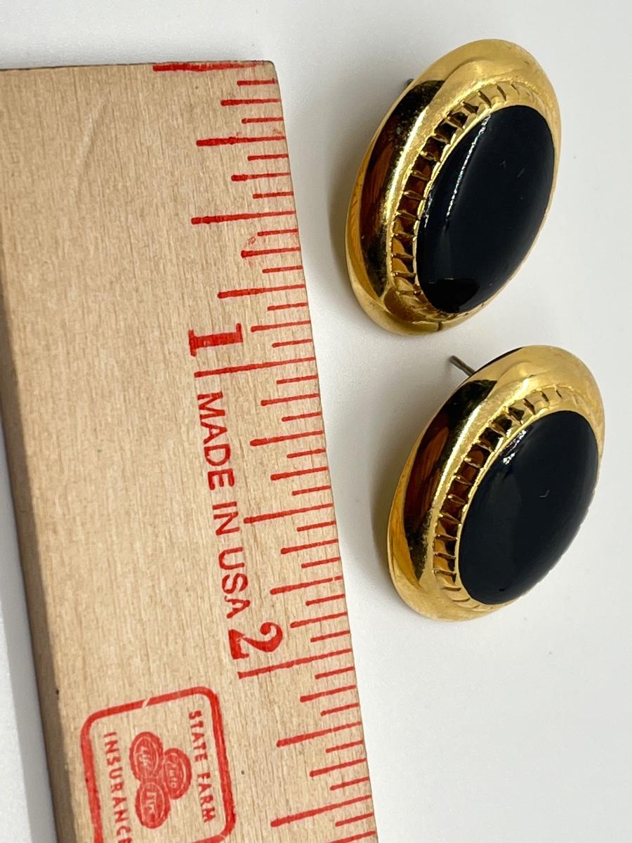 LOT 36: Black Enamel & CZ Goldtone Pierced Earrings