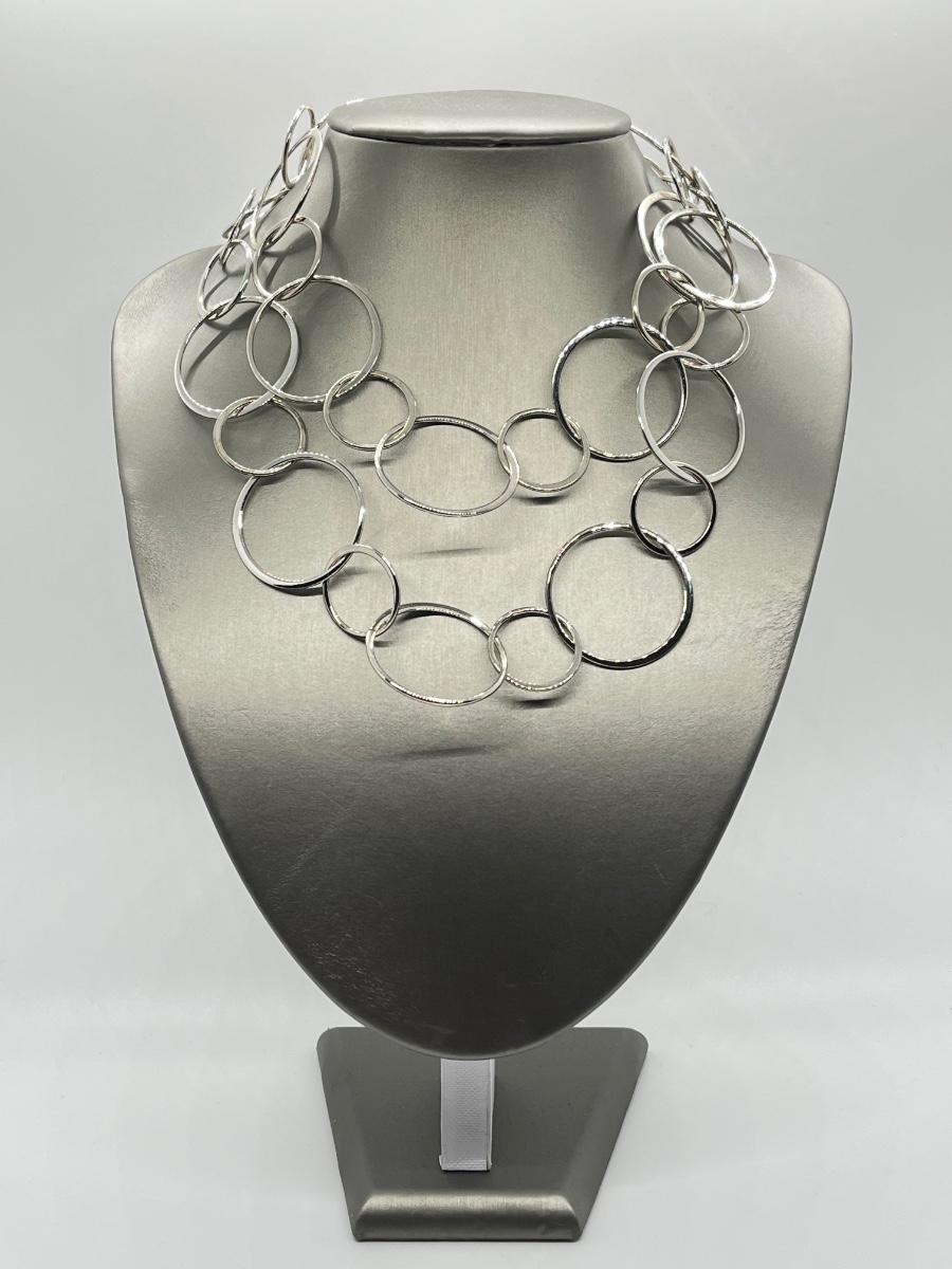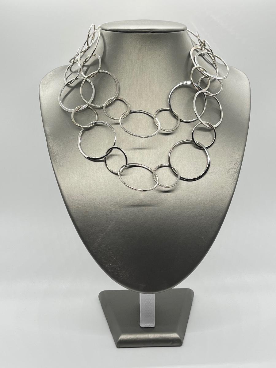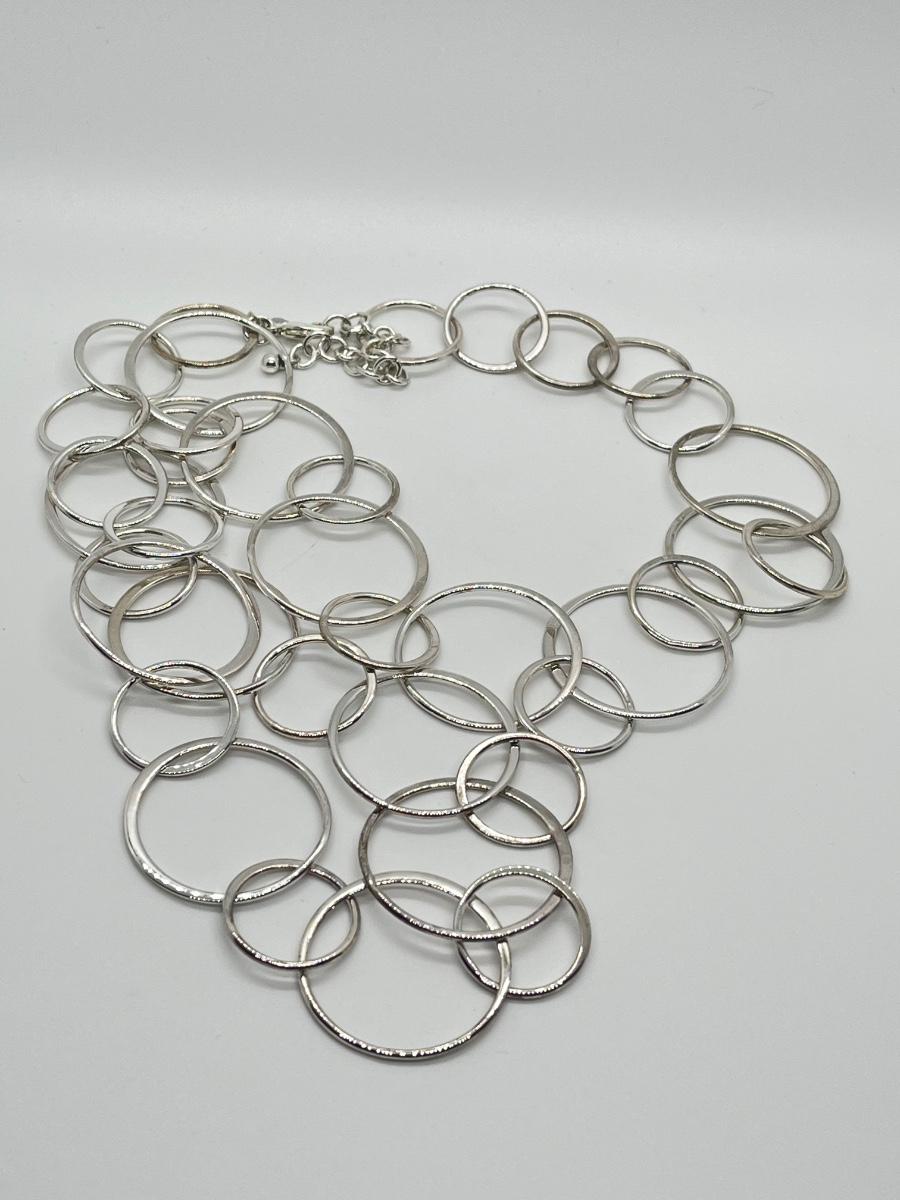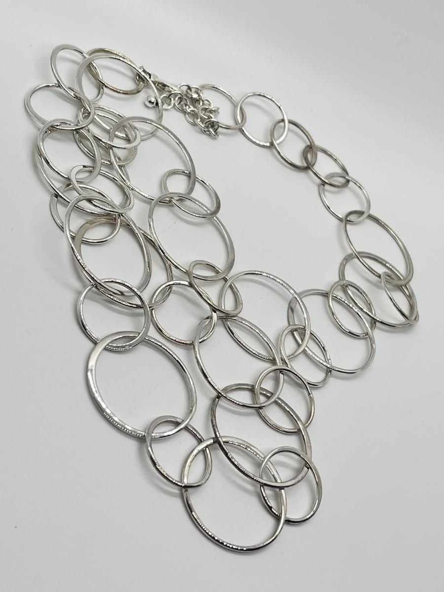 LOT 43:JOAN RIVERS 38"  Silvertone Interlocking Circles Necklace