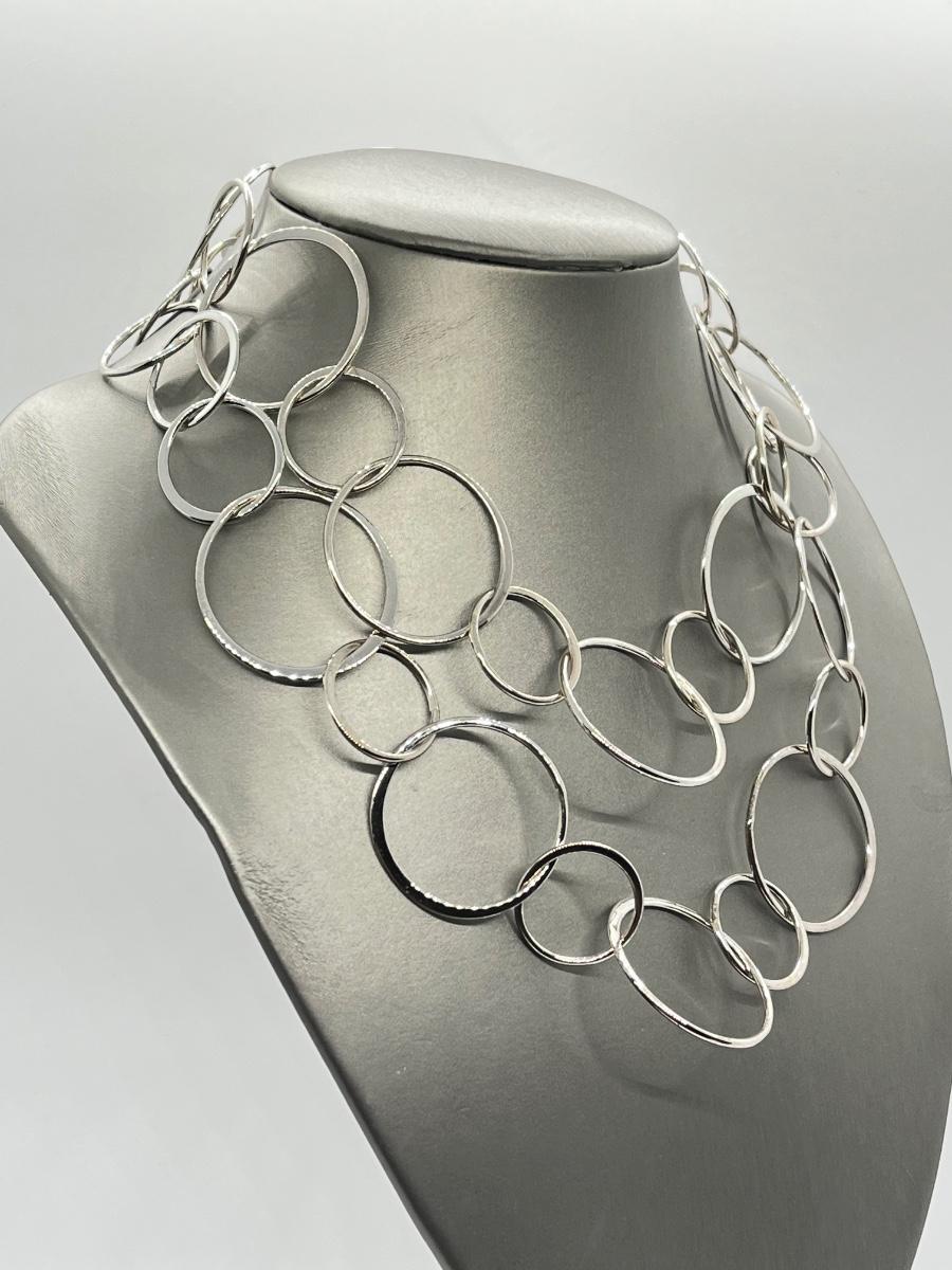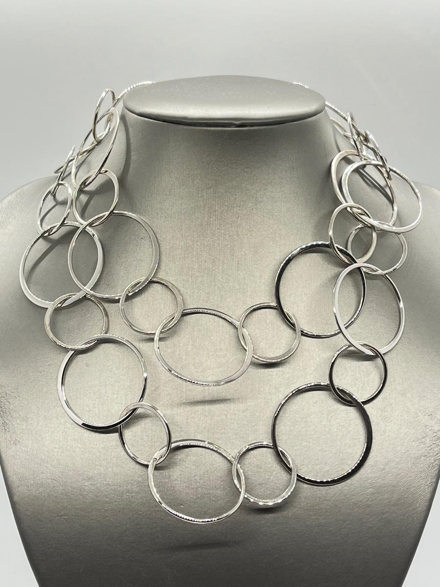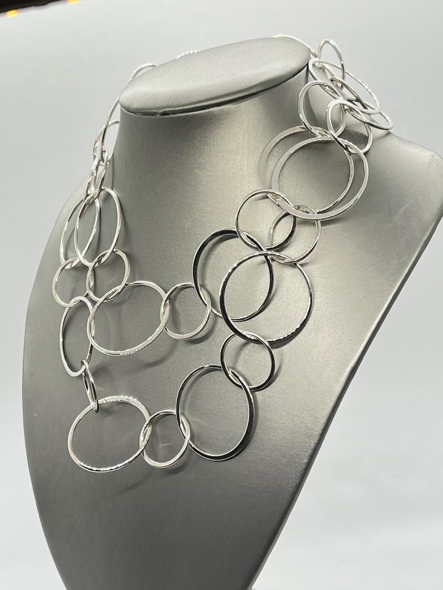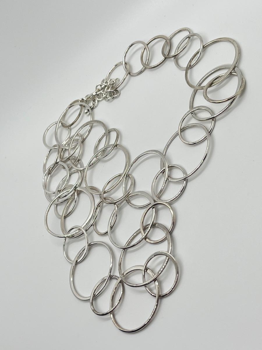 LOT 43:JOAN RIVERS 38"  Silvertone Interlocking Circles Necklace
