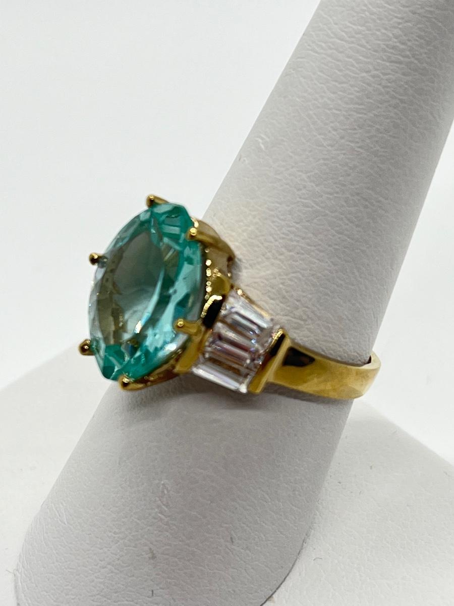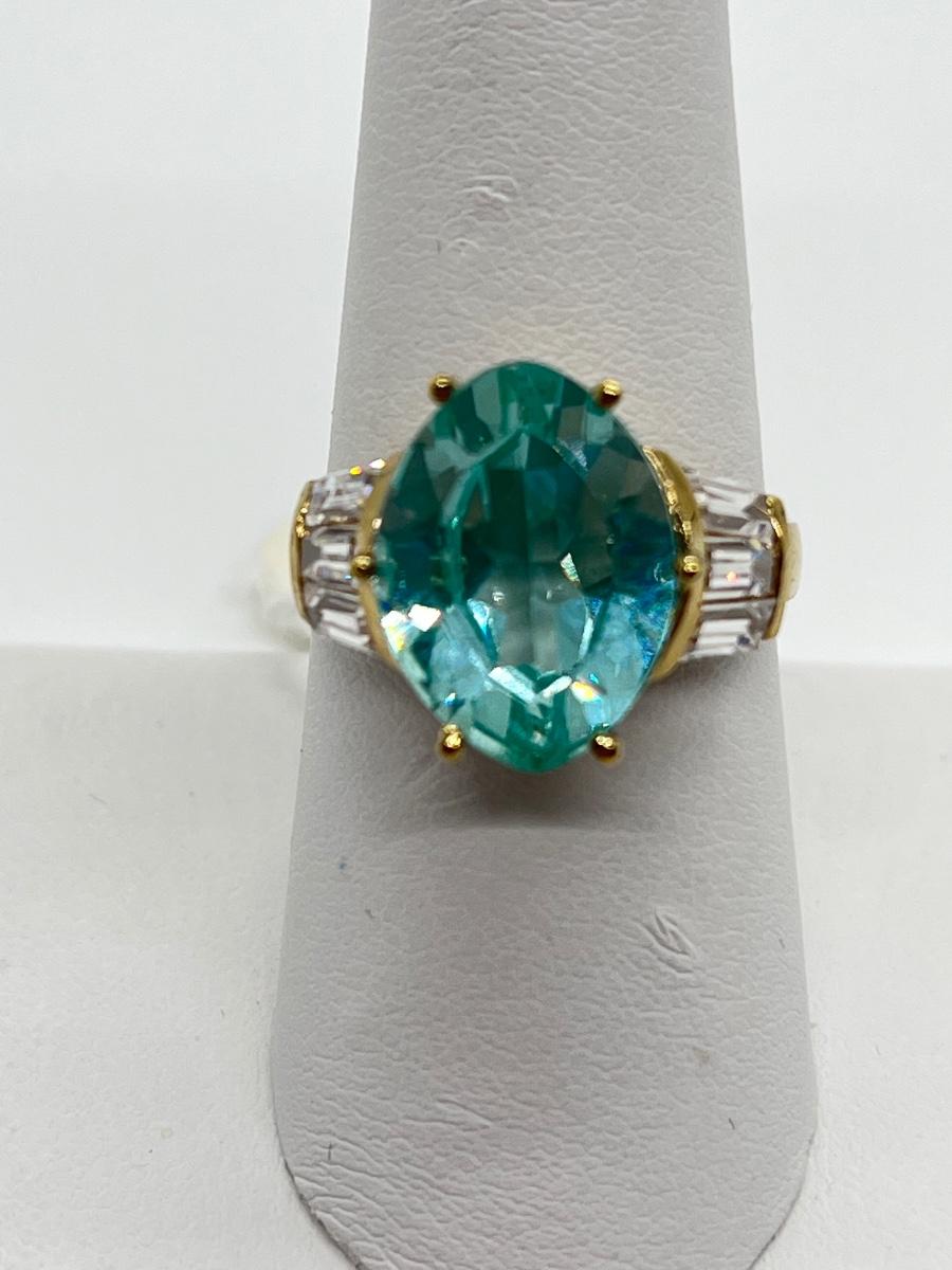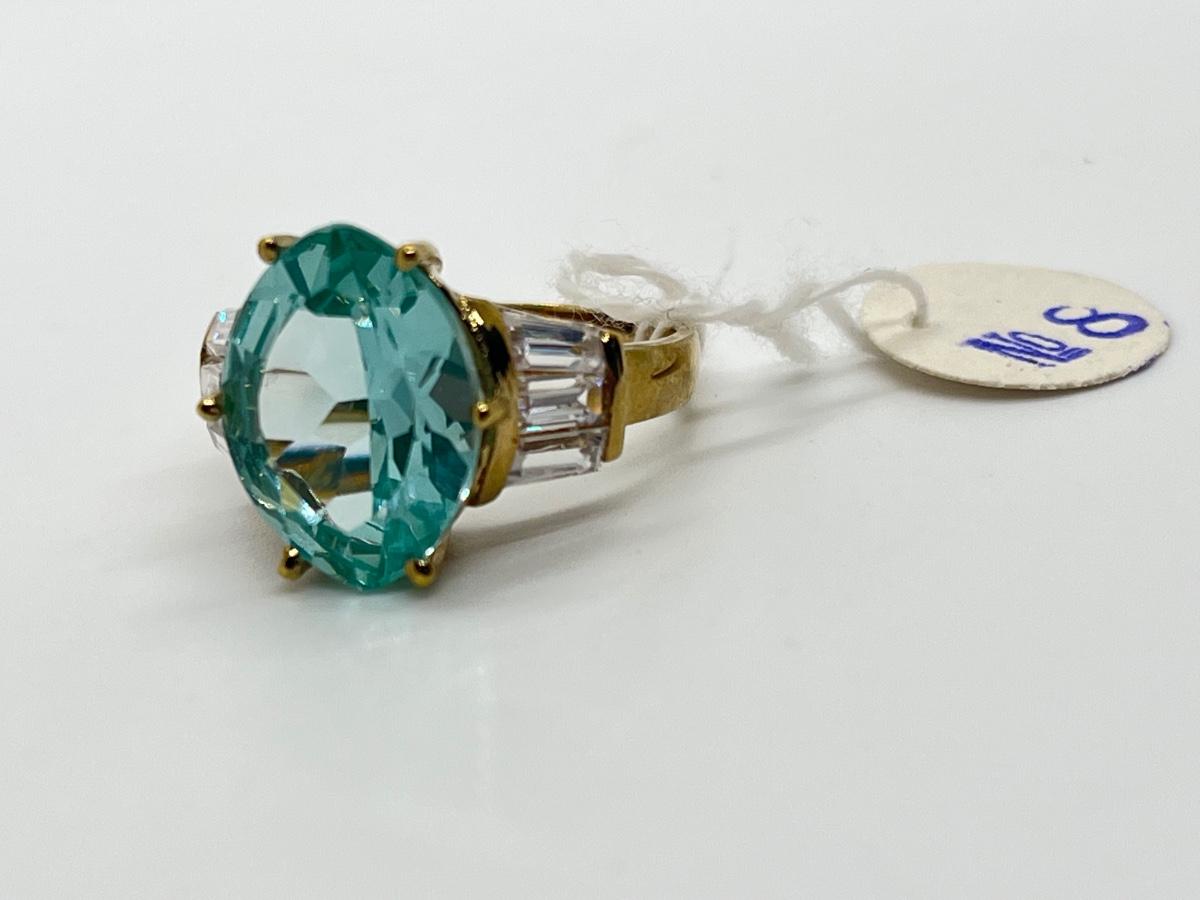 LOT 54: Sterling Silver Green Apatite & CZ Size 8 Ring