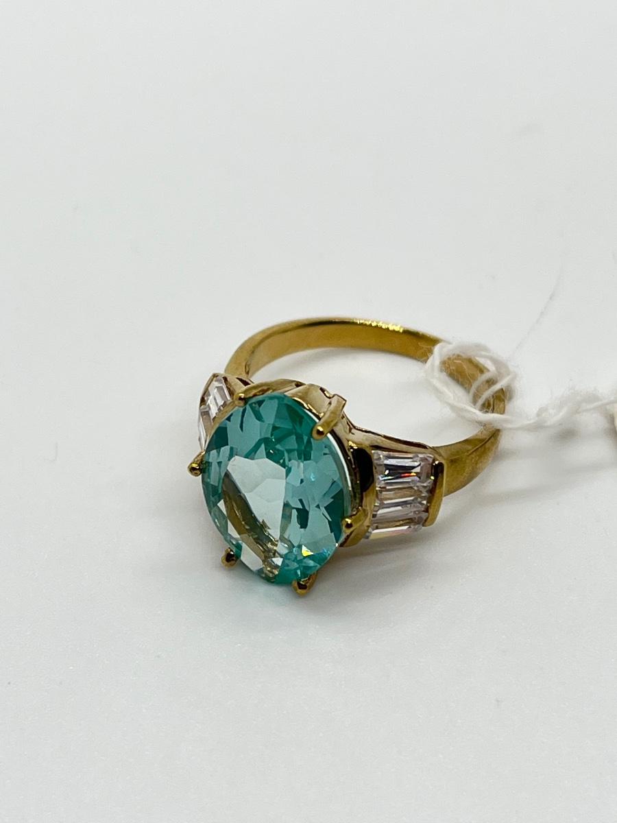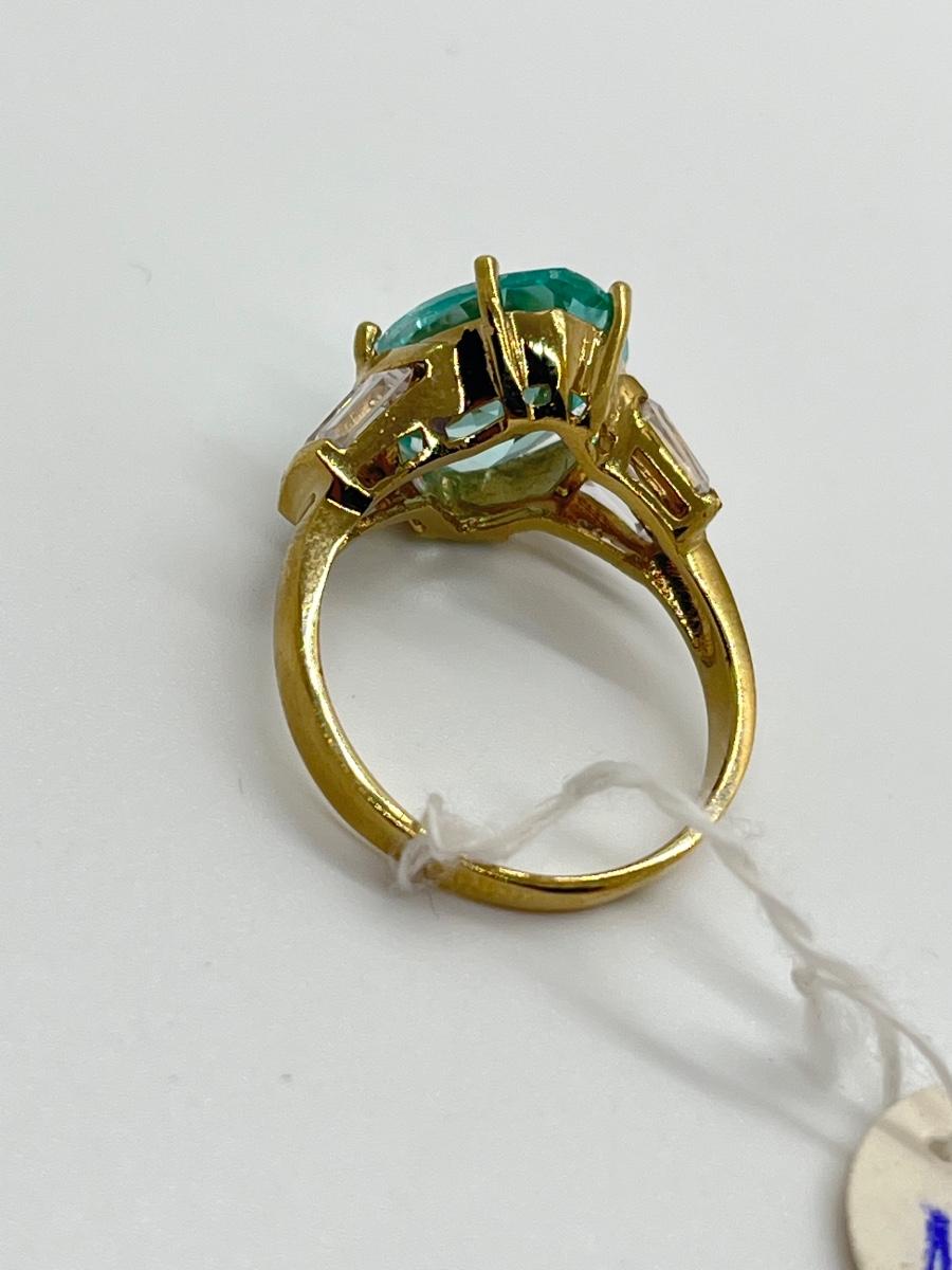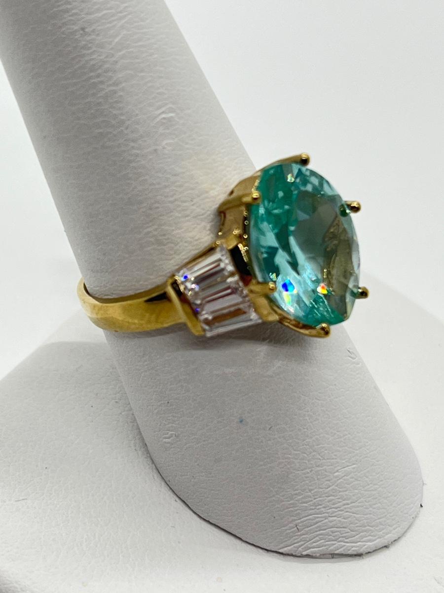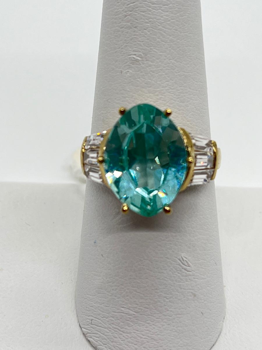 LOT 54: Sterling Silver Green Apatite & CZ Size 8 Ring
