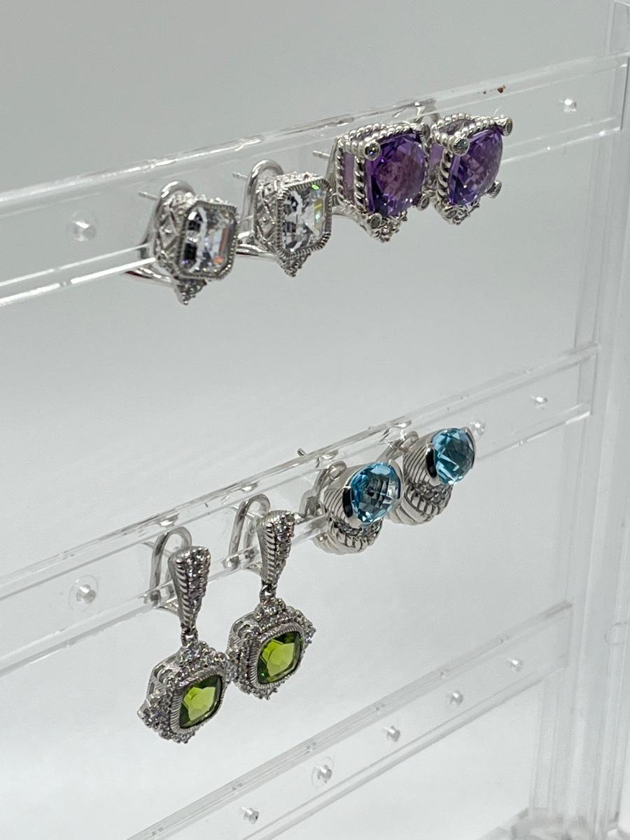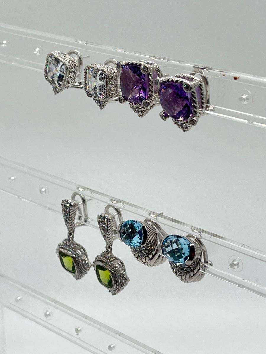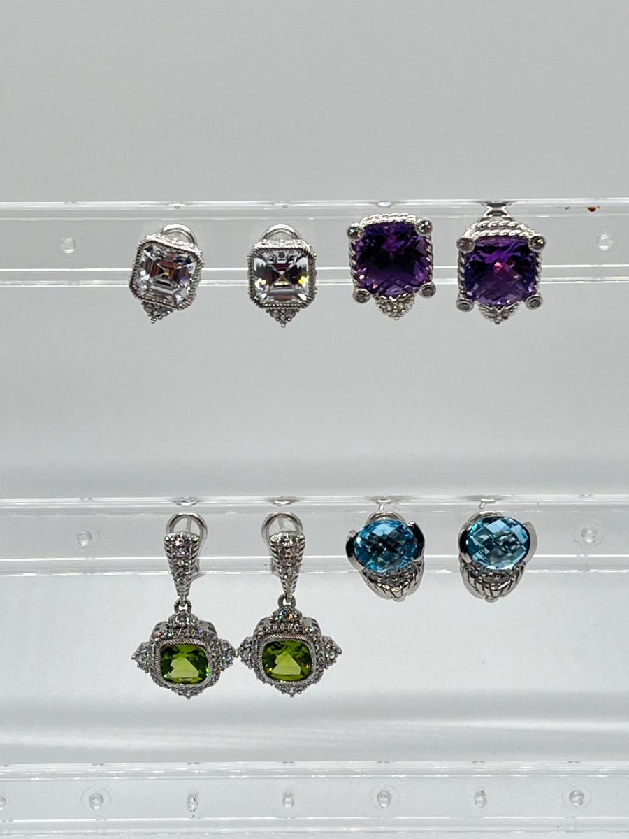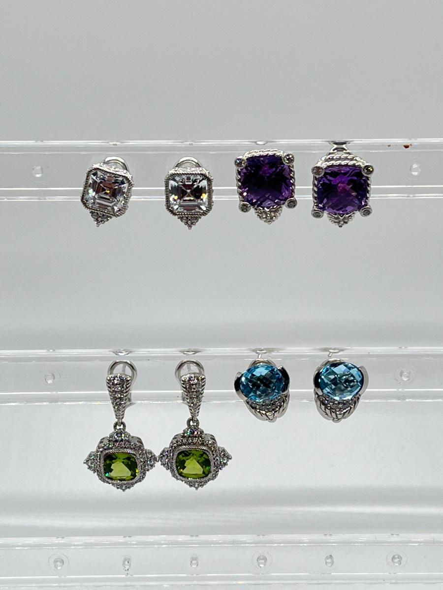 LOT 56: Judith Ripka Sterling Silver & CZ Pierced Earrings - Amethyst, Peridot, Blue Topaz and Crystal