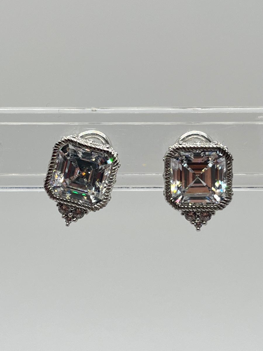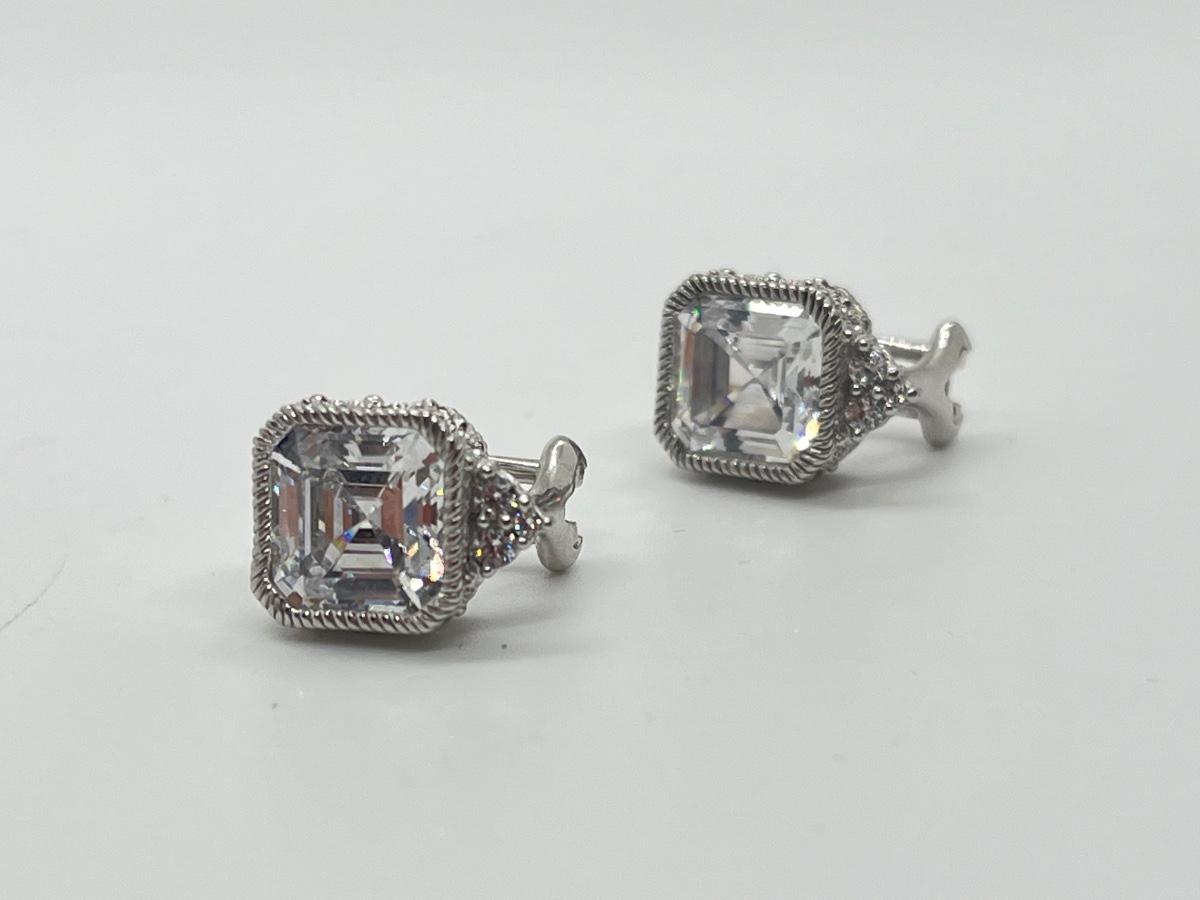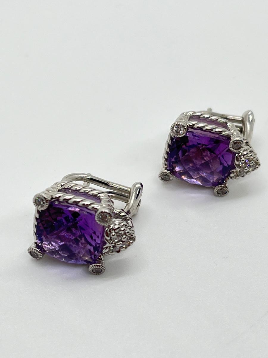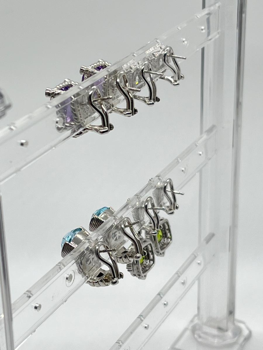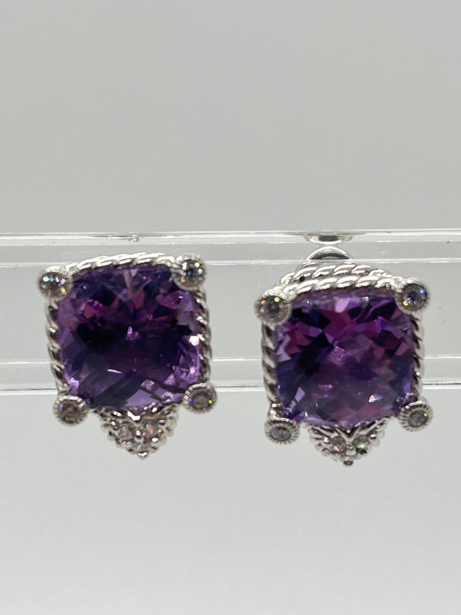 LOT 56: Judith Ripka Sterling Silver & CZ Pierced Earrings - Amethyst, Peridot, Blue Topaz and Crystal