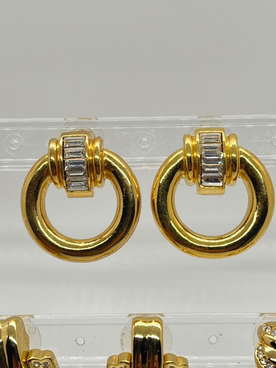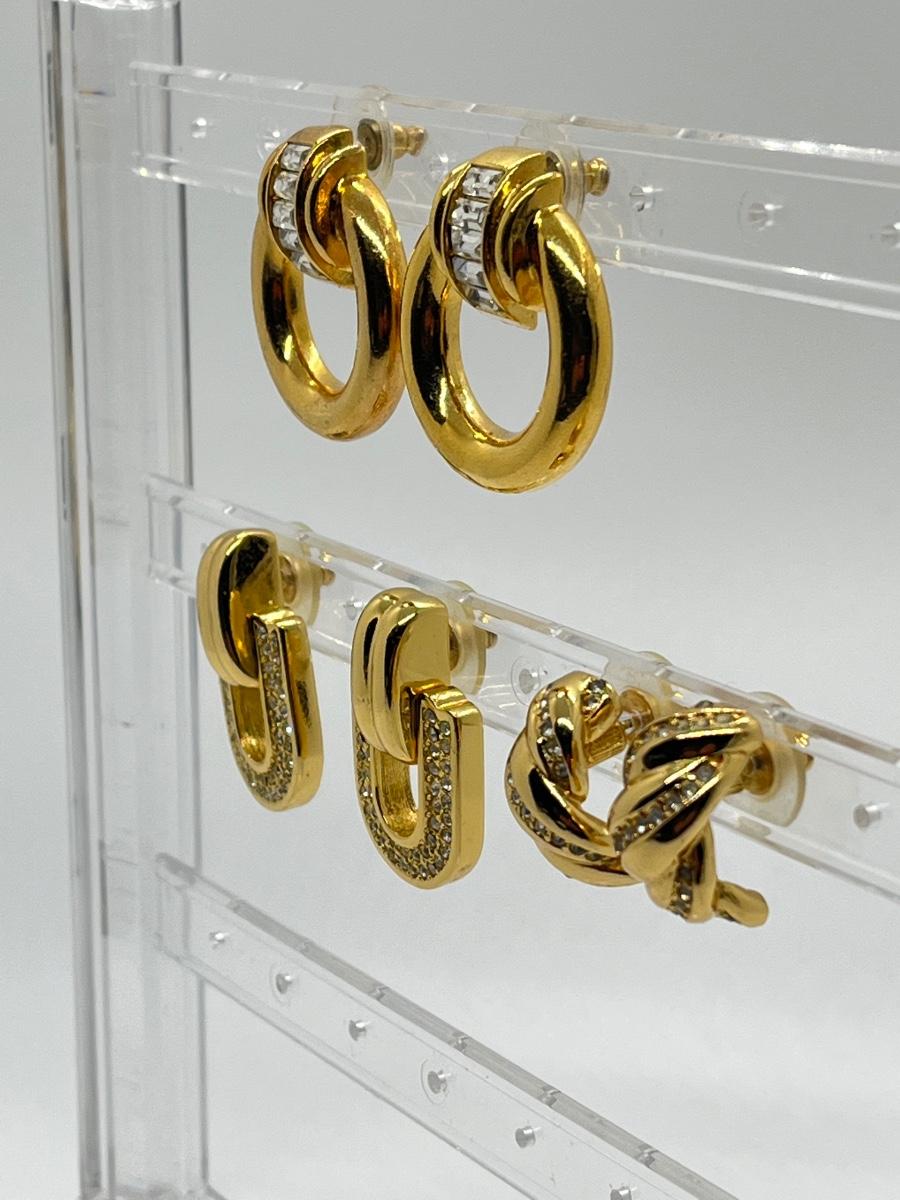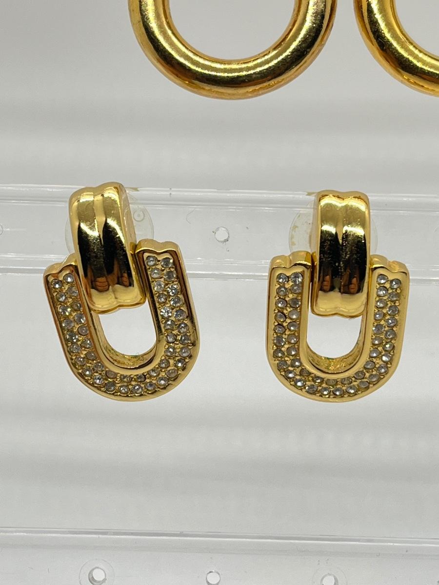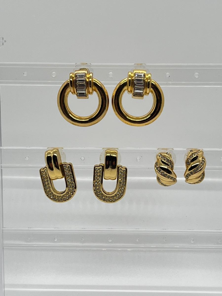 LOT 69: Goldtone & Crystal Pierced Earrings, 3 Pairs