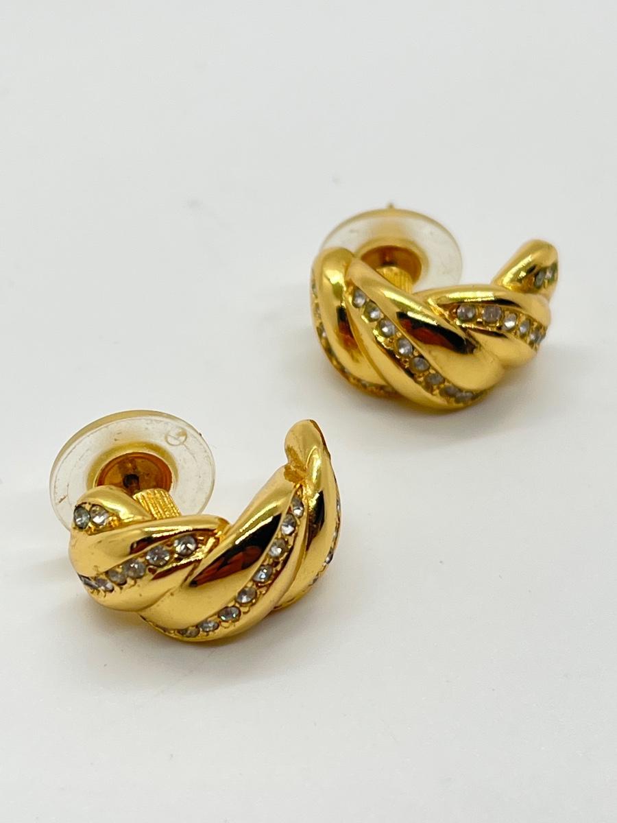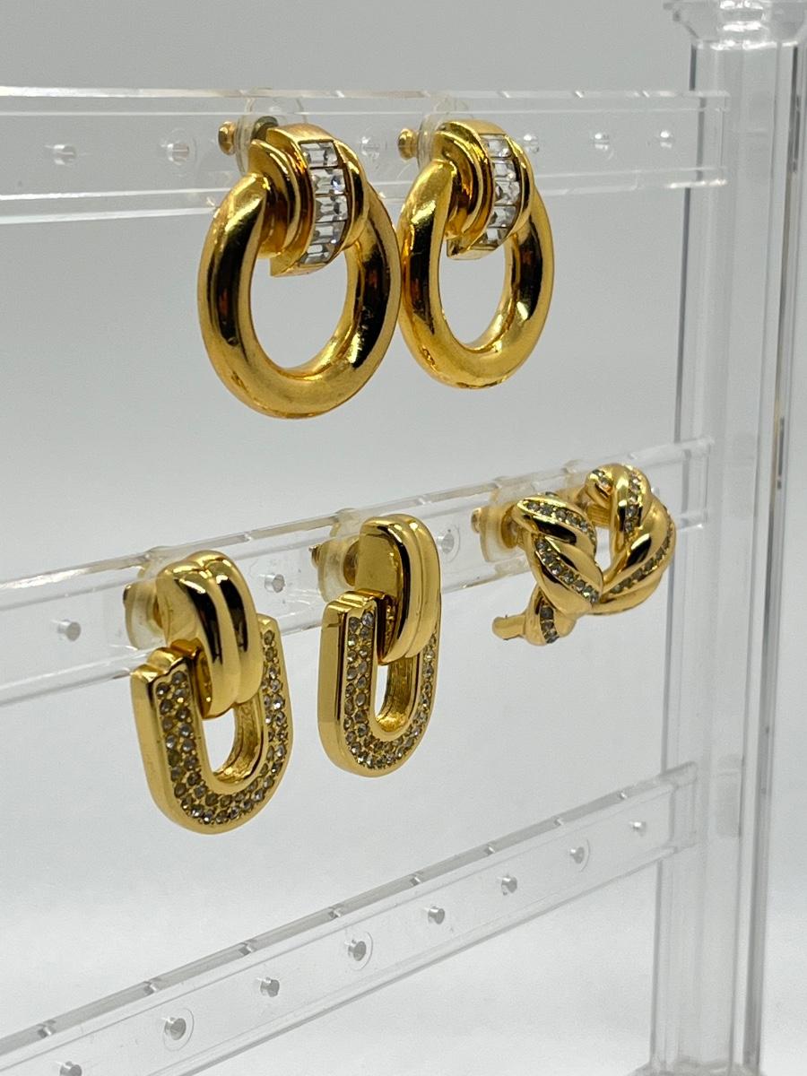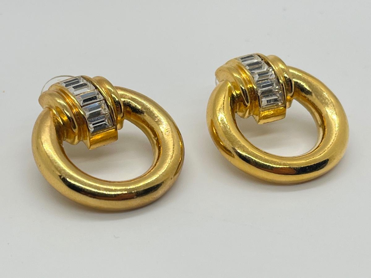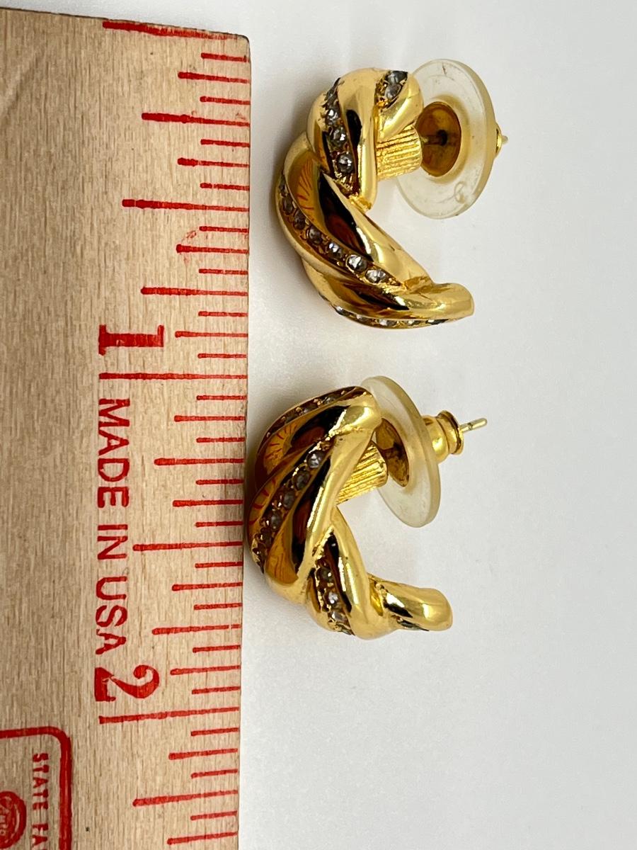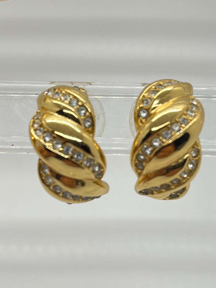 LOT 69: Goldtone & Crystal Pierced Earrings, 3 Pairs