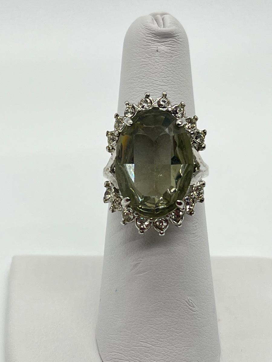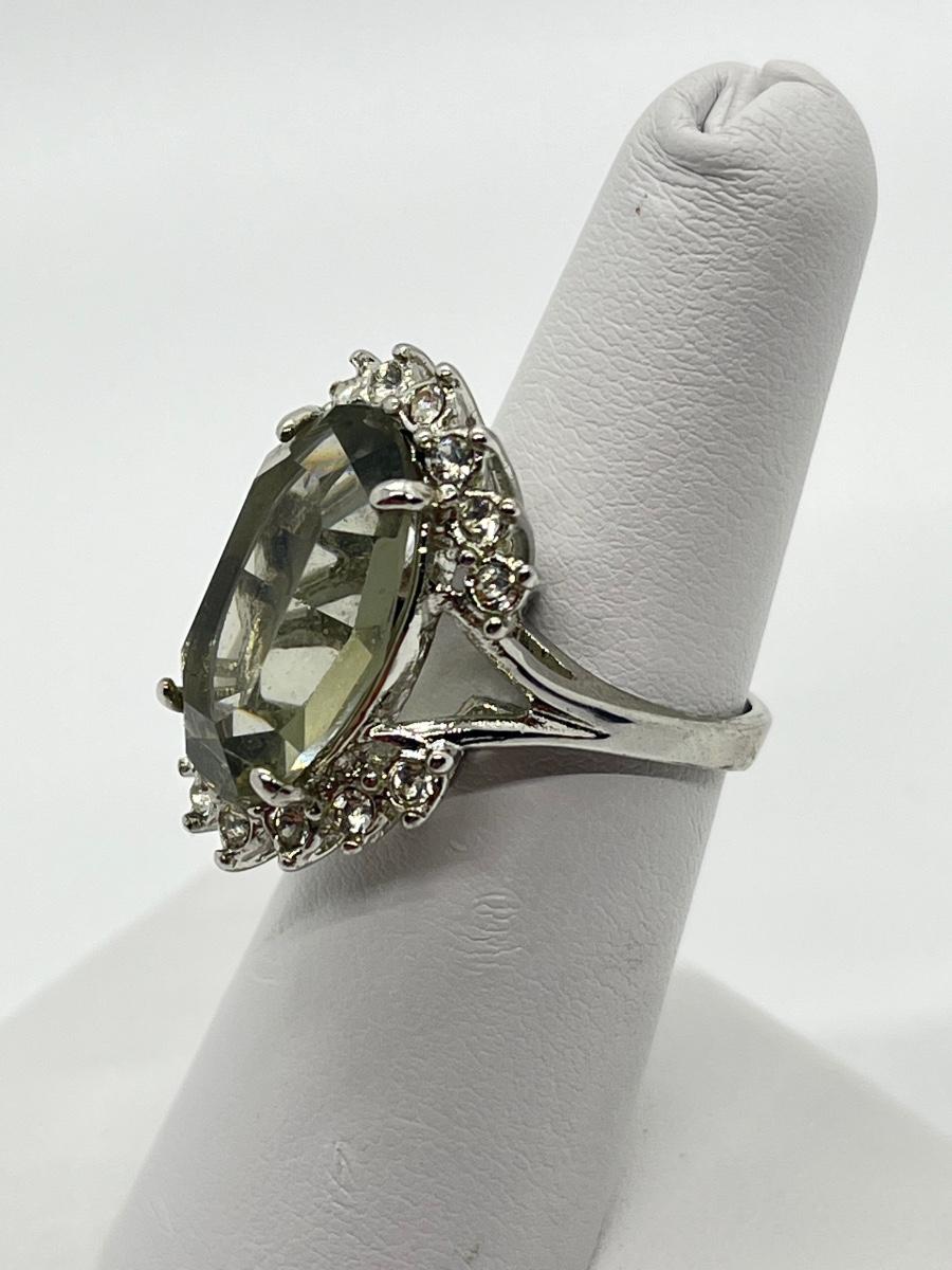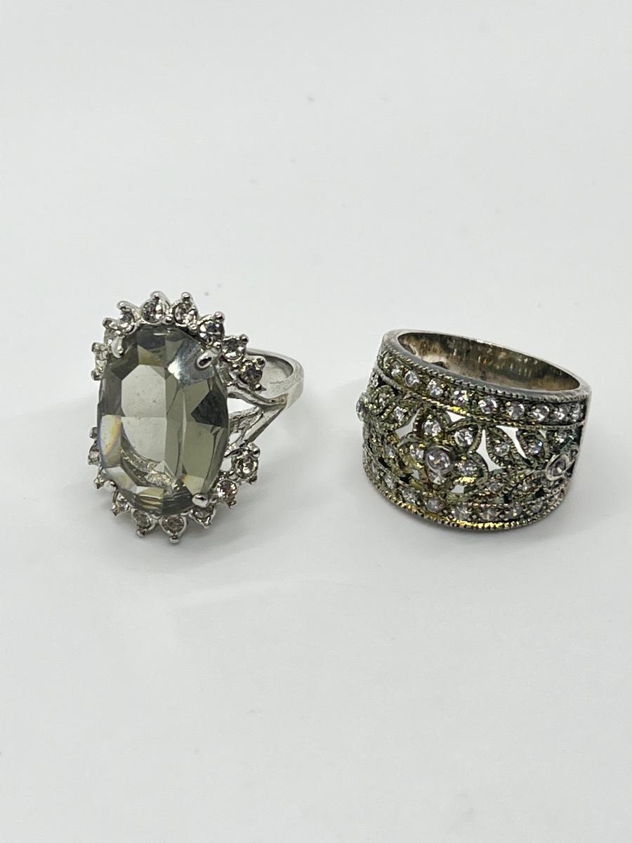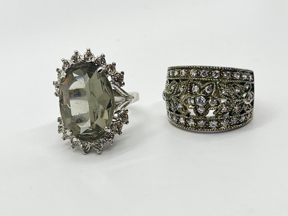 LOT 70: Sterling Silver Rings - Size 7 - 1 Champagne CZ - 1 Green Amethyst & CZ