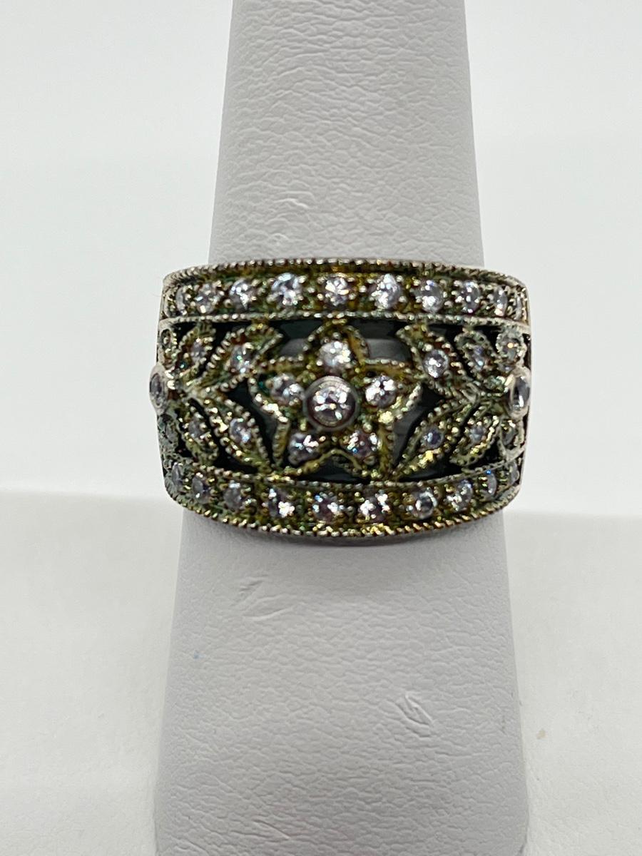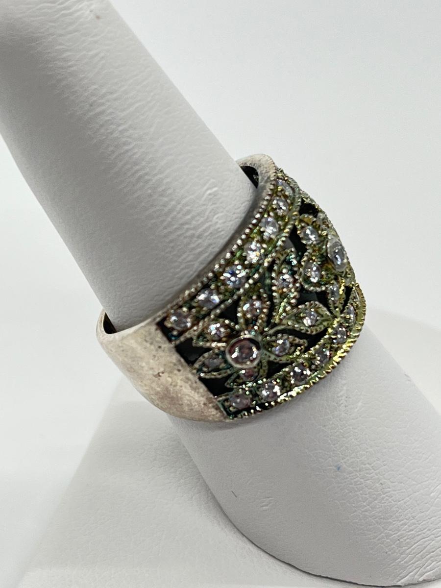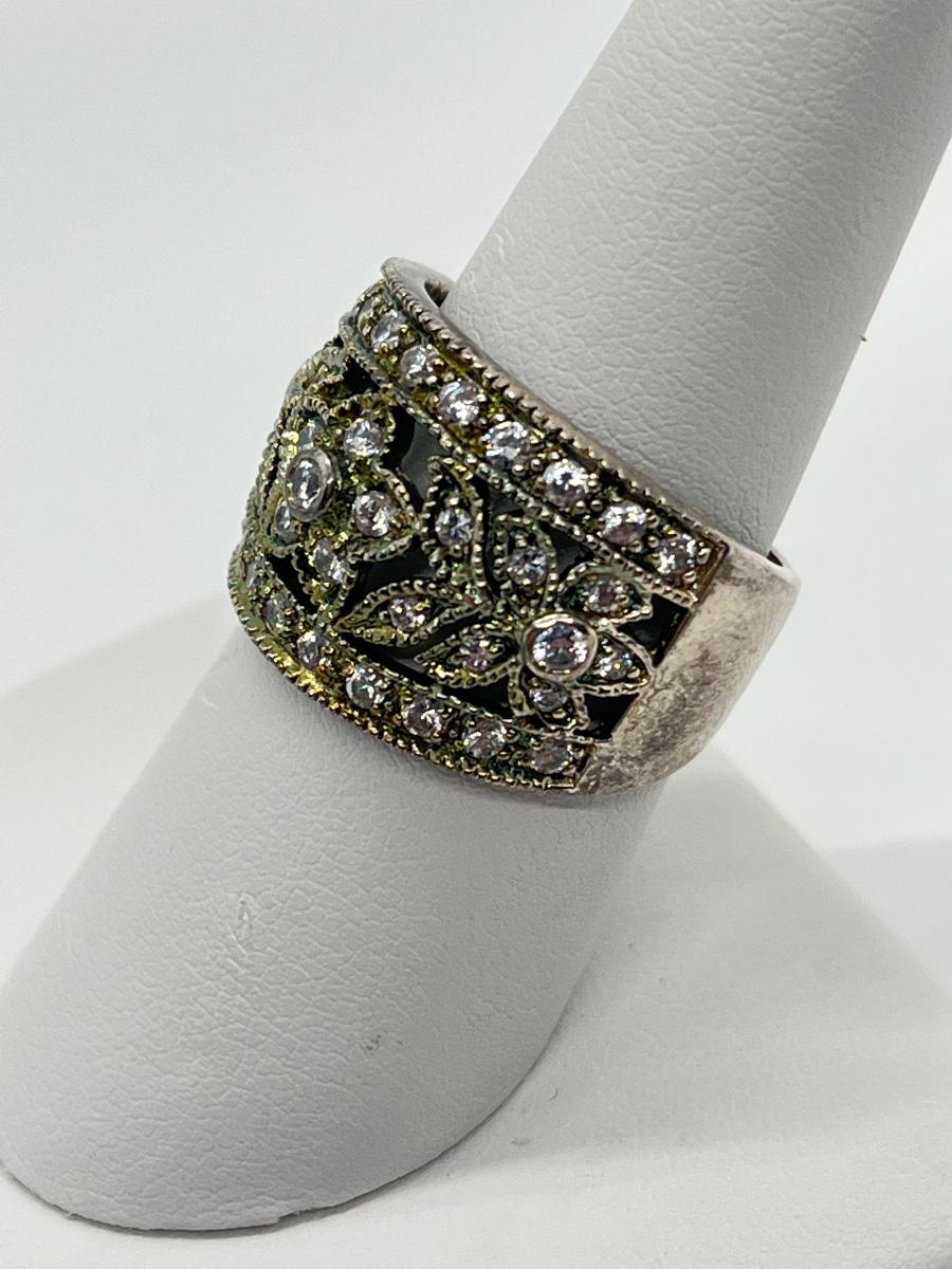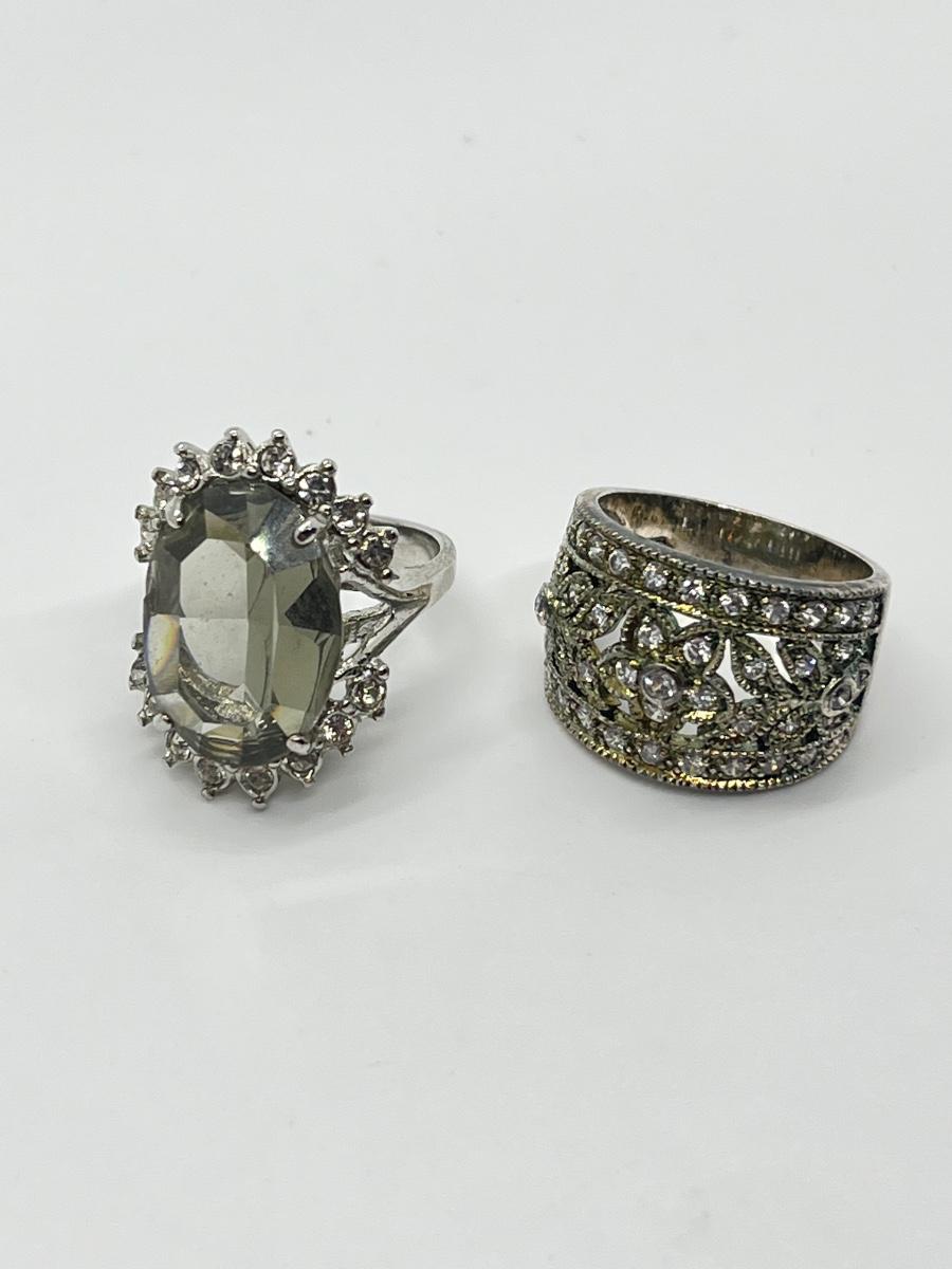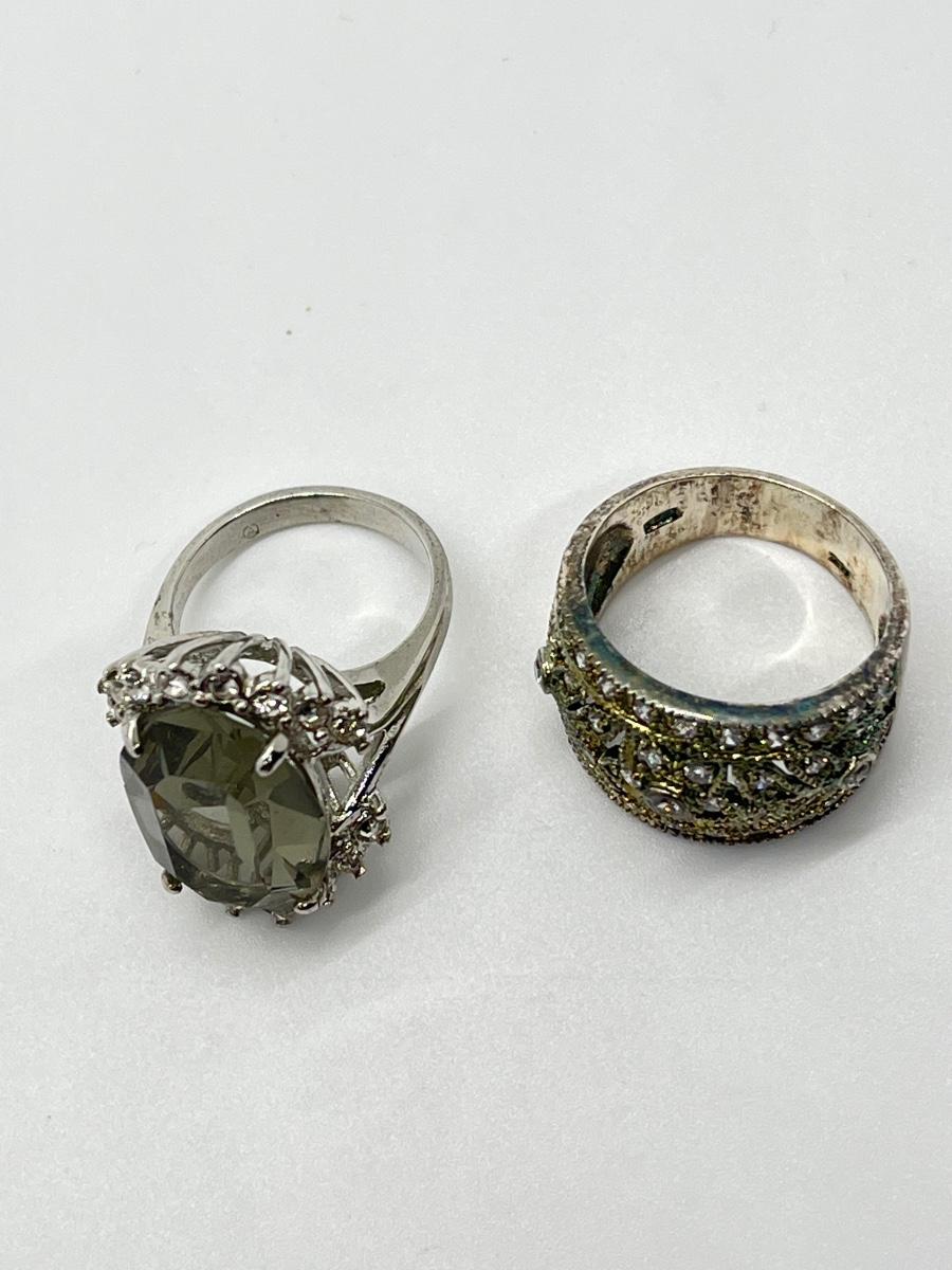 LOT 70: Sterling Silver Rings - Size 7 - 1 Champagne CZ - 1 Green Amethyst & CZ