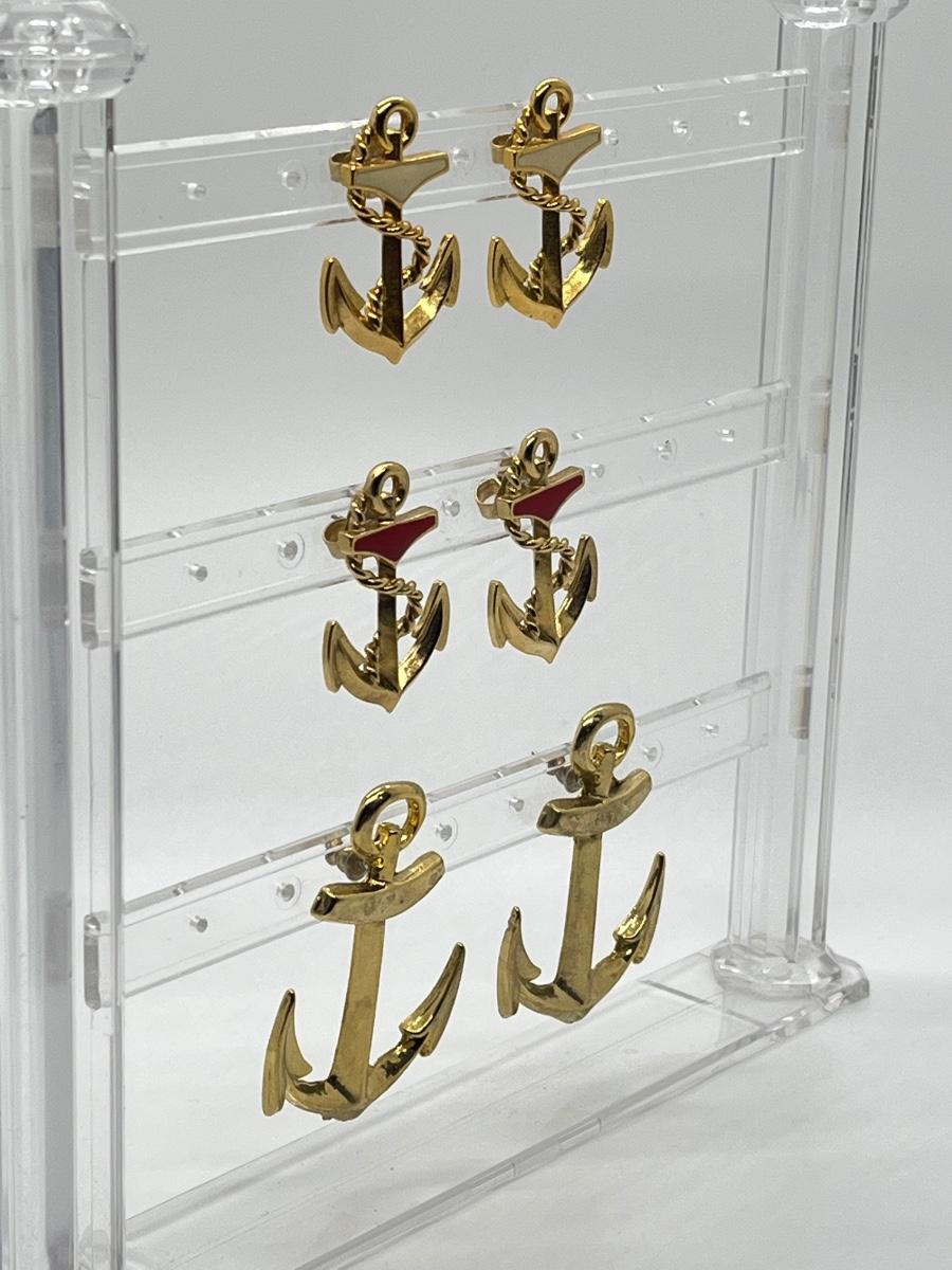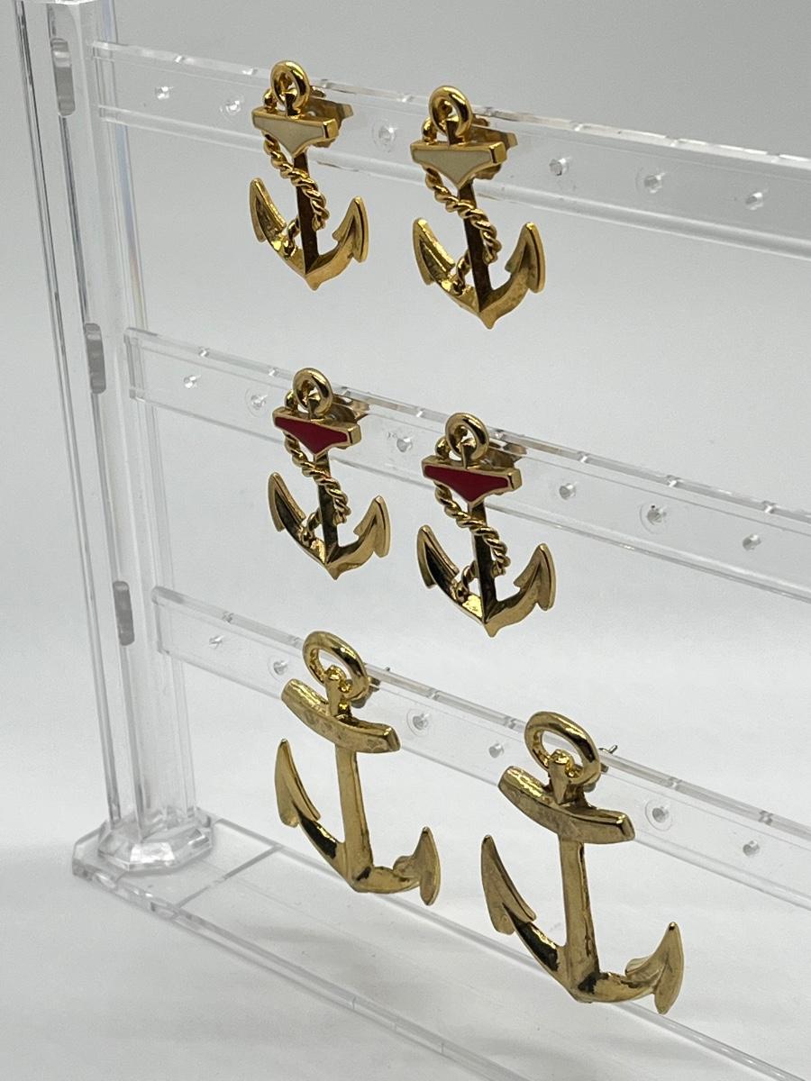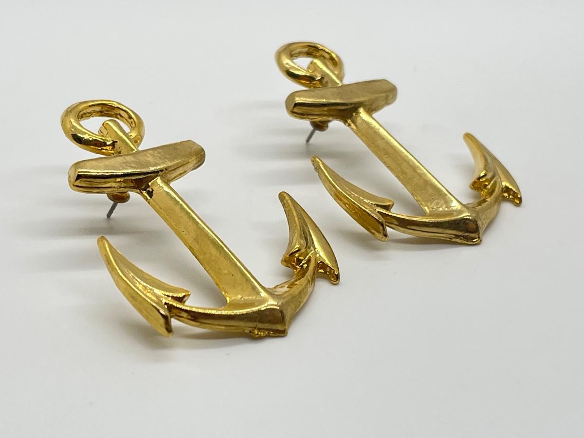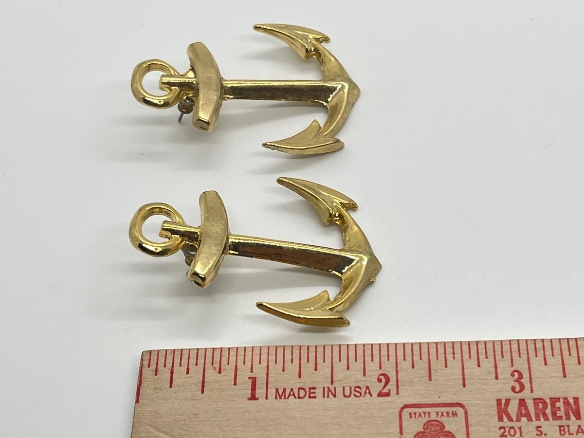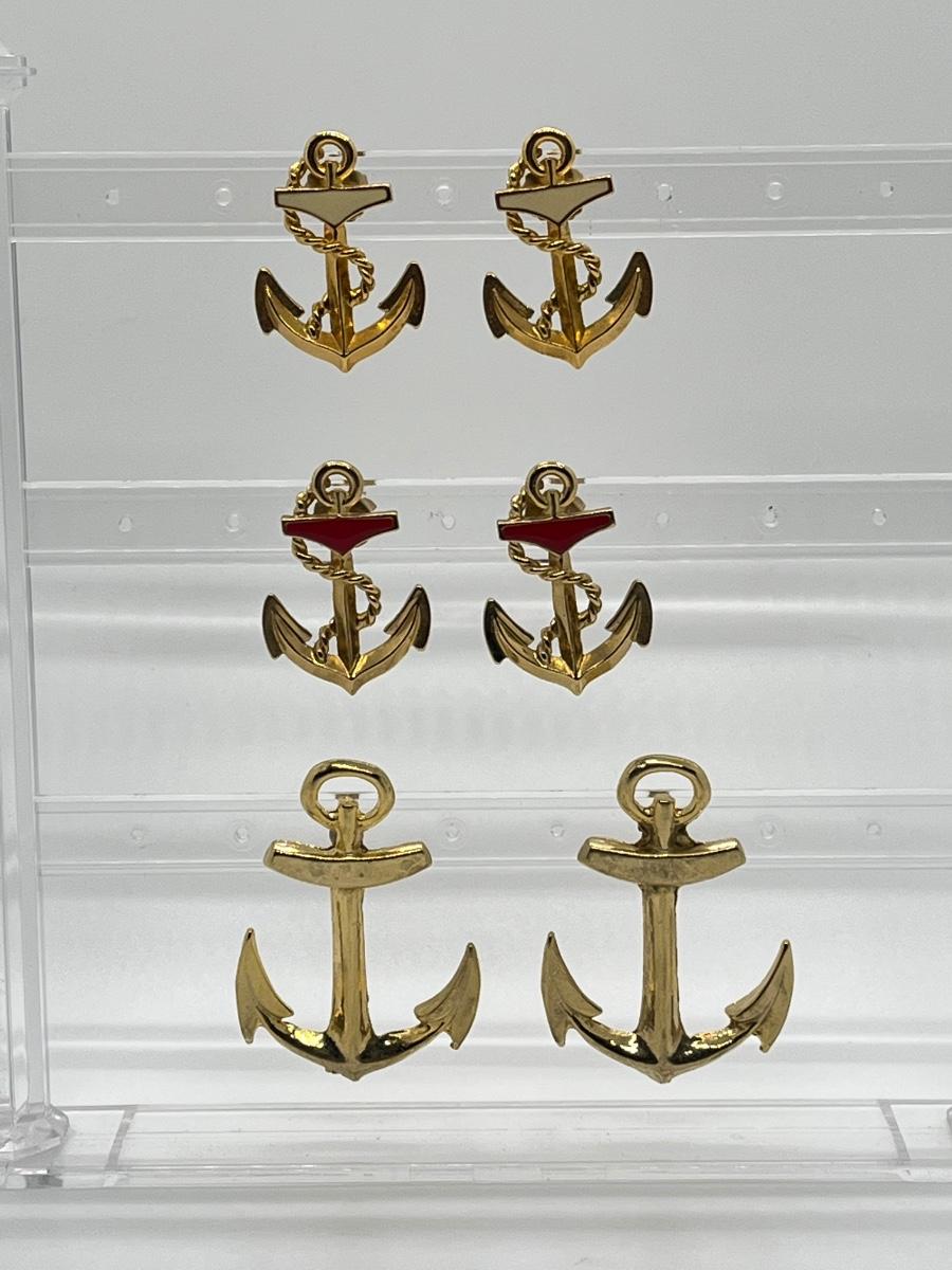 LOT 72: Anchor Design Pierced Goldtone Earrings, 3 Pairs