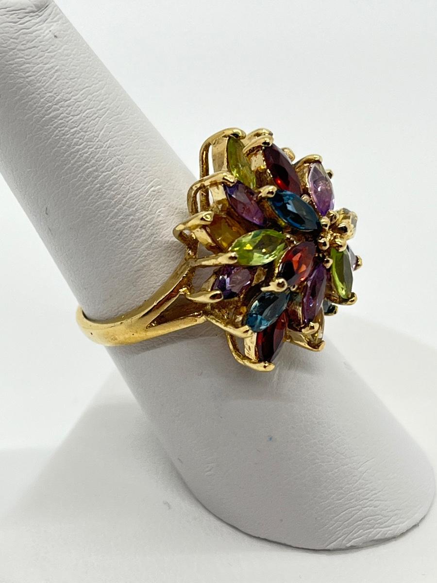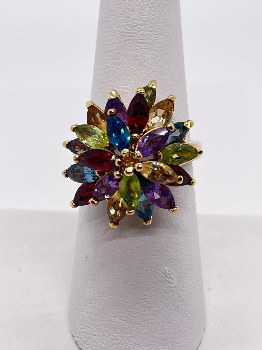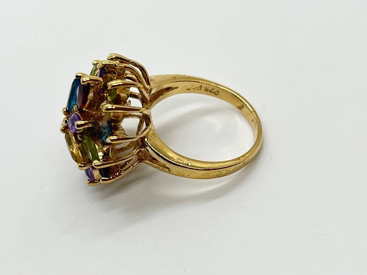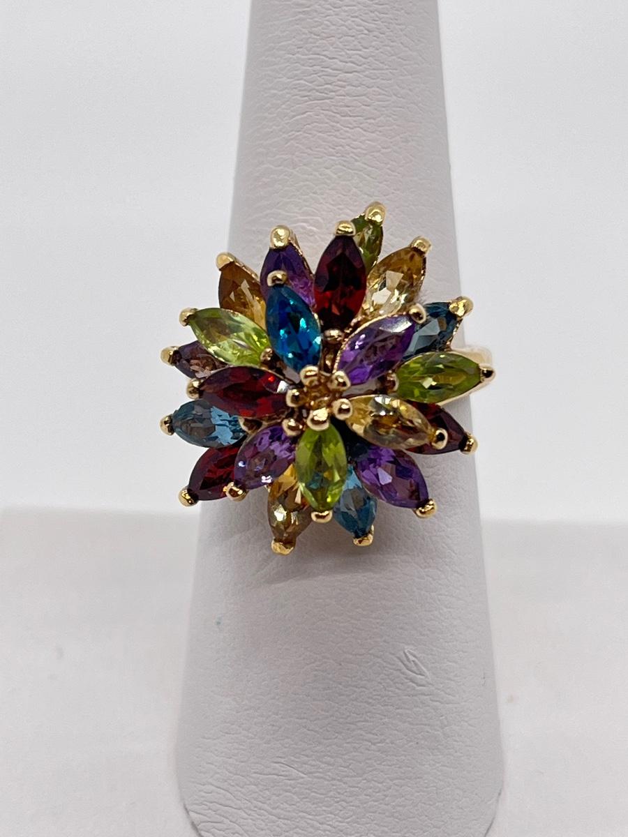LOT 76: Multi-Gemstone Gold Vermeil Sterling Silver Cocktail Ring - Size 7
