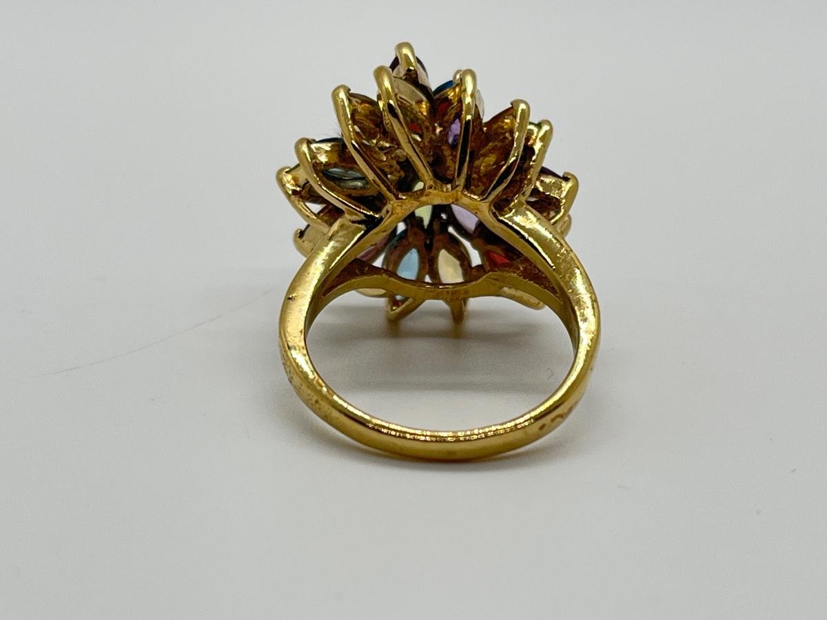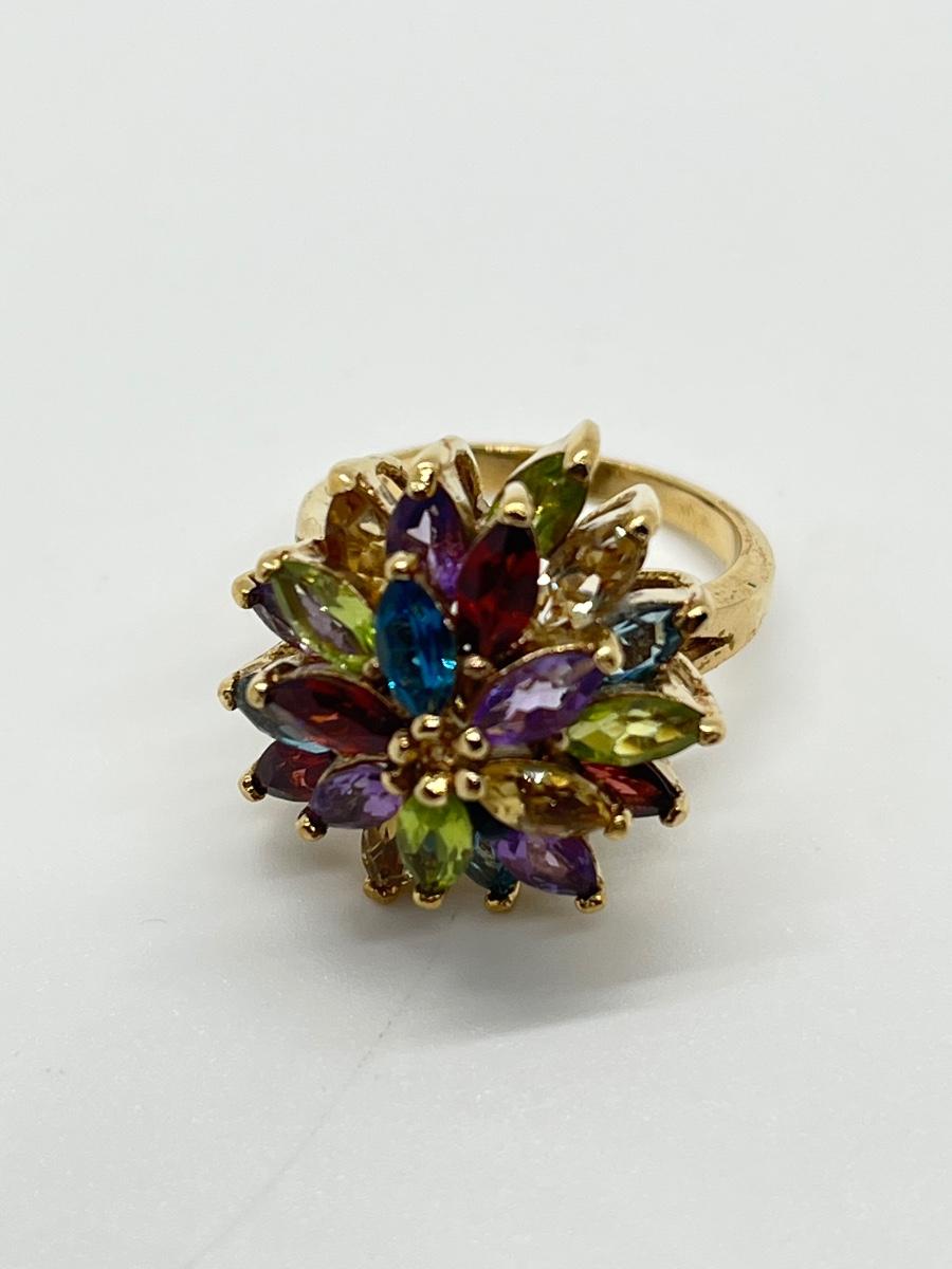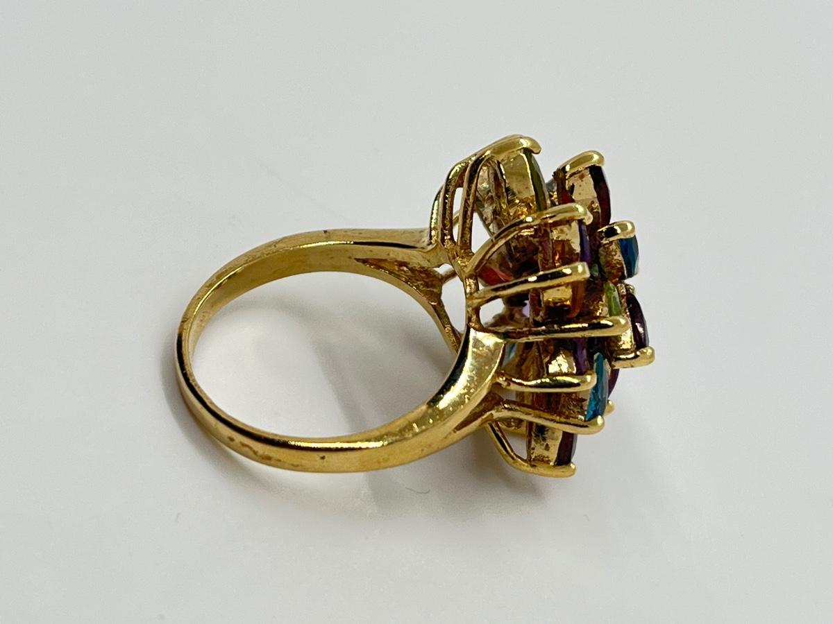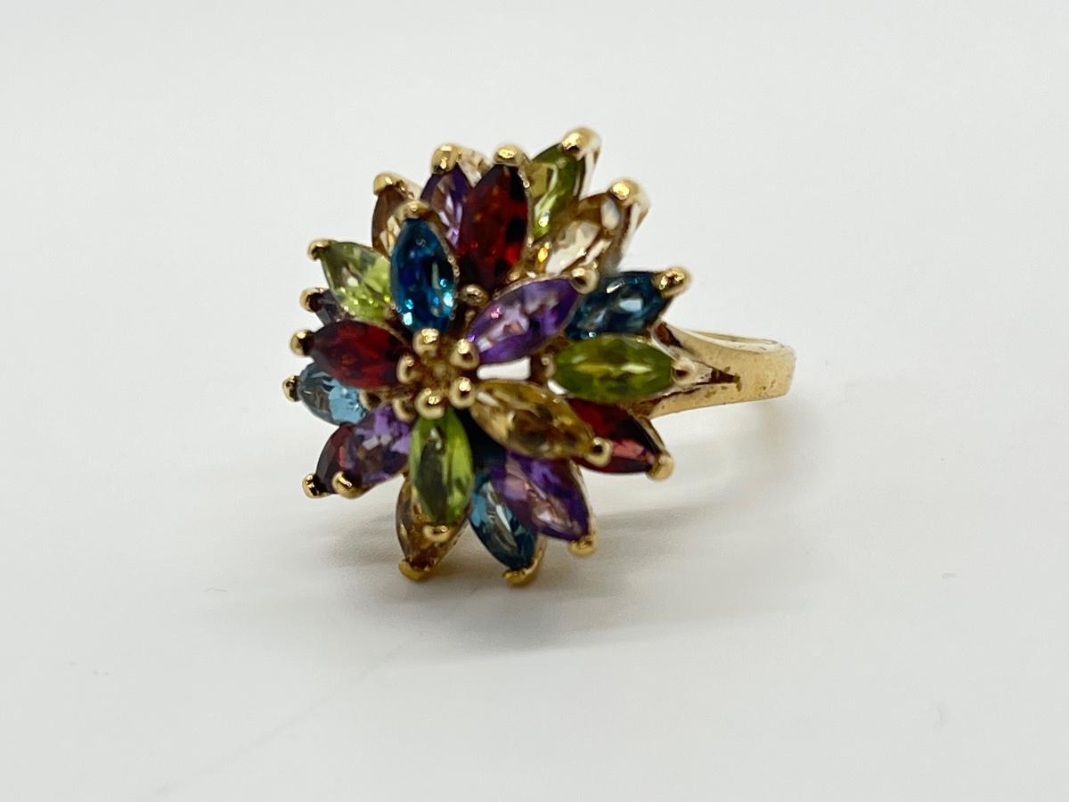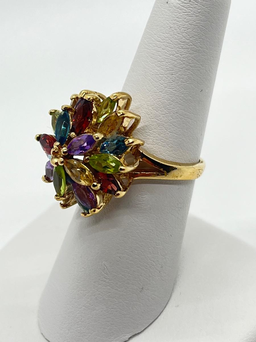 LOT 76: Multi-Gemstone Gold Vermeil Sterling Silver Cocktail Ring - Size 7