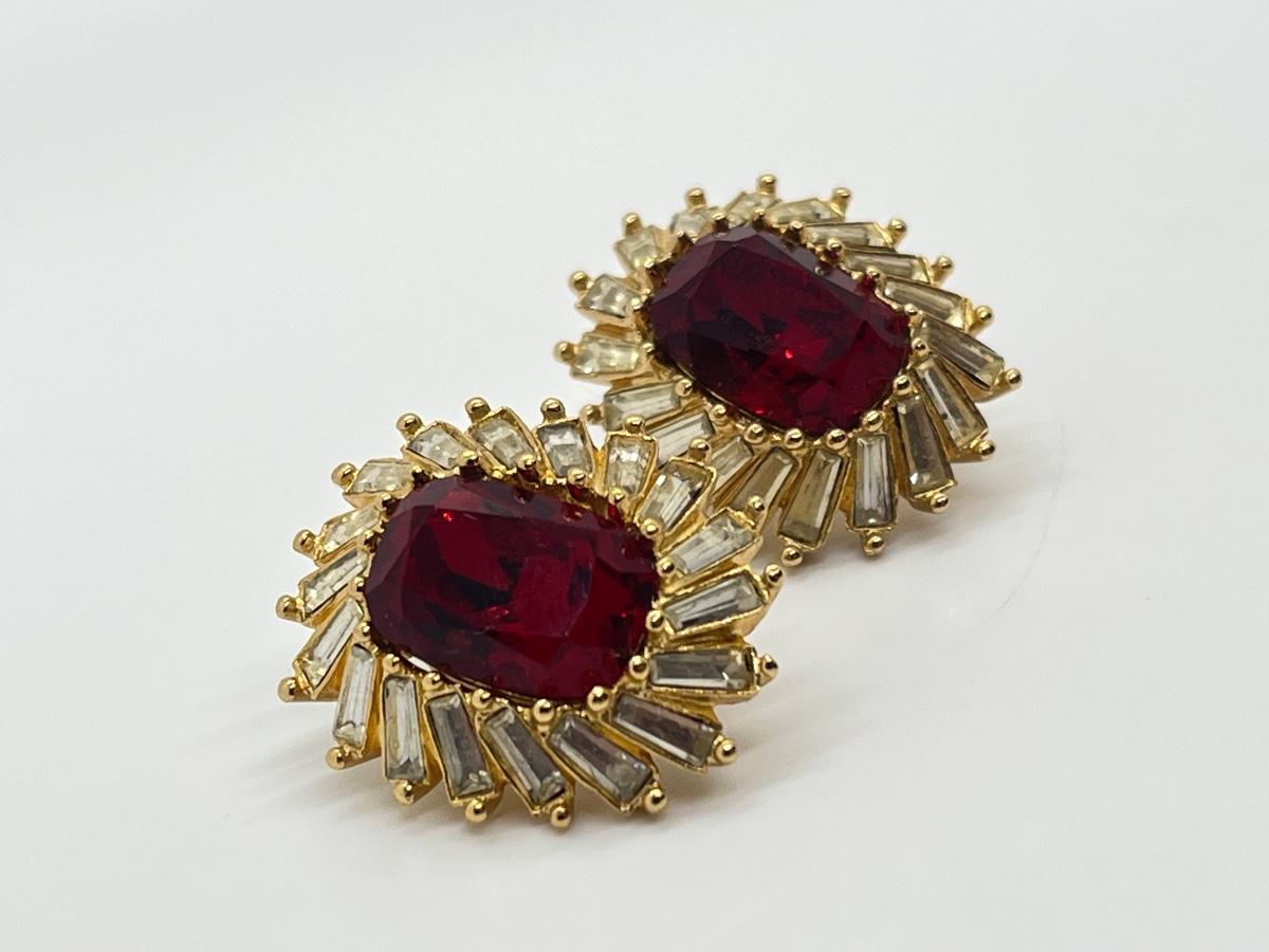 LOT 78: Large CHRISTIAN DIOR Simulated Garnet w/Zirconia Baguettes & 925 Sterling Silver w/Simulated Ruby & Crystal