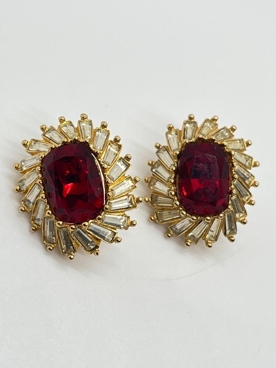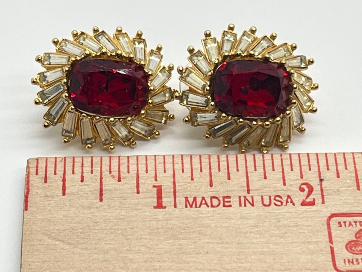 LOT 78: Large CHRISTIAN DIOR Simulated Garnet  w/Zirconia Baguettes & 925 Sterling Silver w/Simulated Ruby & Crystal