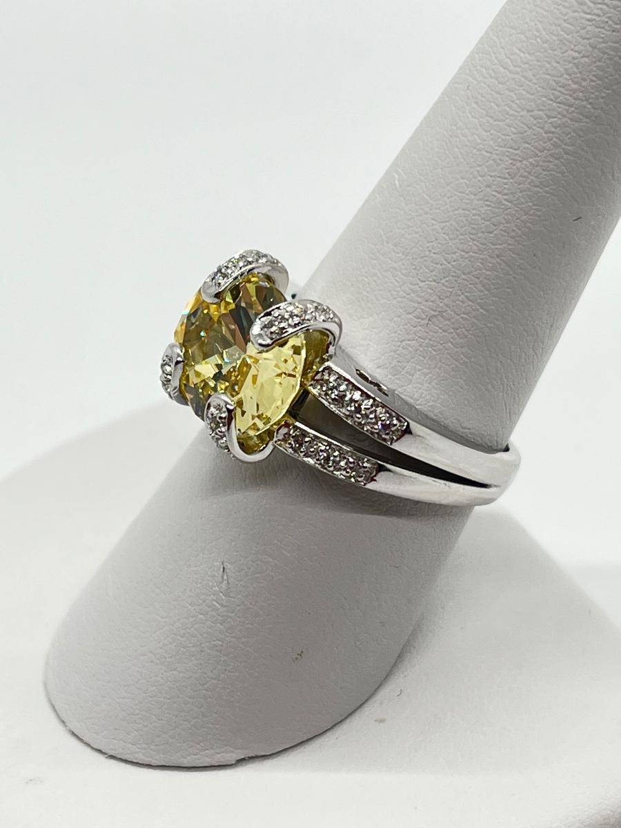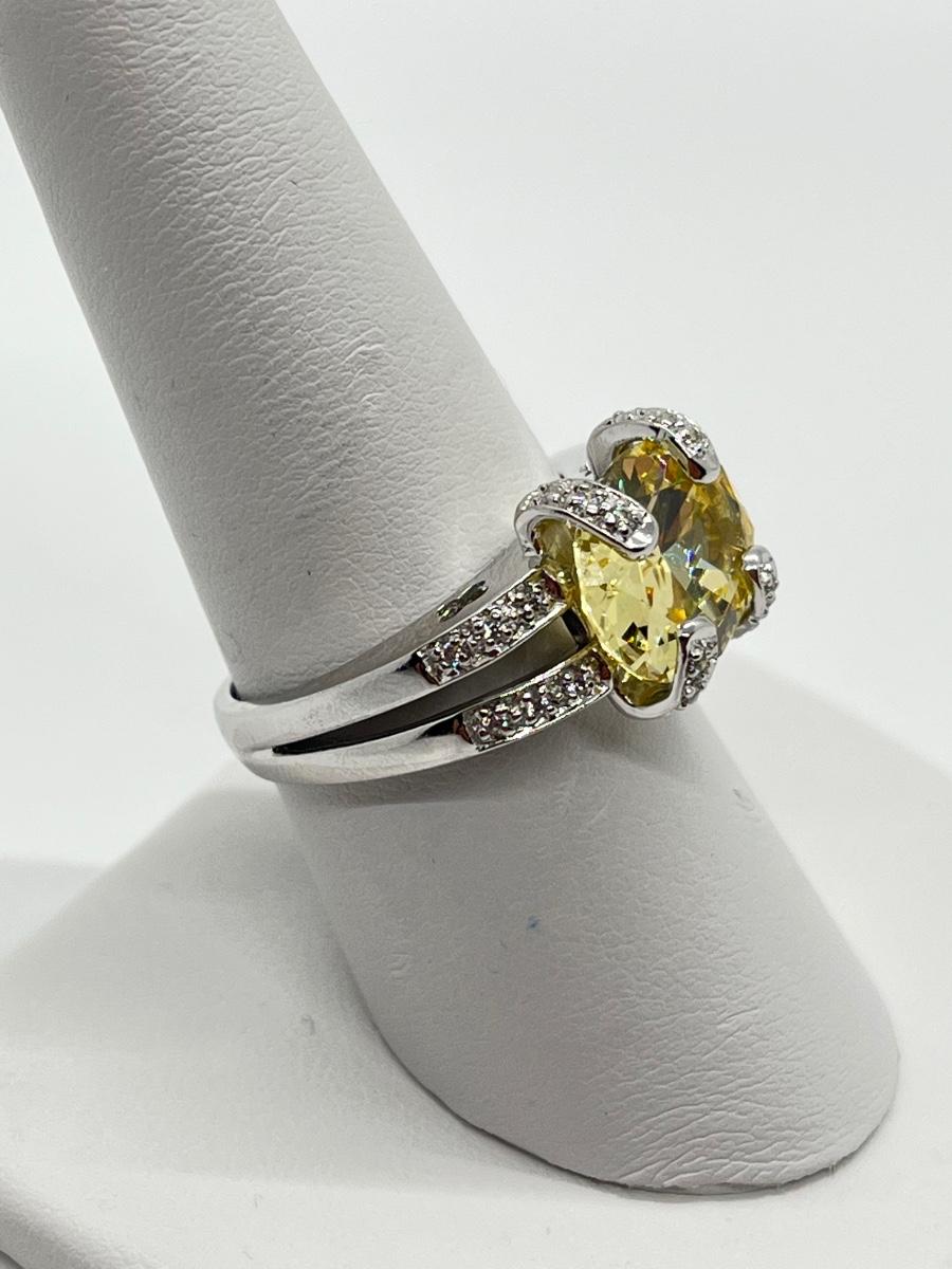 LOT 79: Sterling Silver Rings: Citrine & CZ - sz7
