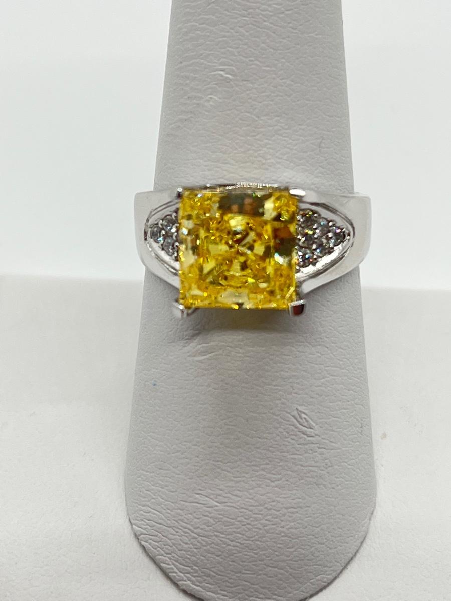 LOT 79:  Sterling Silver Rings: Citrine & CZ - sz7