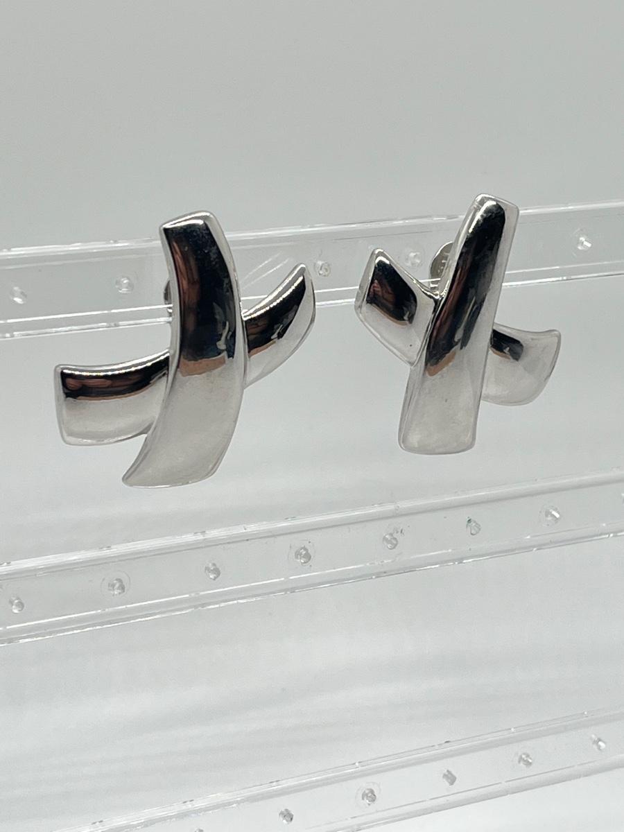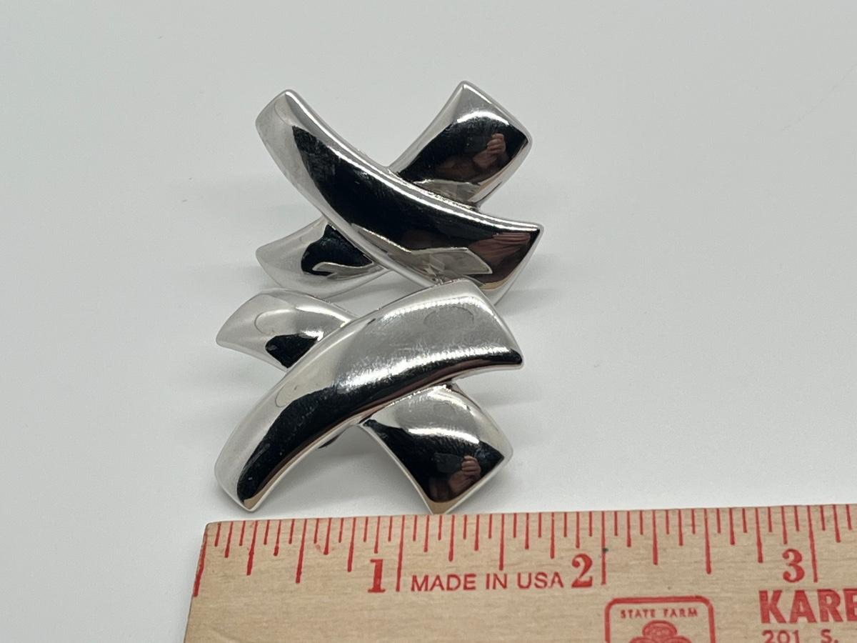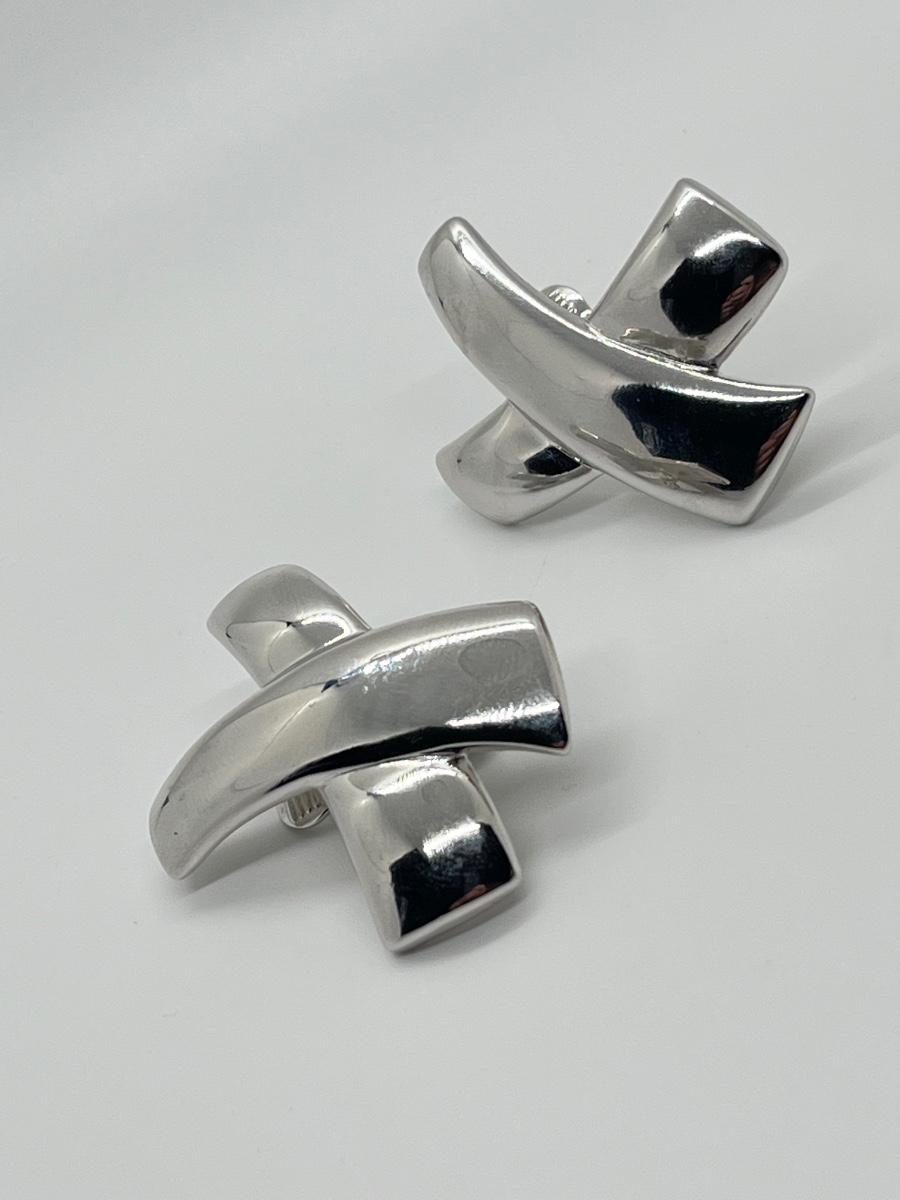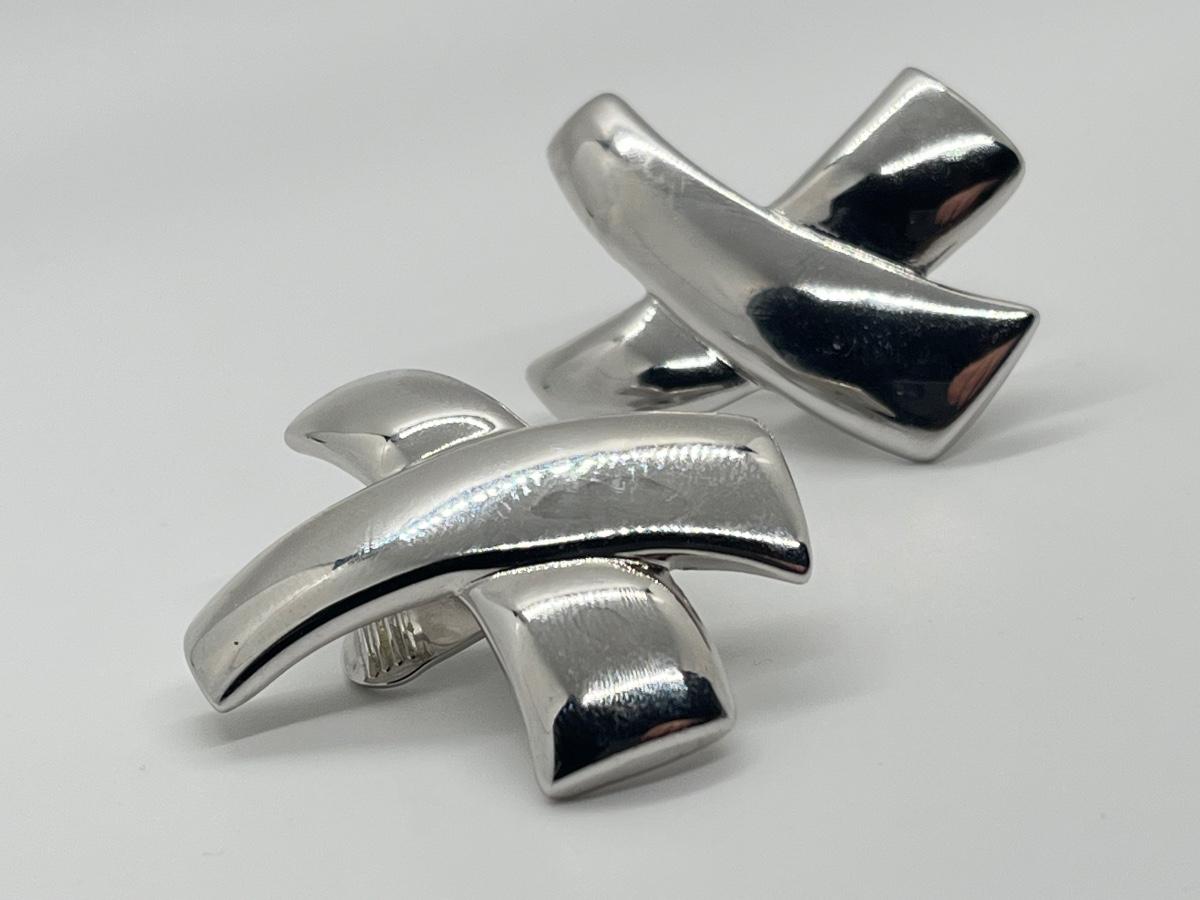 LOT 81: Large "X" Design Monet Silvertone Clip-On Earrings