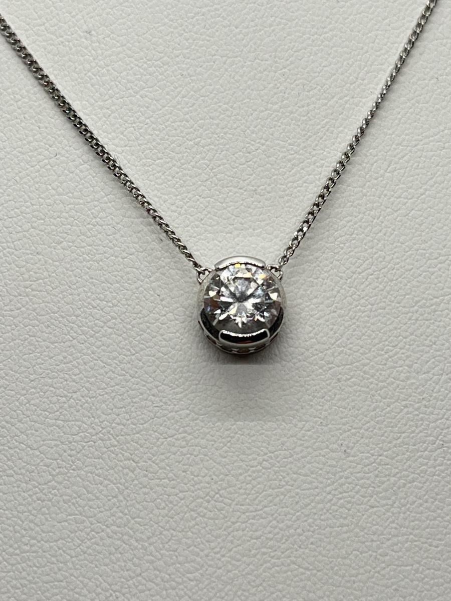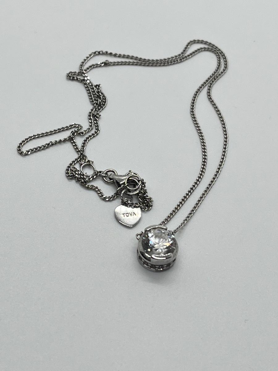 LOT 83: TOVA Sterling Silver CZ Solitaire Pendant on 20" Chain