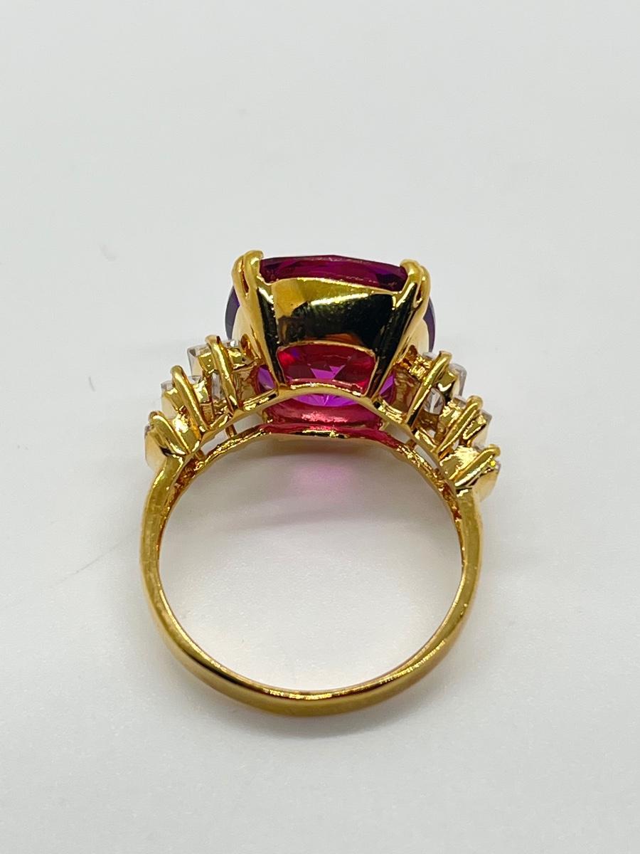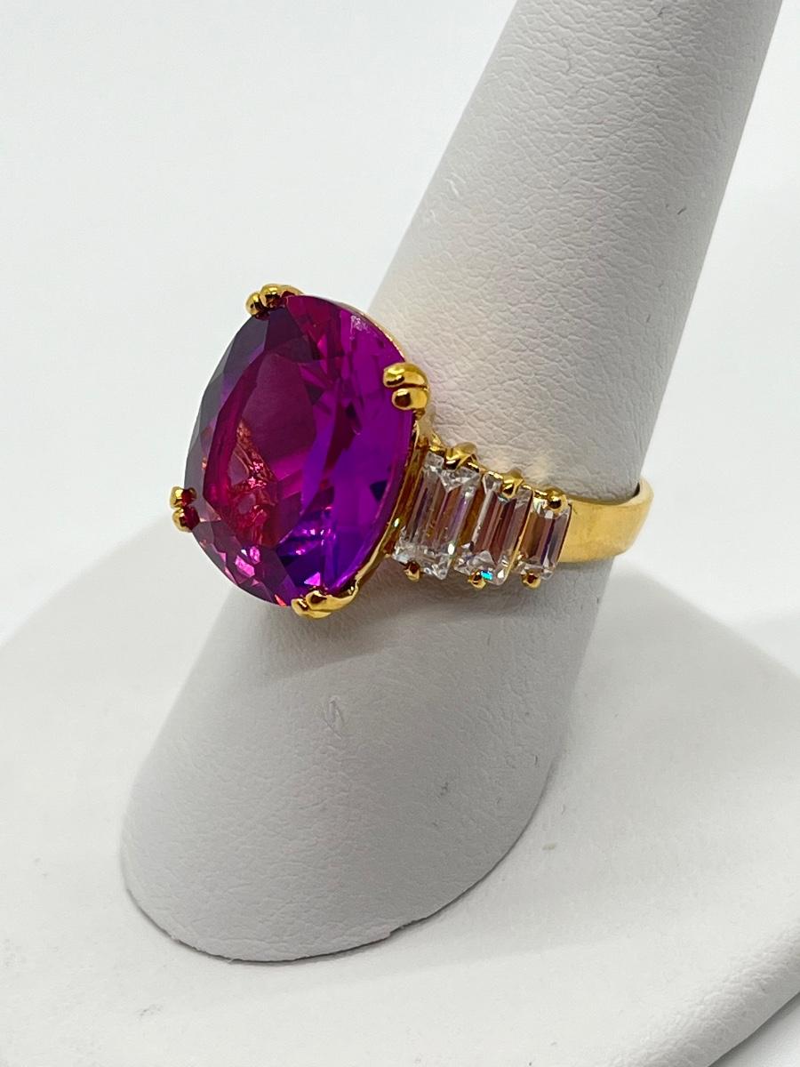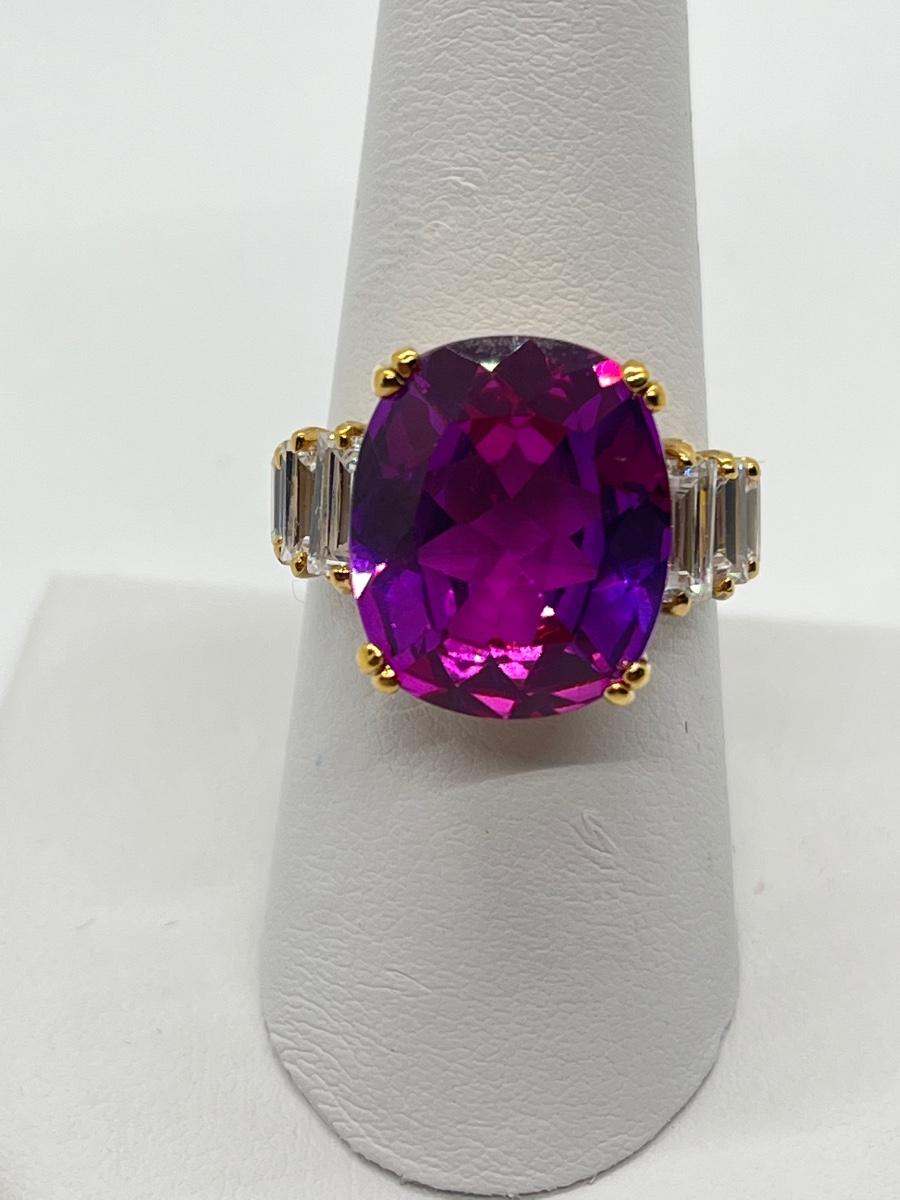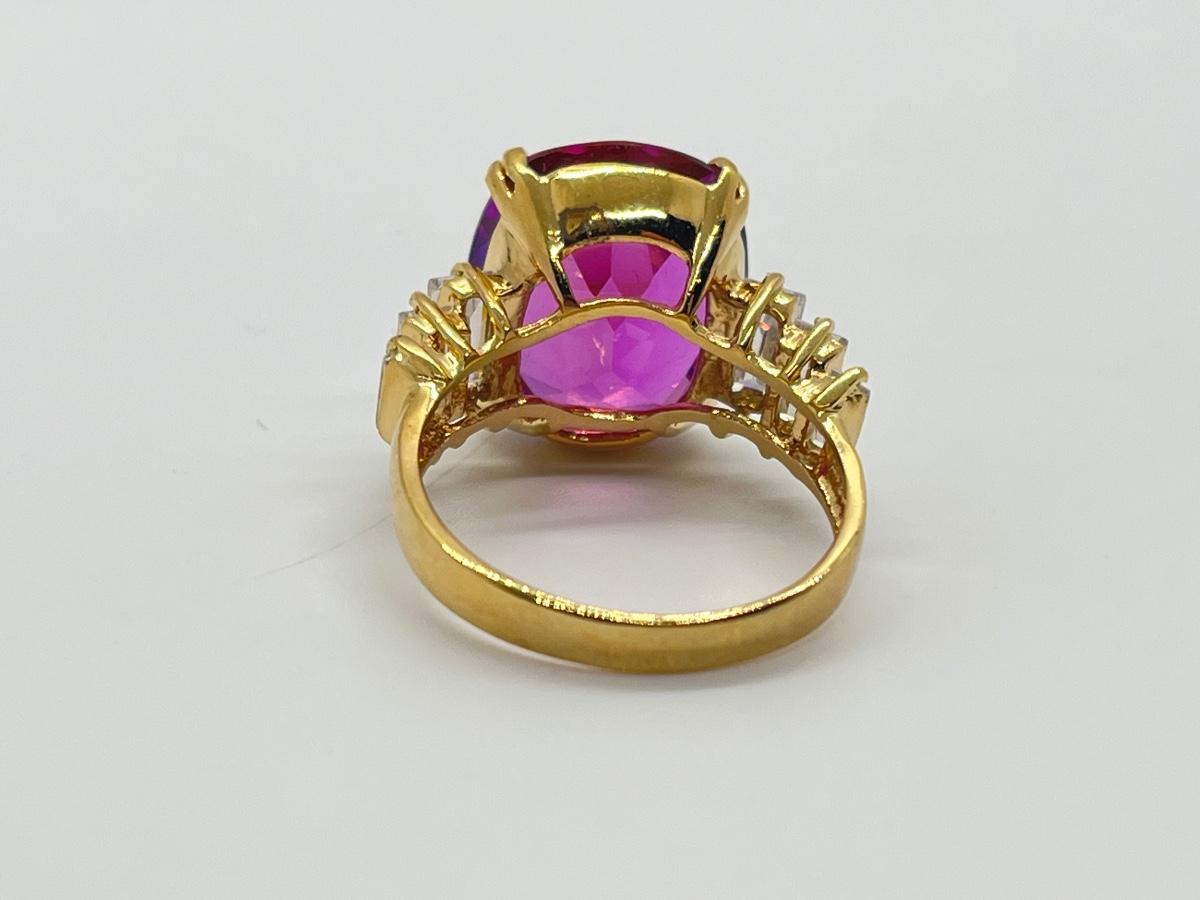 LOT 85: Gold Vermeil Sterling Large Pink Tourmaline & CZ accents sz7