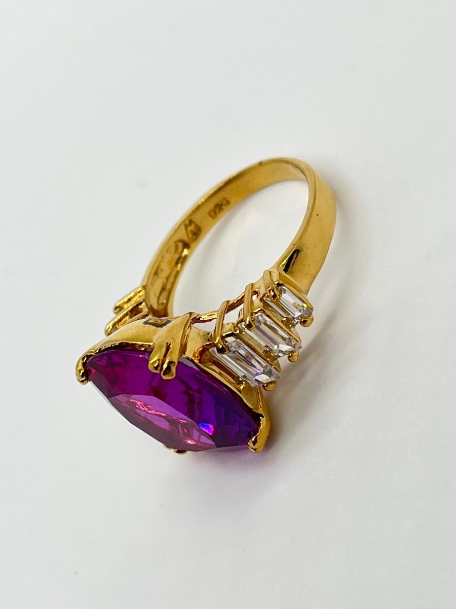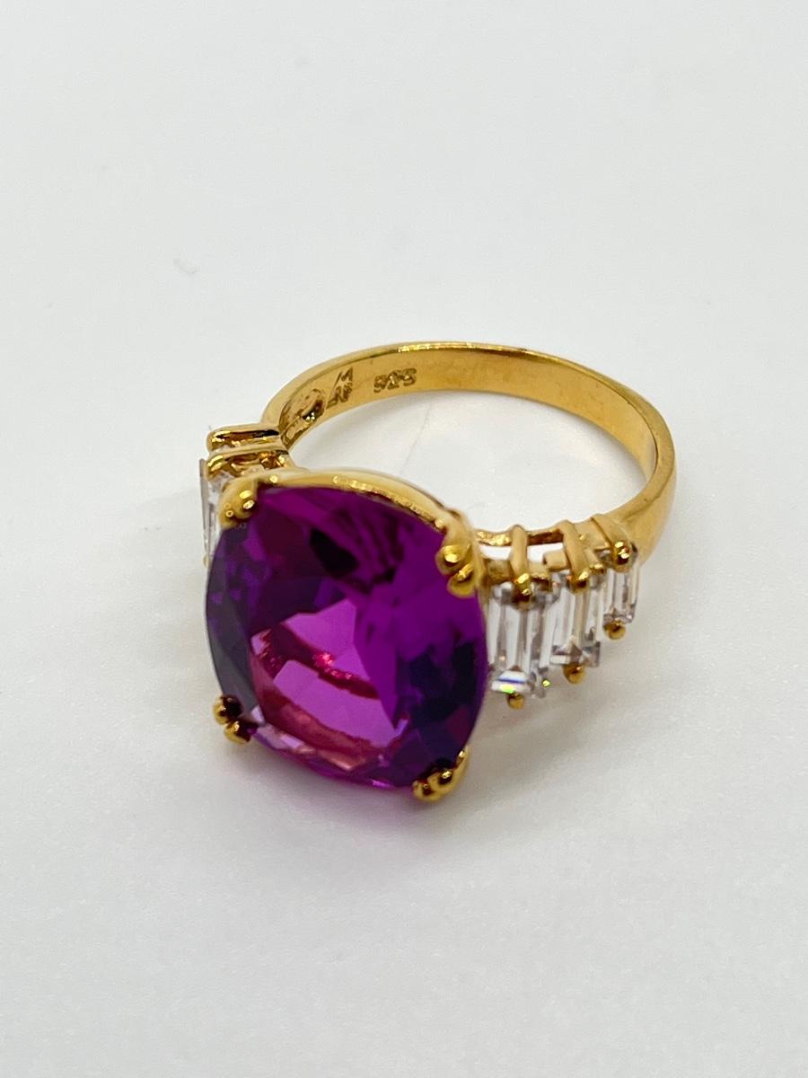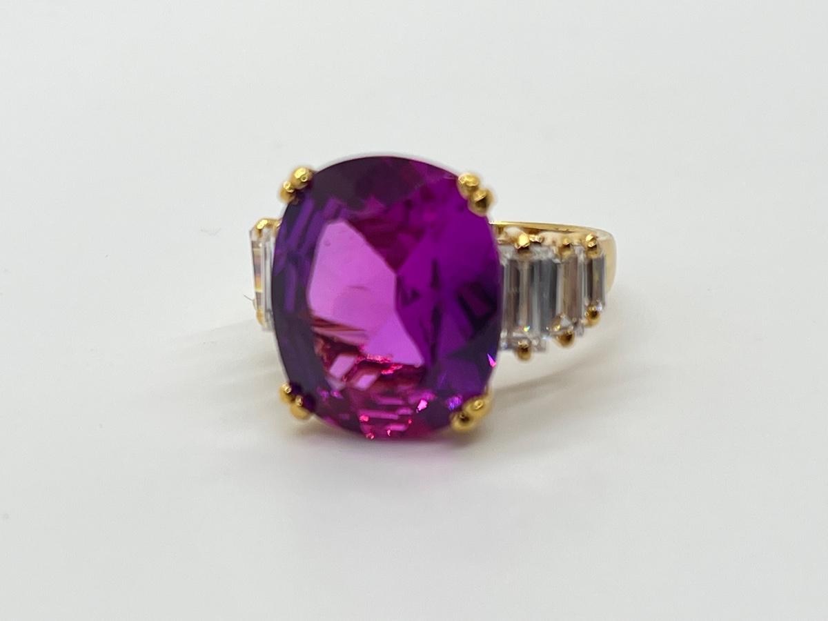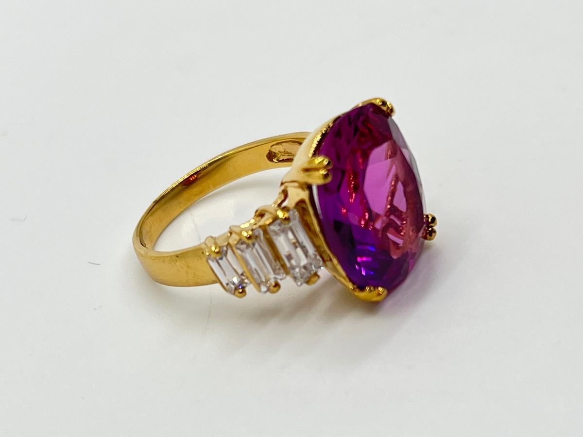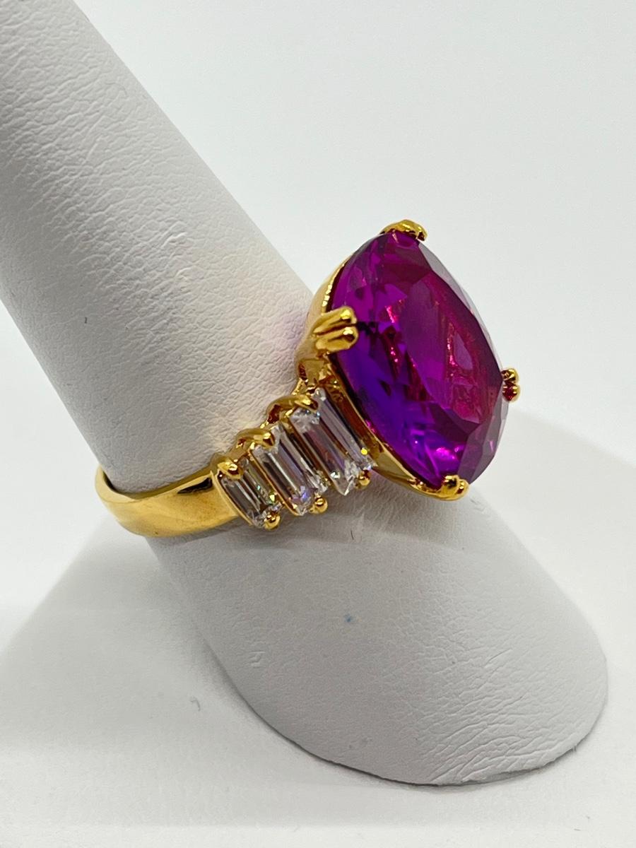 LOT 85: Gold Vermeil Sterling Large Pink Tourmaline & CZ accents sz7