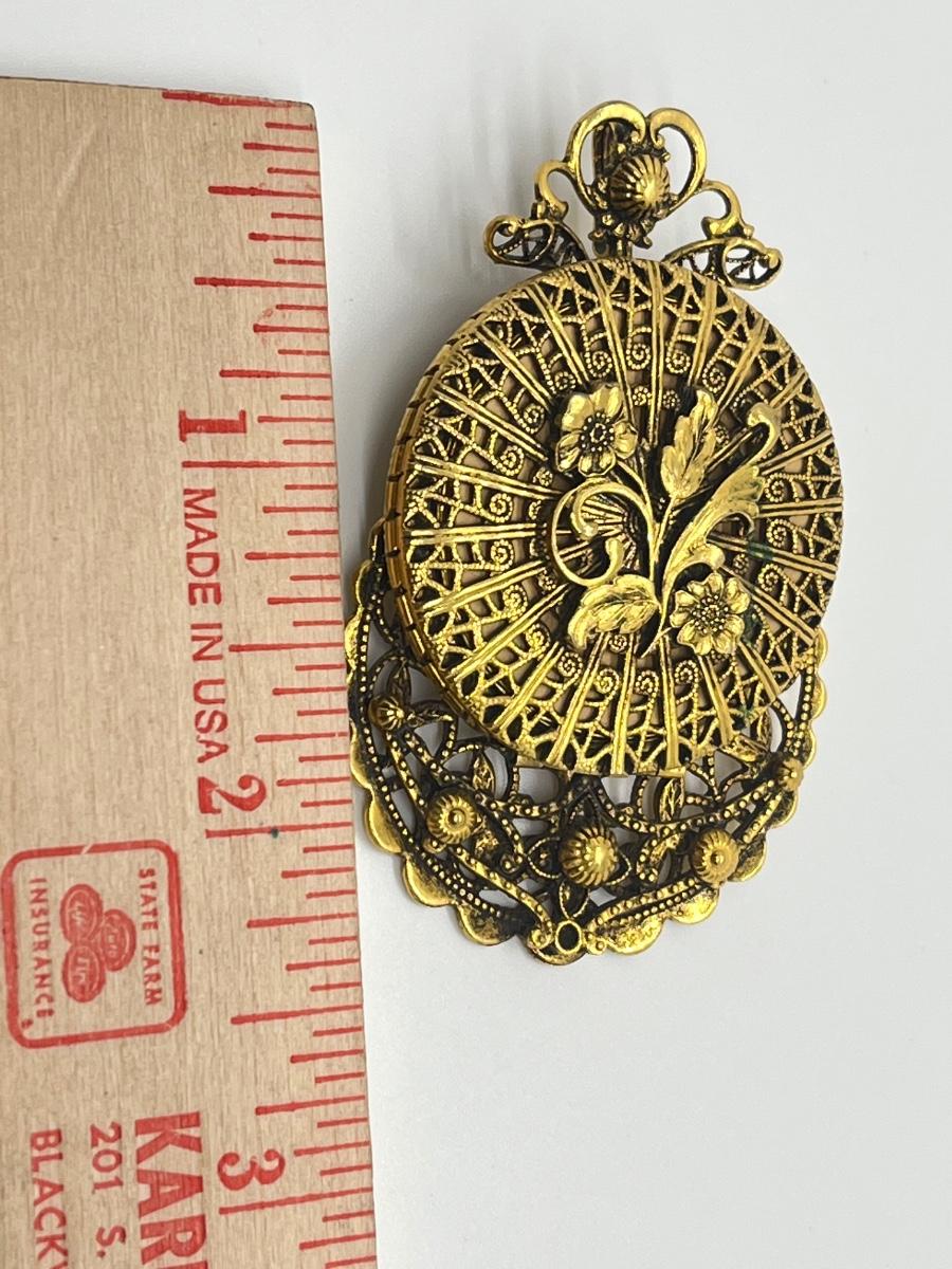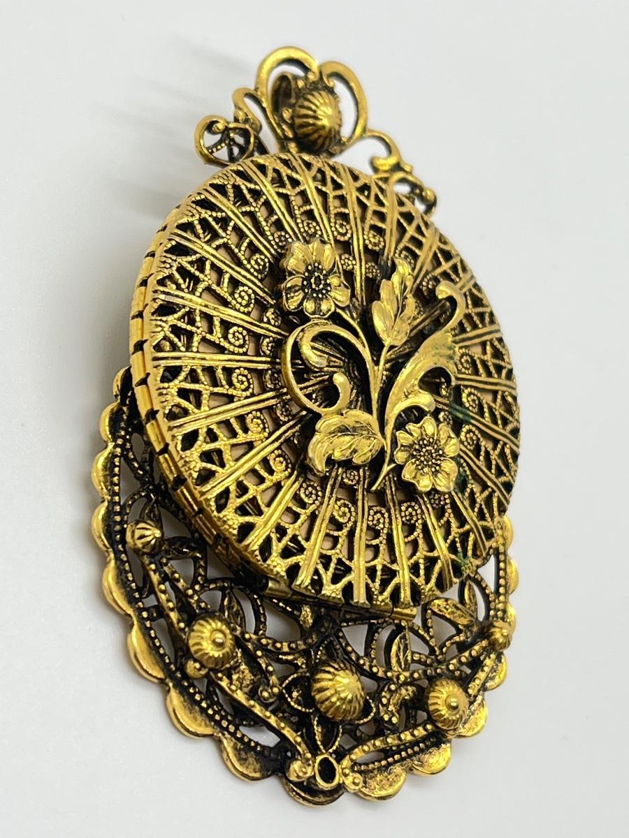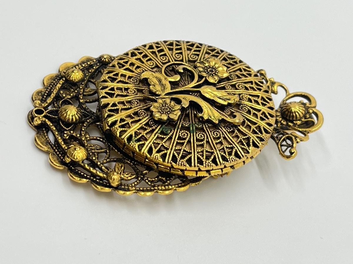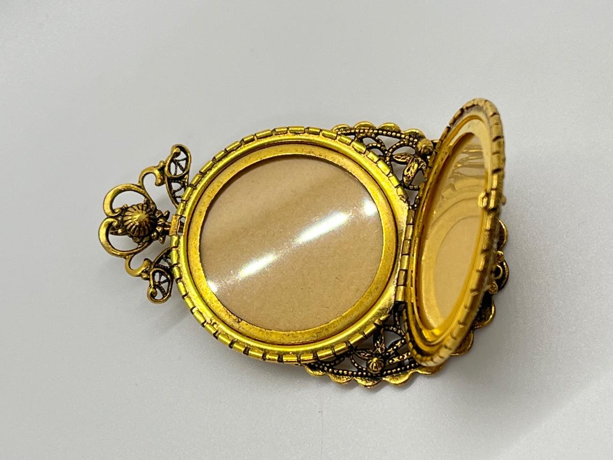 LOT 90: Two Brooches -  Large Locket Pendant/Pin &Avon Pink Ribbon Breast Cancer