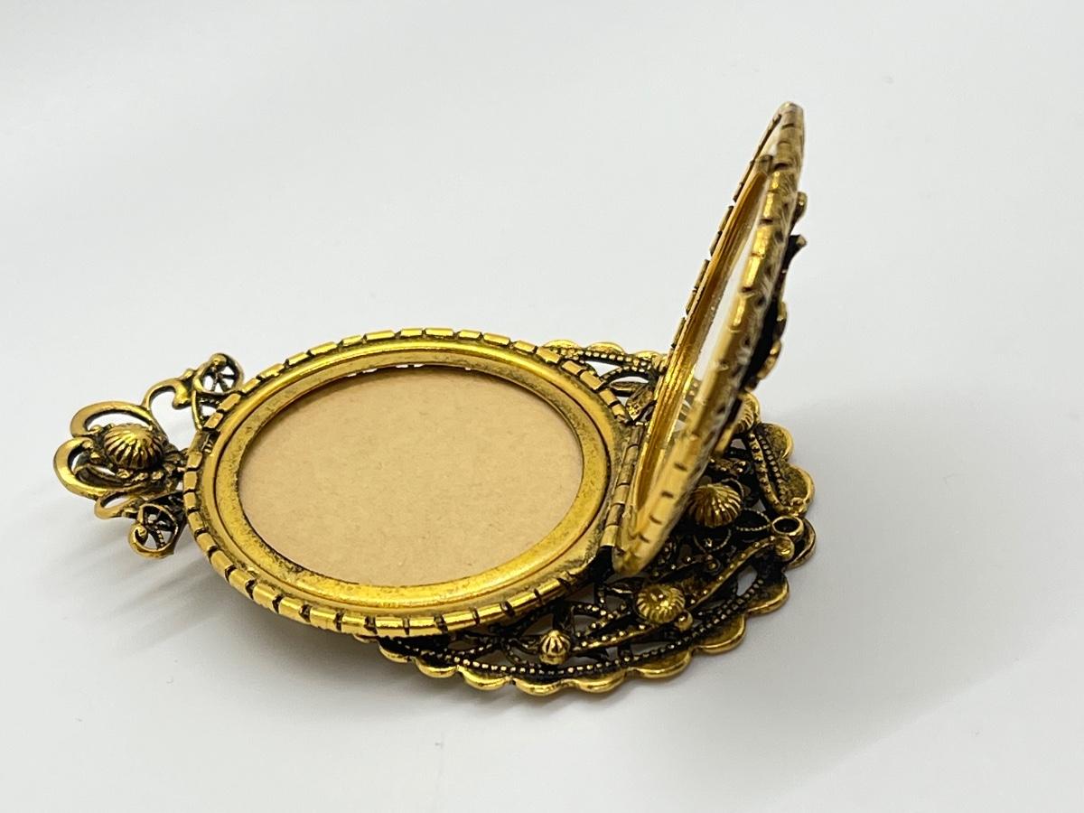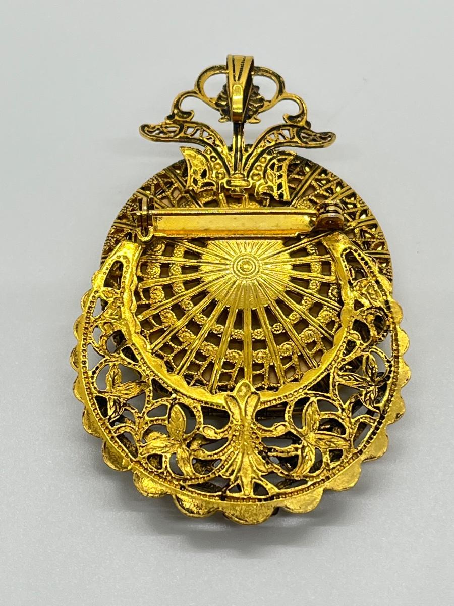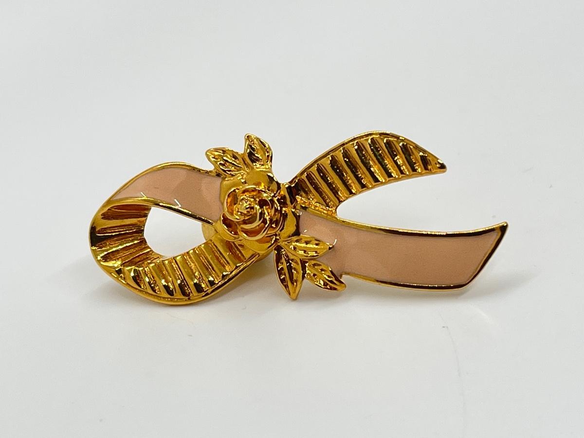 LOT 90: Two Brooches - Large Locket Pendant/Pin &Avon Pink Ribbon Breast Cancer