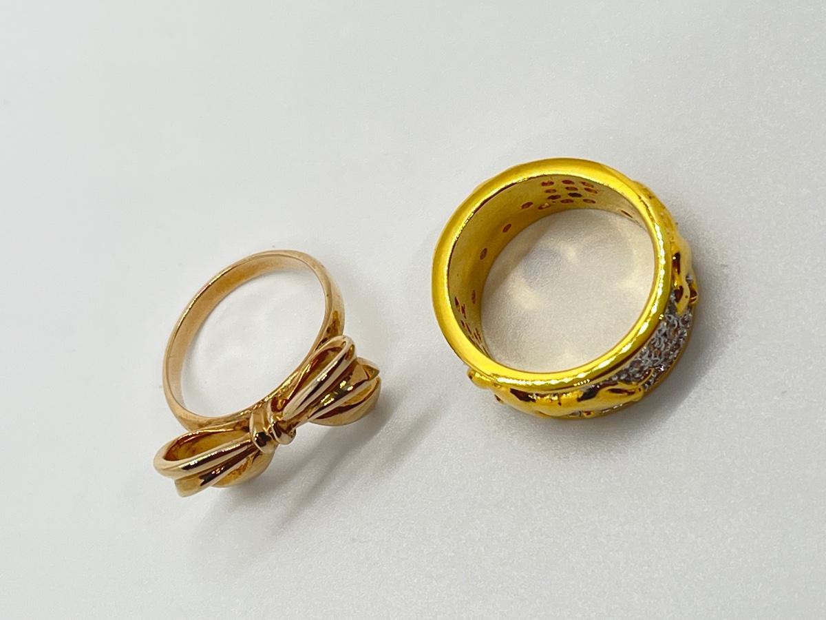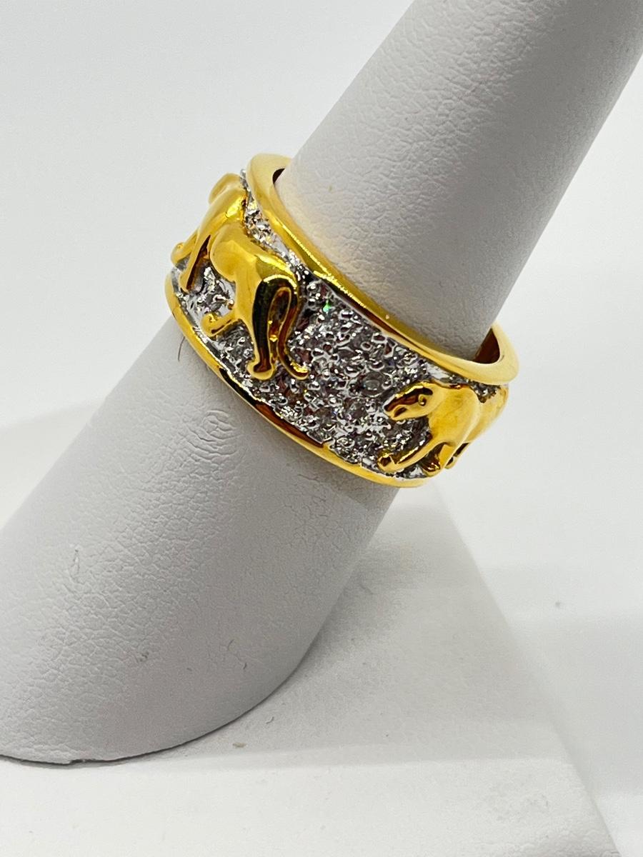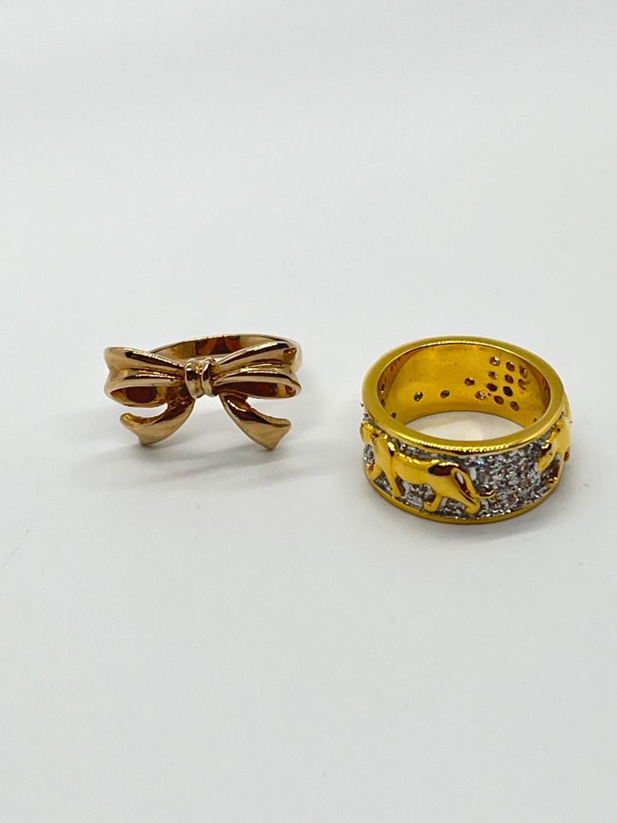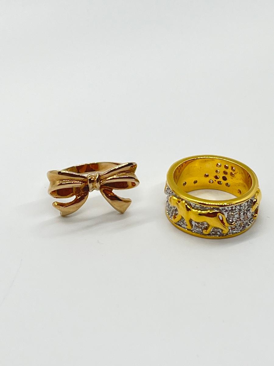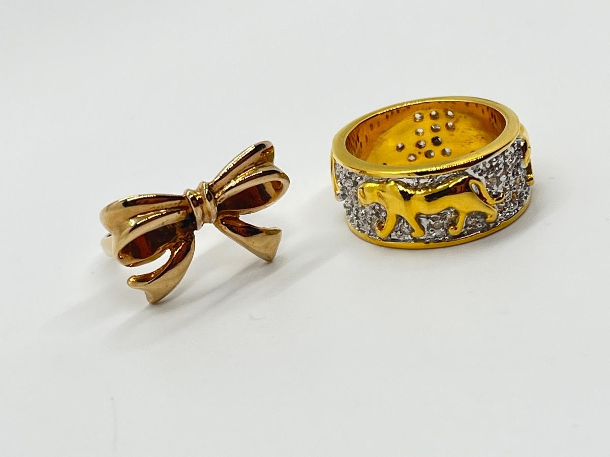 LOT 95: Gold Vermeil Sterling Rings -Bow Ring & Panther w/CZ, sz7