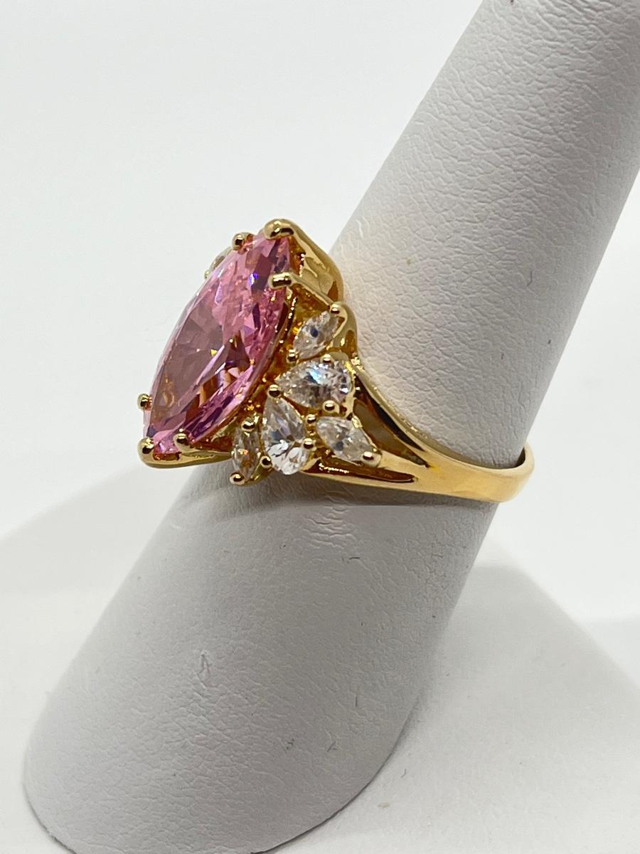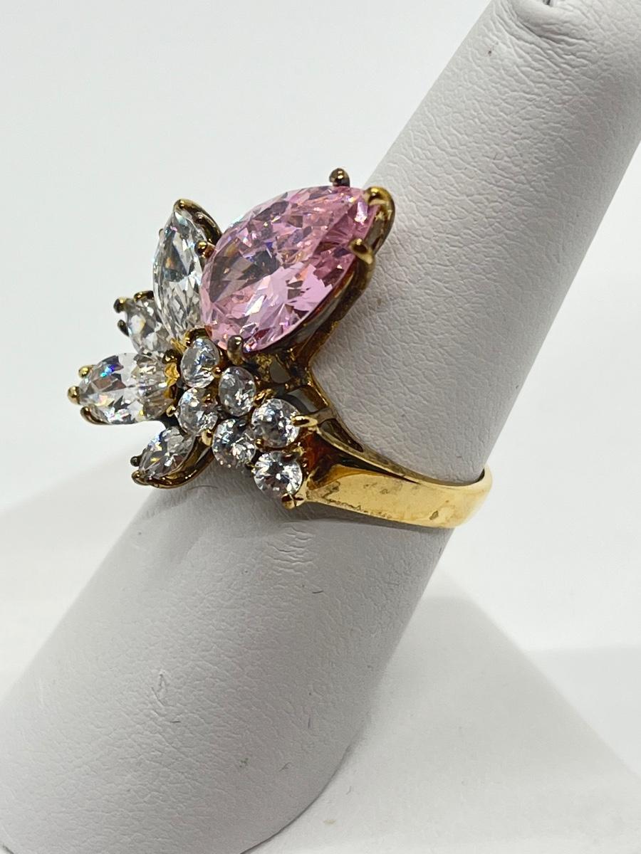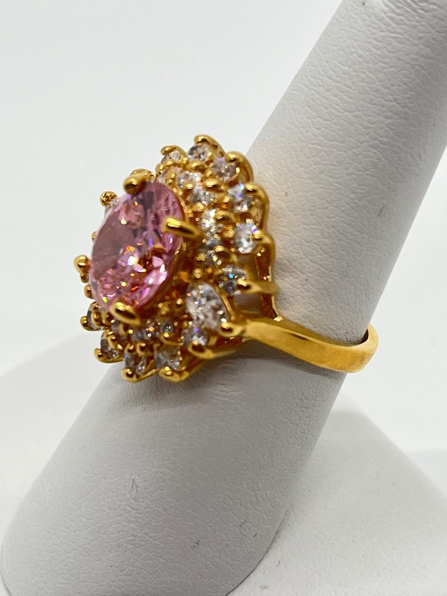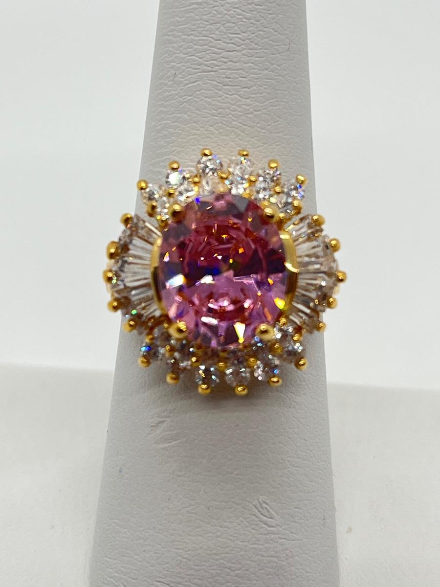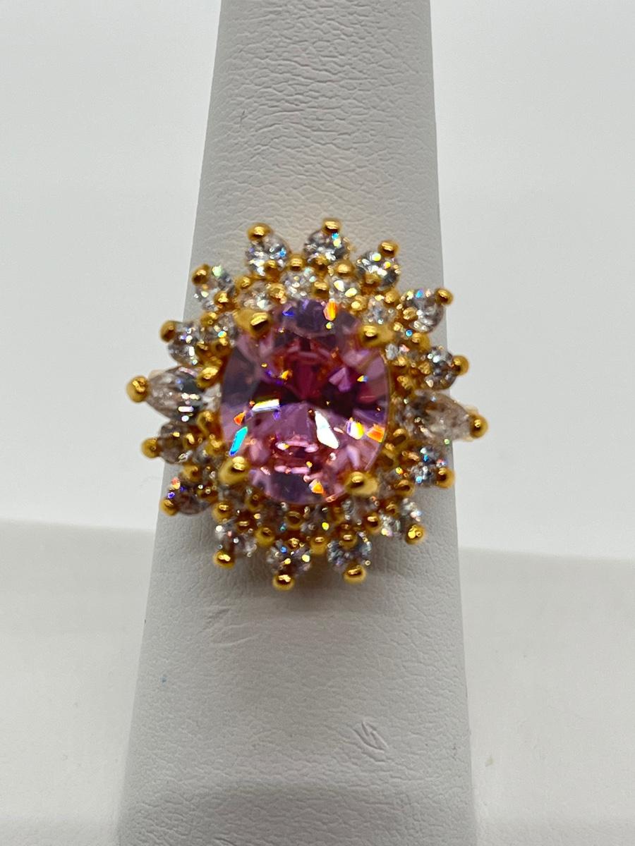 LOT 99: Gold Vermeil Sterling Silver 925 Pink Gemstones & CZ's - sz7