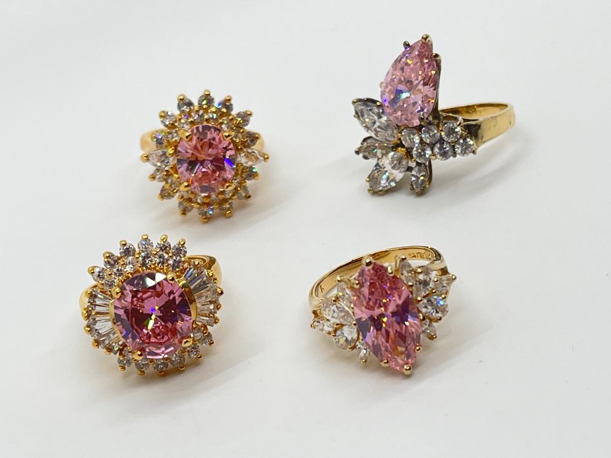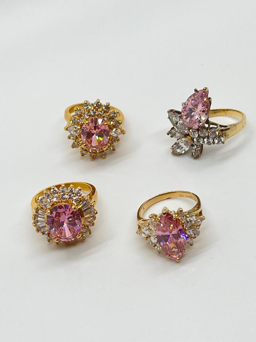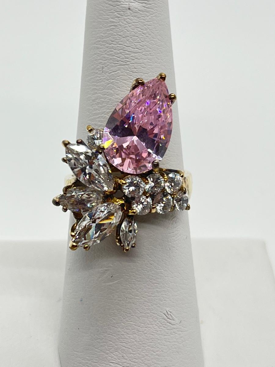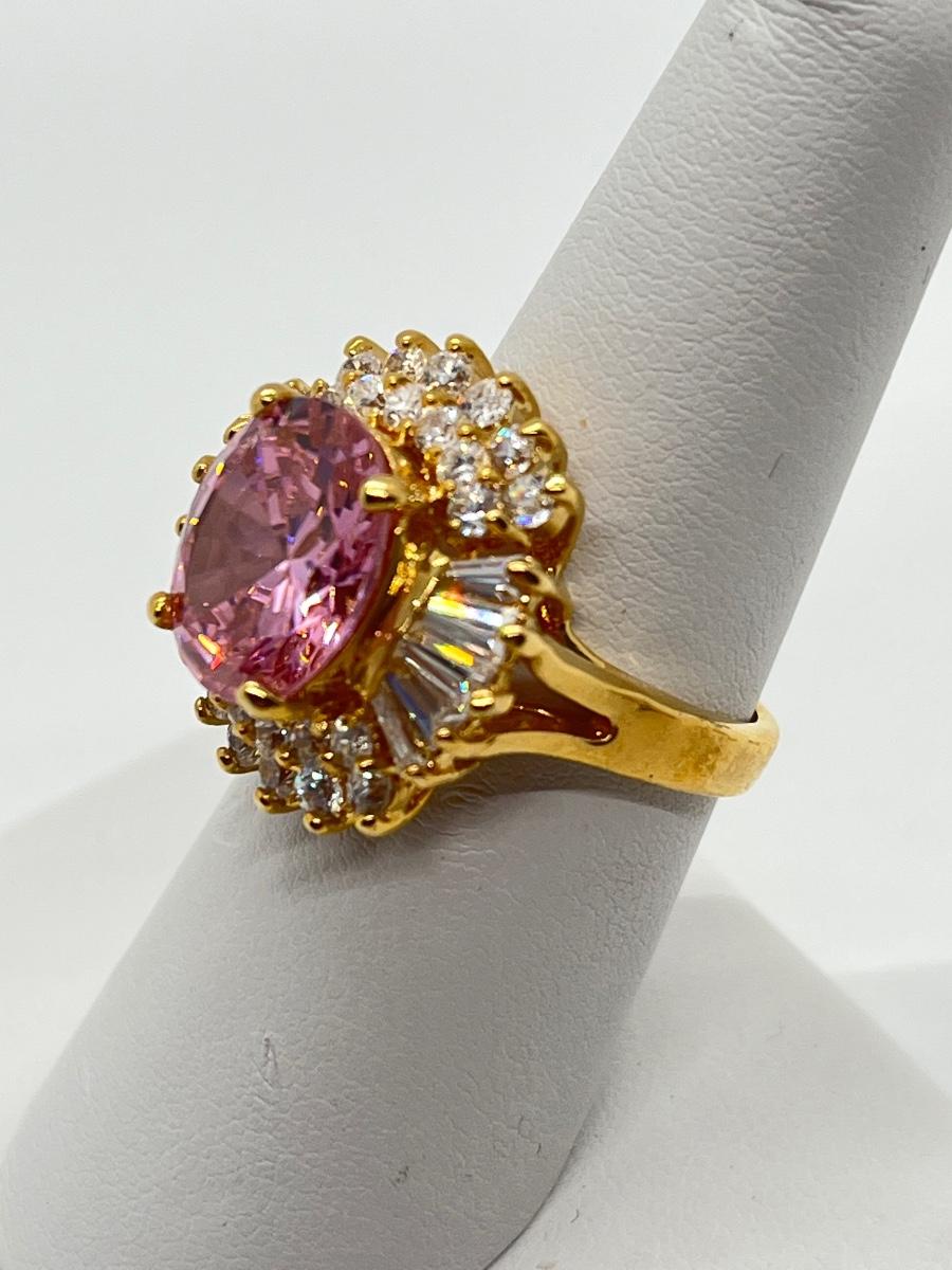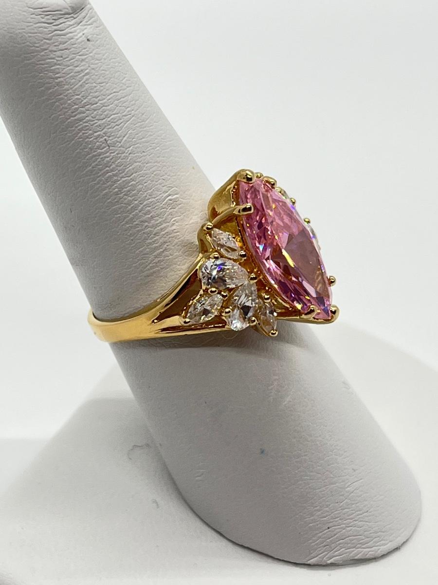 LOT 99: Gold Vermeil Sterling Silver 925 Pink Gemstones & CZ's - sz7