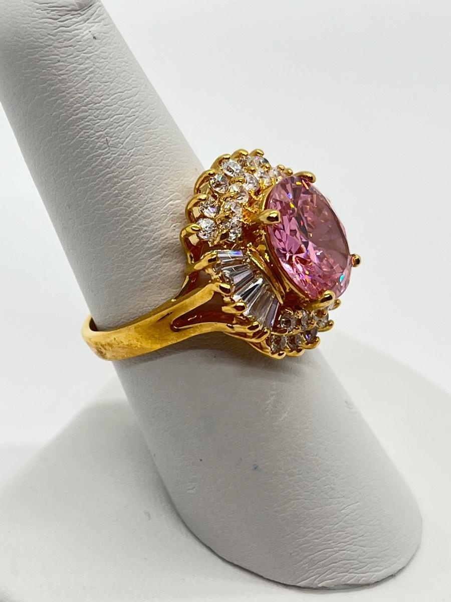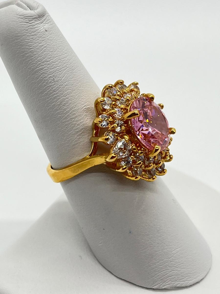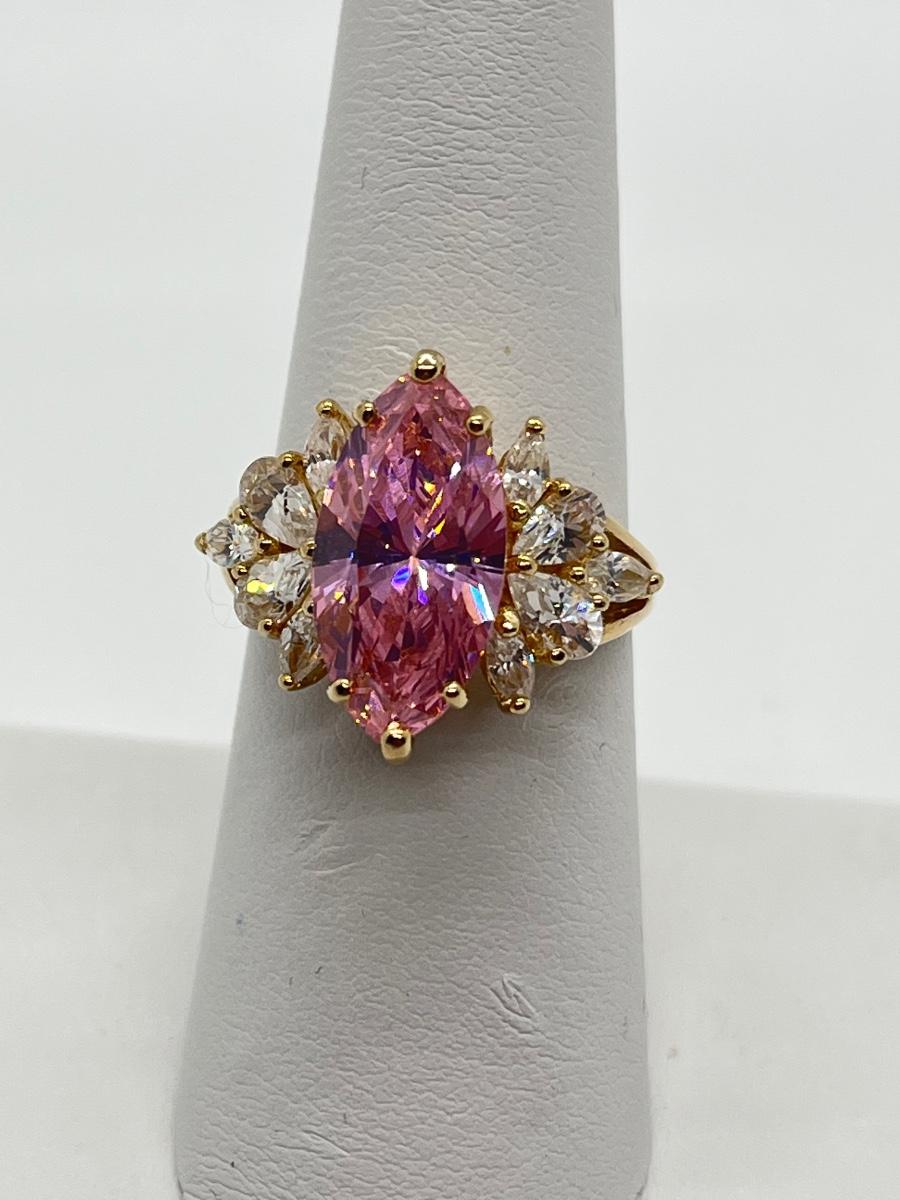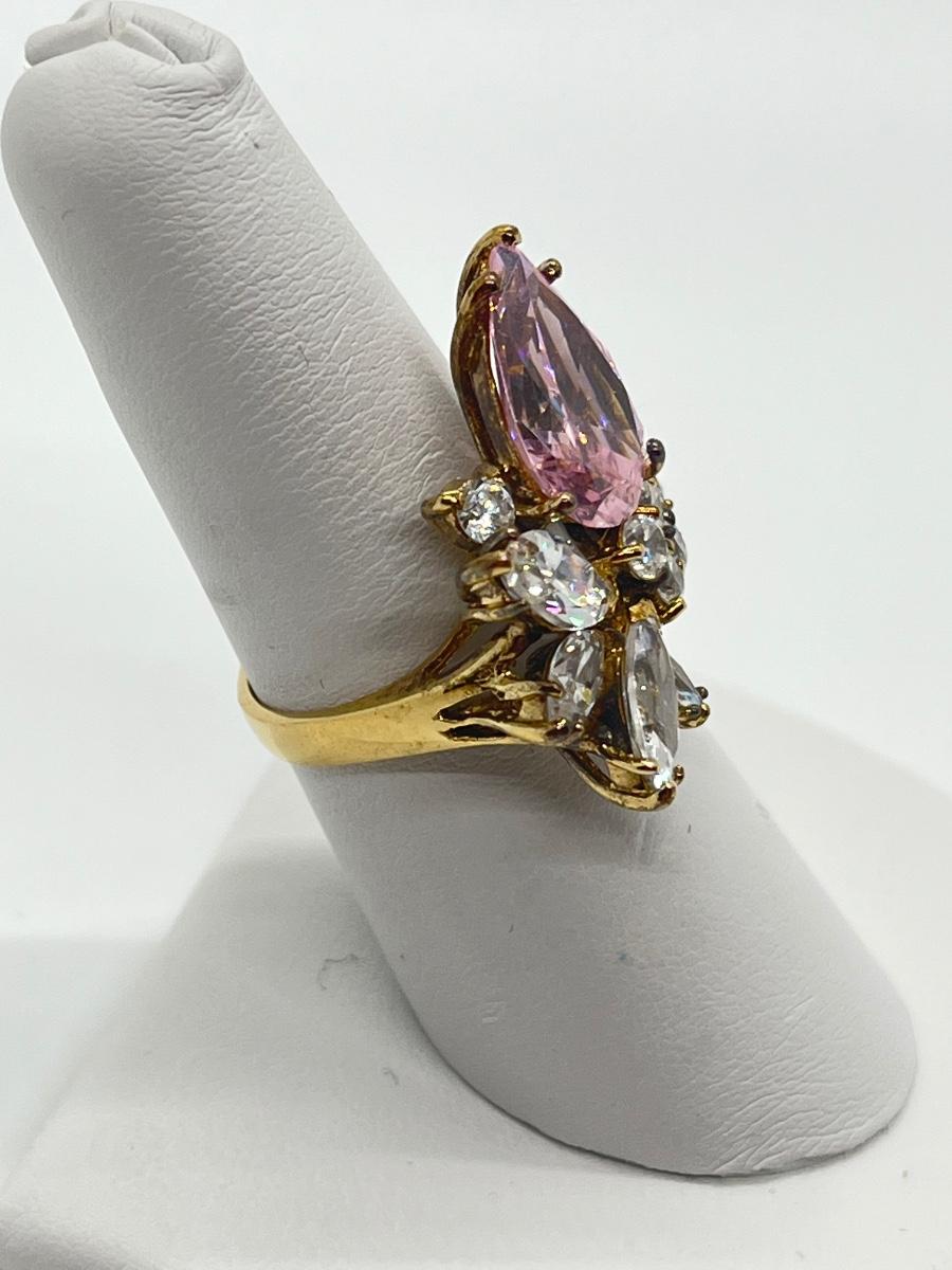 LOT 99:  Gold Vermeil Sterling Silver 925 Pink Gemstones & CZ's - sz7