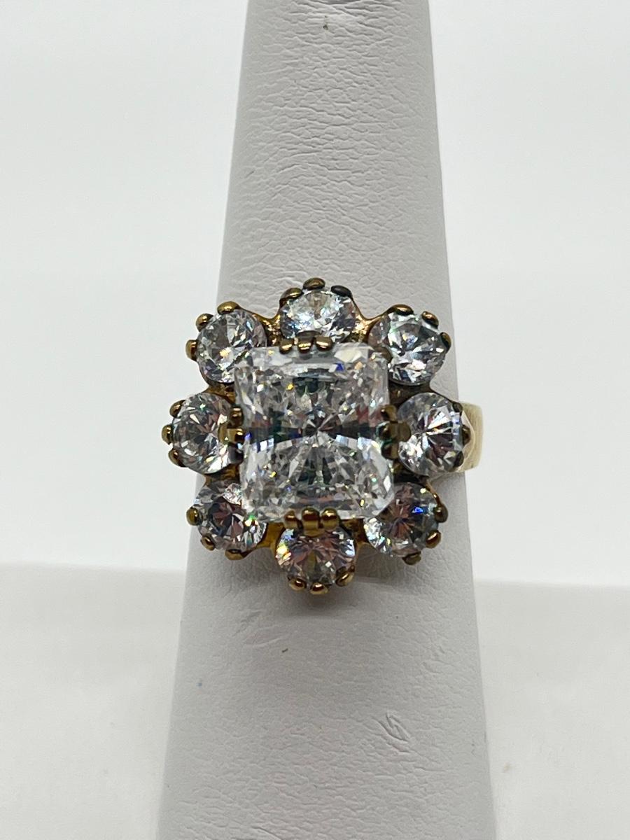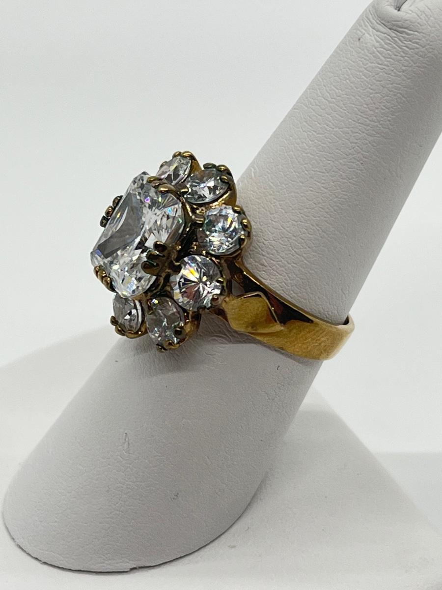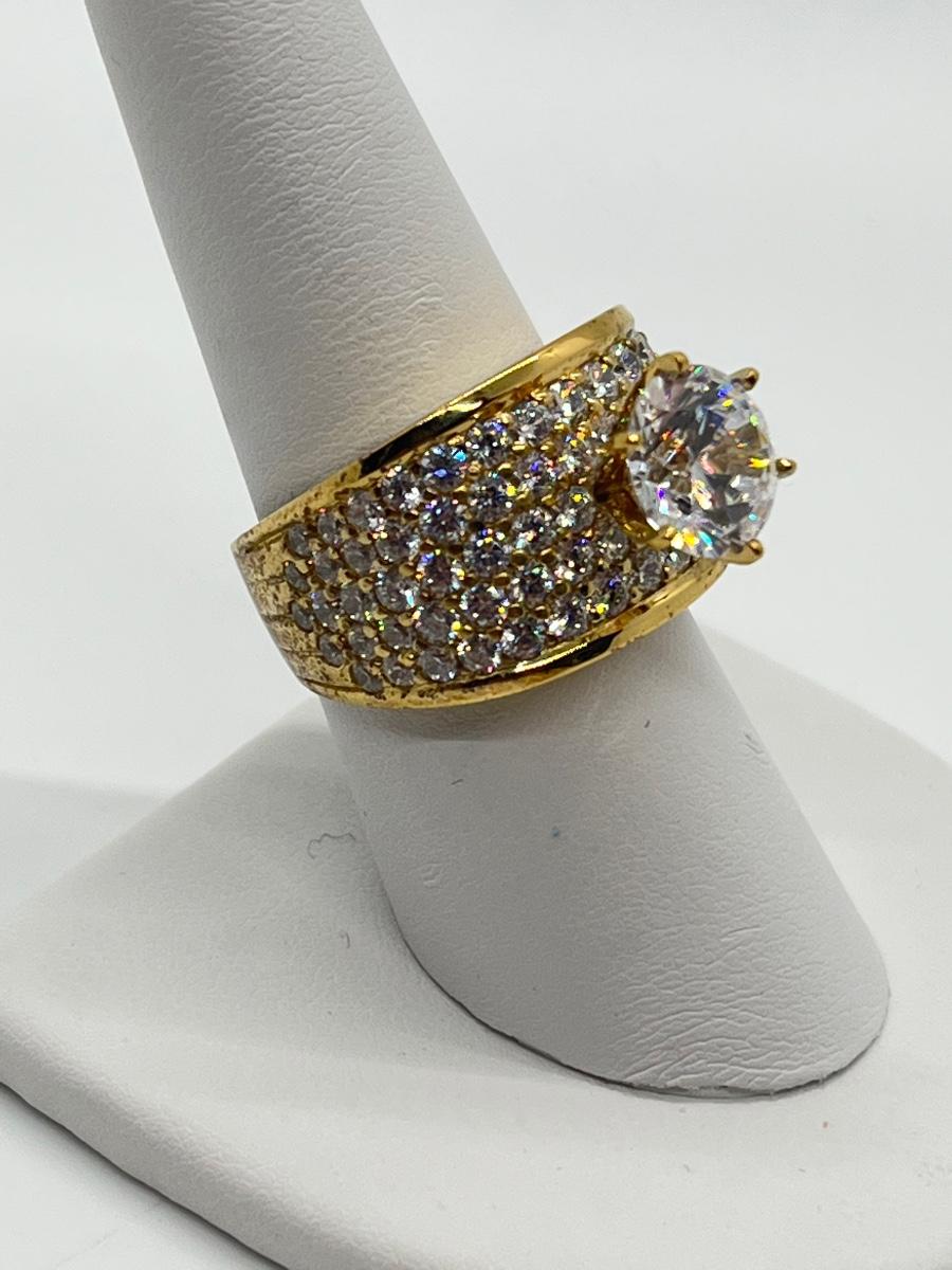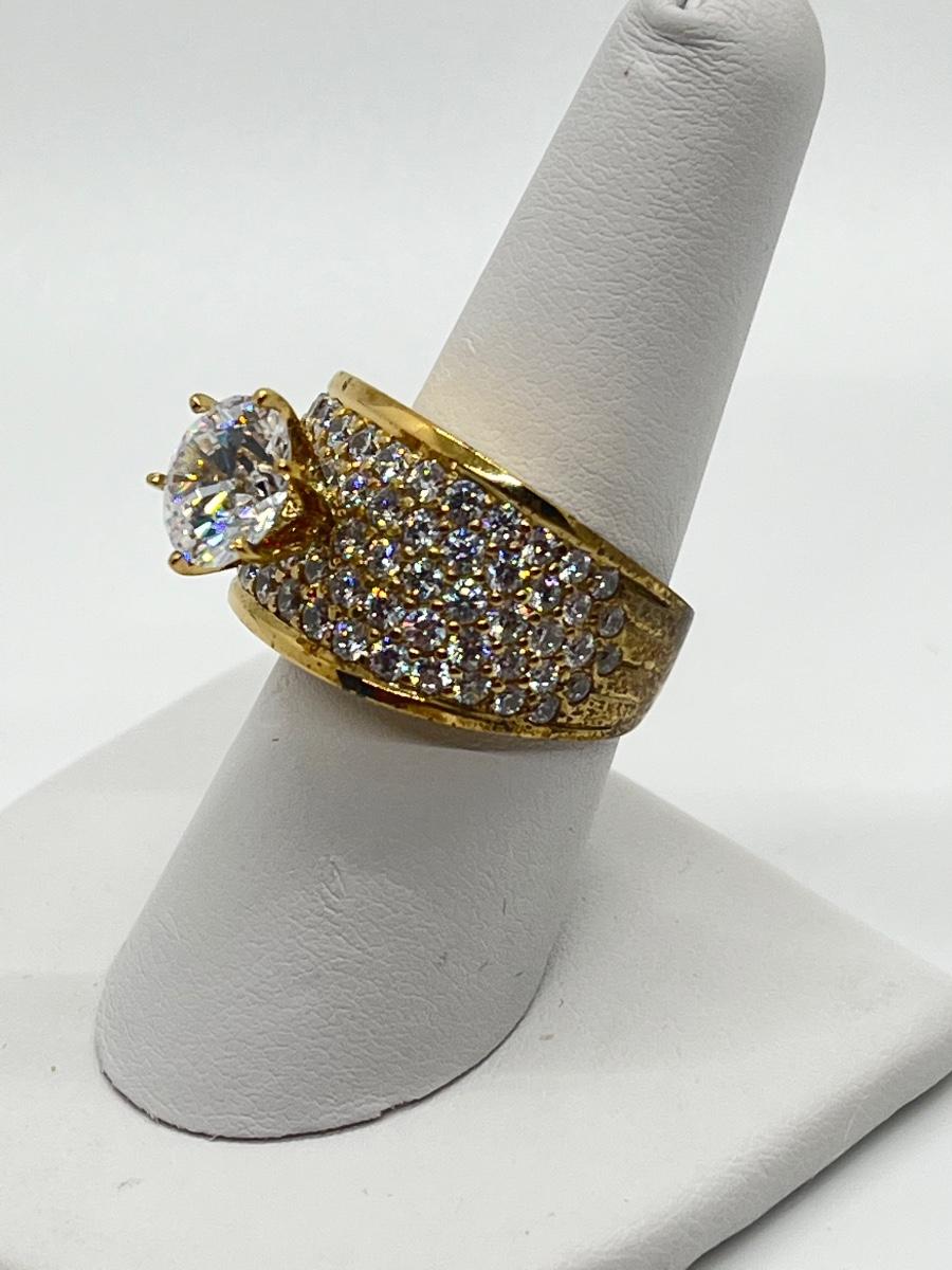LOT 103: Gold Vermeil Sterling Cubic Zirconia Rings - Size 7