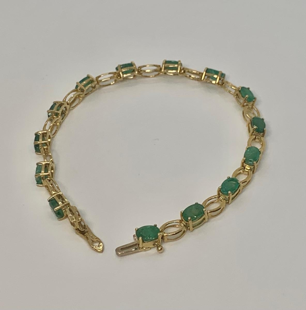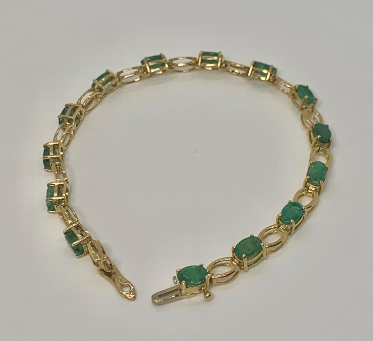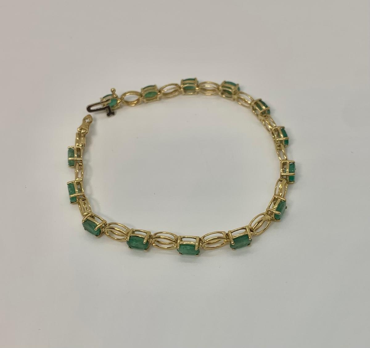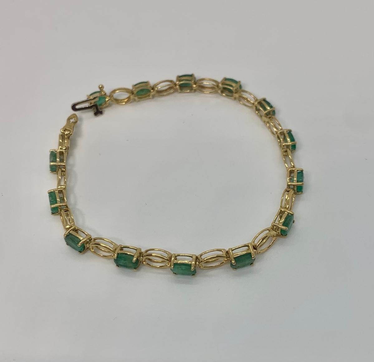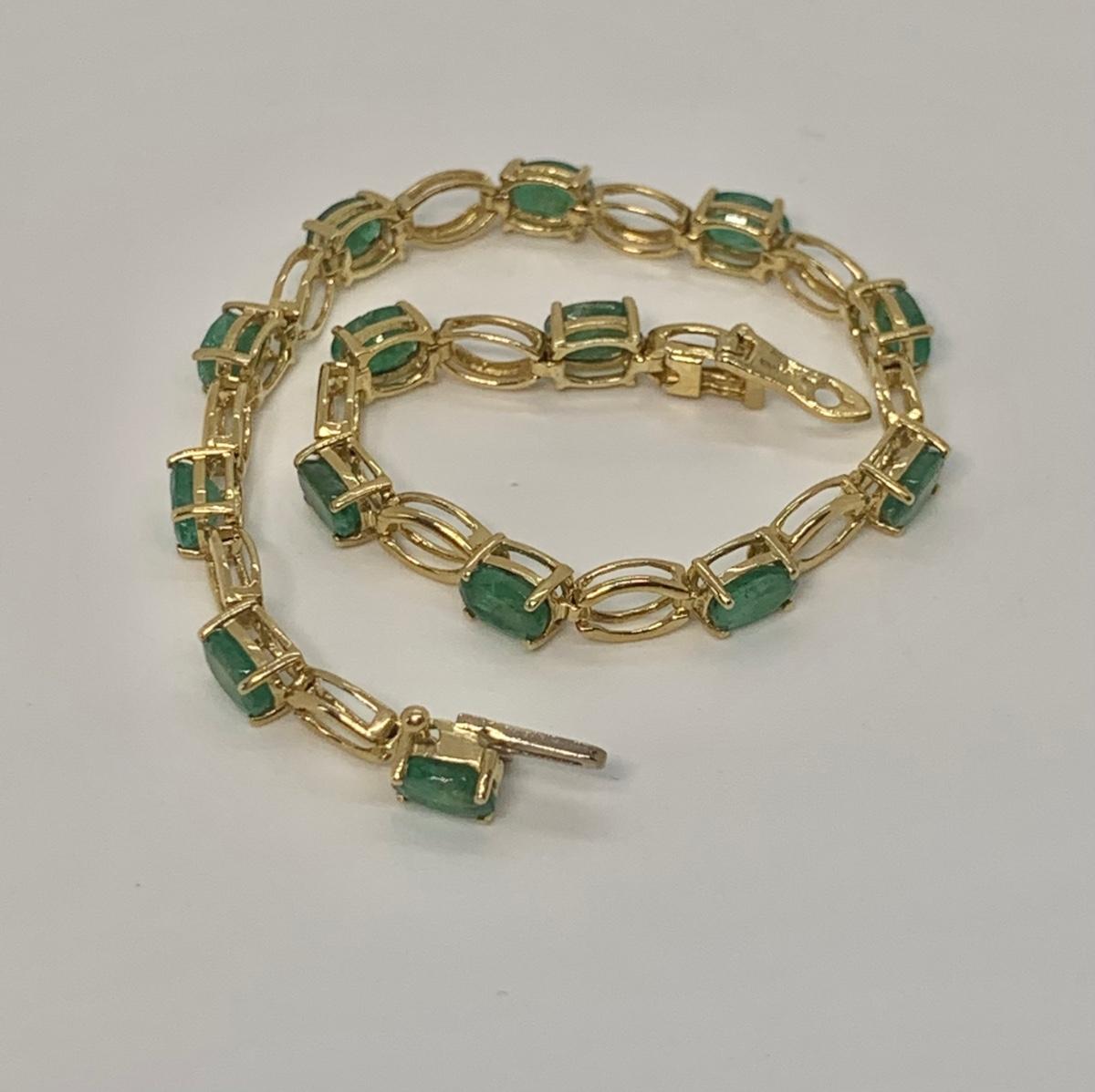 14 oval cut natural Colombian emeralds, they are separated by gold stations. pictures show condition, measurements if taken, and what is included in the lot. All items unless noted, are pre-owned and may or may not have been worn. Unless noted in the pictures or description, there are no boxes for the jewelry. Shipping will be offered at the actual shipping cost to your zip-code plus $4.00 per lot for packing and handling. We can do combined shipping. Items over $50.00 will have an added insurance charge, and will be signature required for delivery at the buyers expense. For a shipping quote, please email with zip code and items (lot) numbers. Treasure Me Estate Sales offers shipping as a courtesy and in doing so, reserves the right to choose the shipping supplies including whether not to send in an envelope or box to protect the integrity of the item. When the auction closes, and all items have sold, you will receive an invoice with all of your winning items. If you need shipping, and there is not a shipping charge on the invoice, please email for a quote and new invoice will be sent with shipping charges and pay at that time. Paying through PayPal helps so we can generate a label with tracking, but is not required. Thank you and please email with any questions.